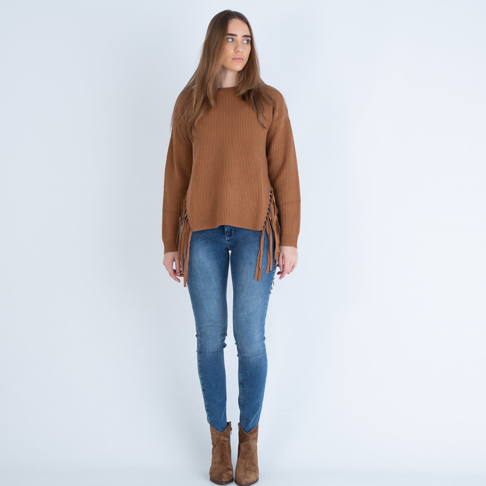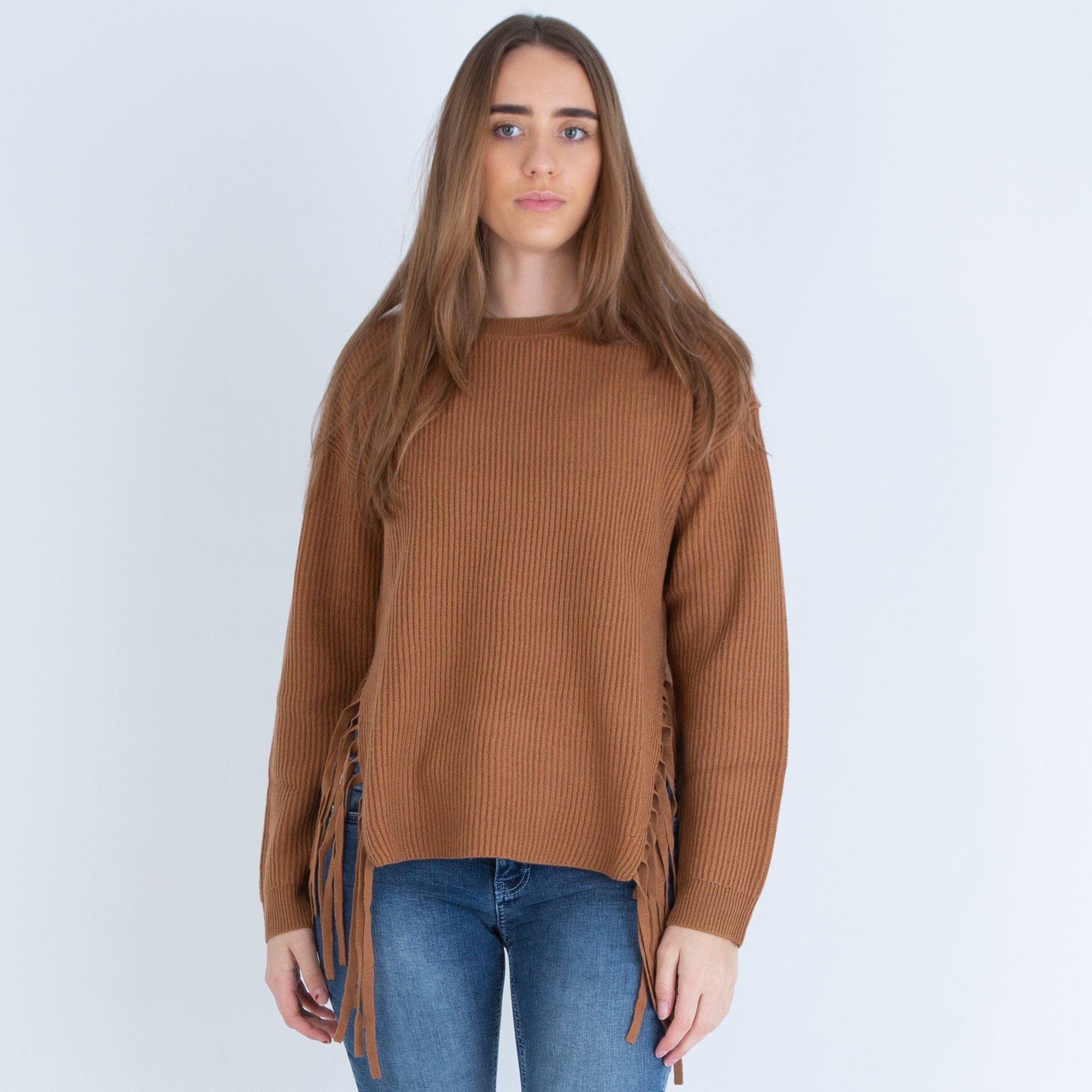 Luisa Cerano Ribbed Jumper With Fringe Detailing Cinnamon