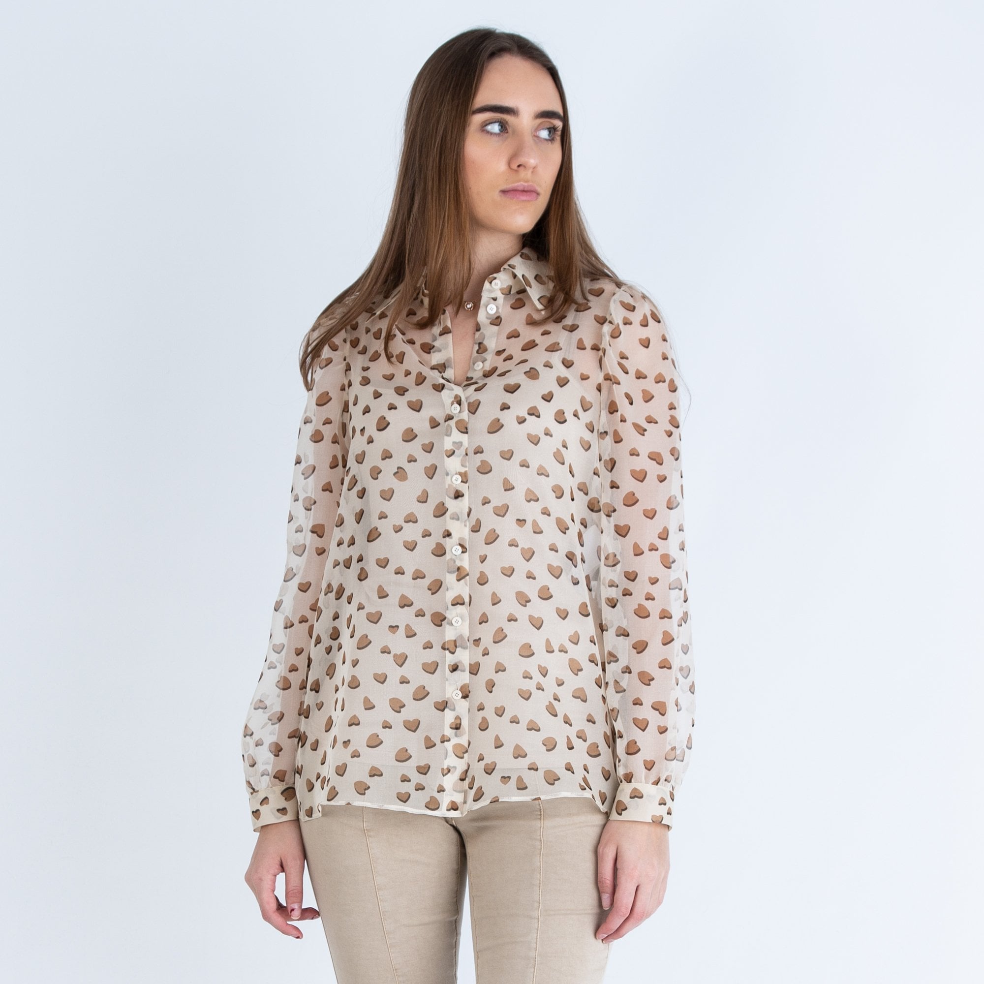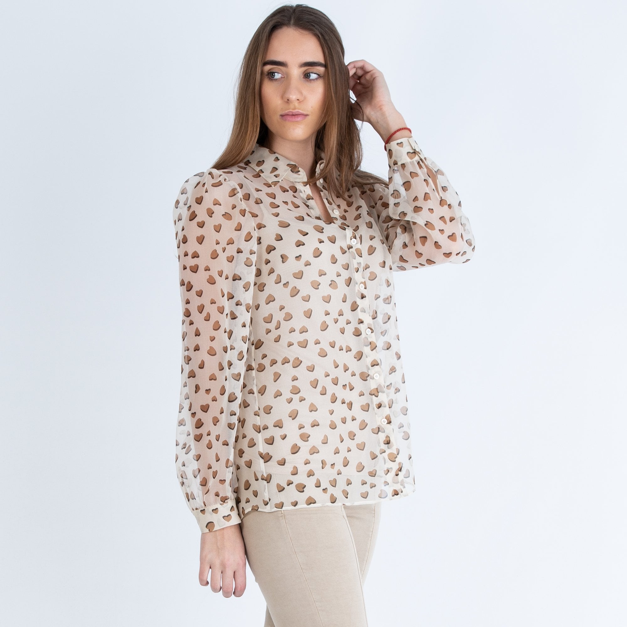 Luisa Cerano Heart Print Organza Blouse Cream/camel