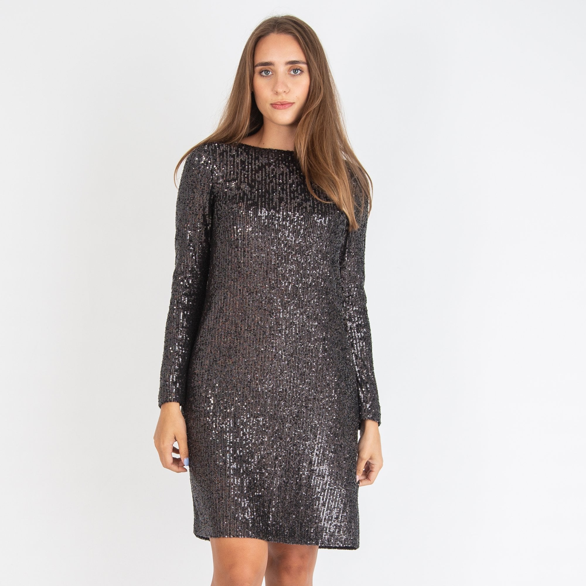 Luisa Cerano Sequin Round Neck Shift Dress Grey
