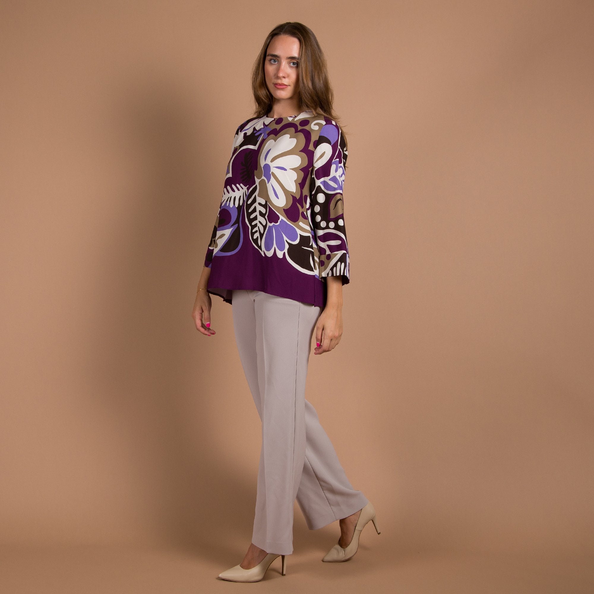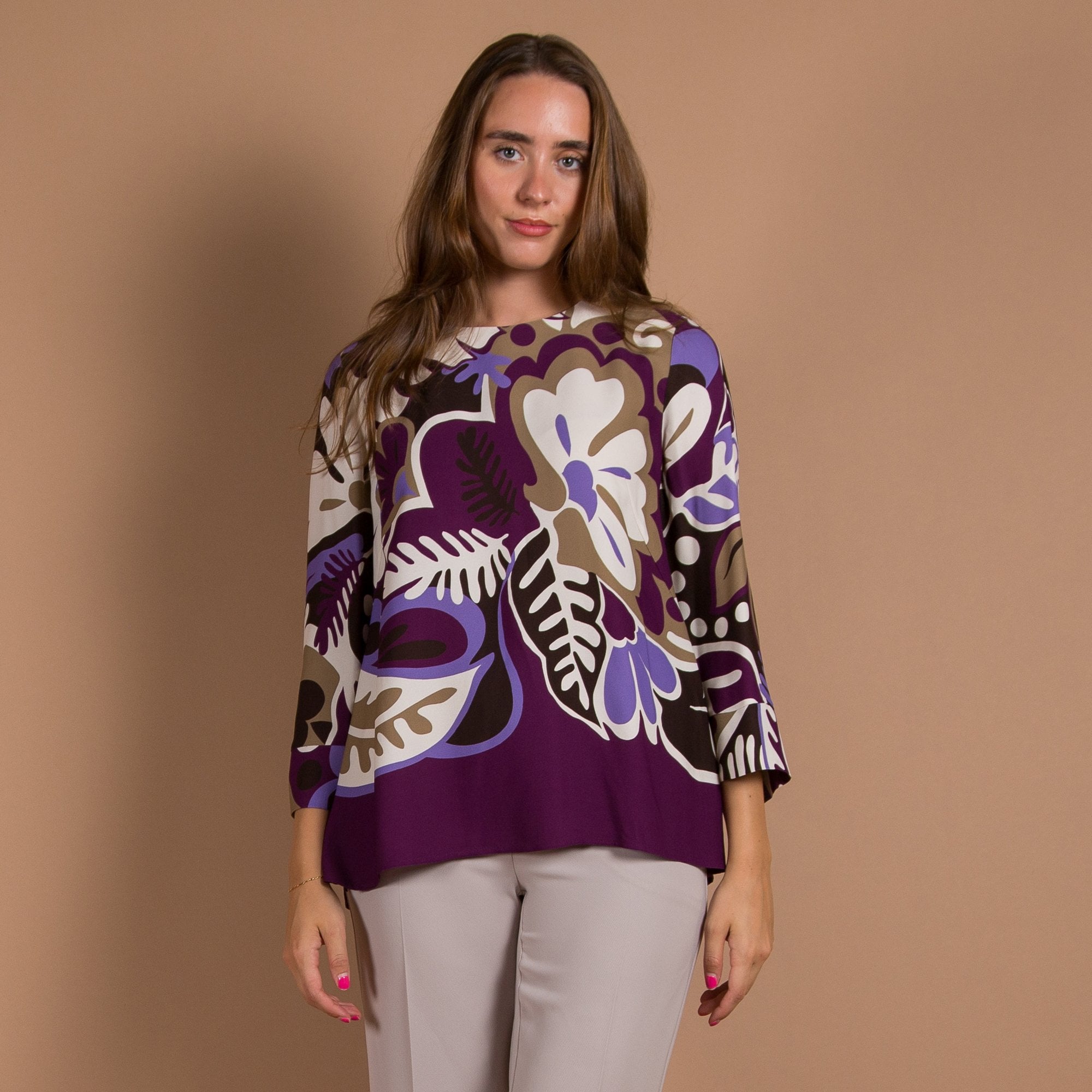 Luisa Cerano Blown Up Floral Print Loose Blouse Purple/ivory