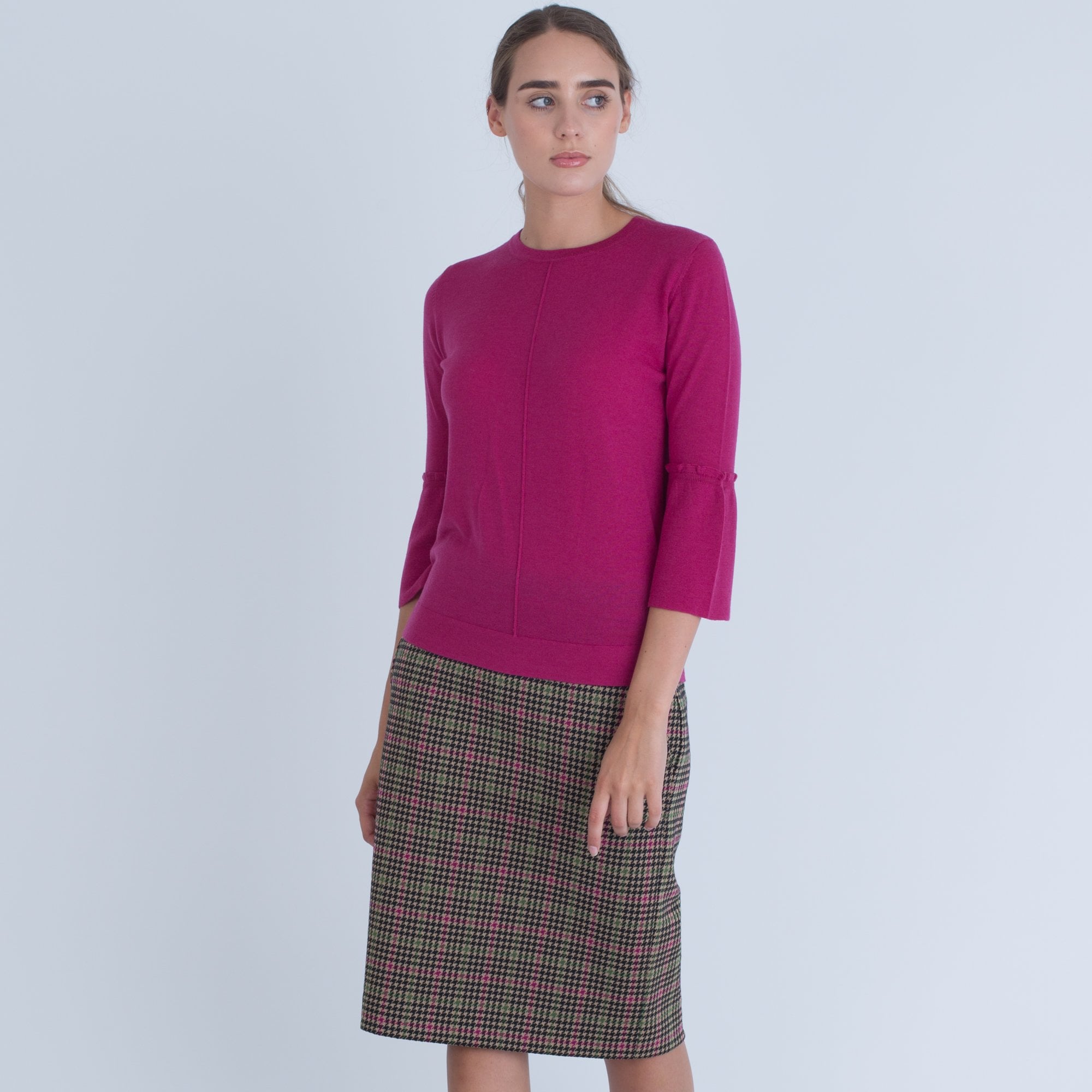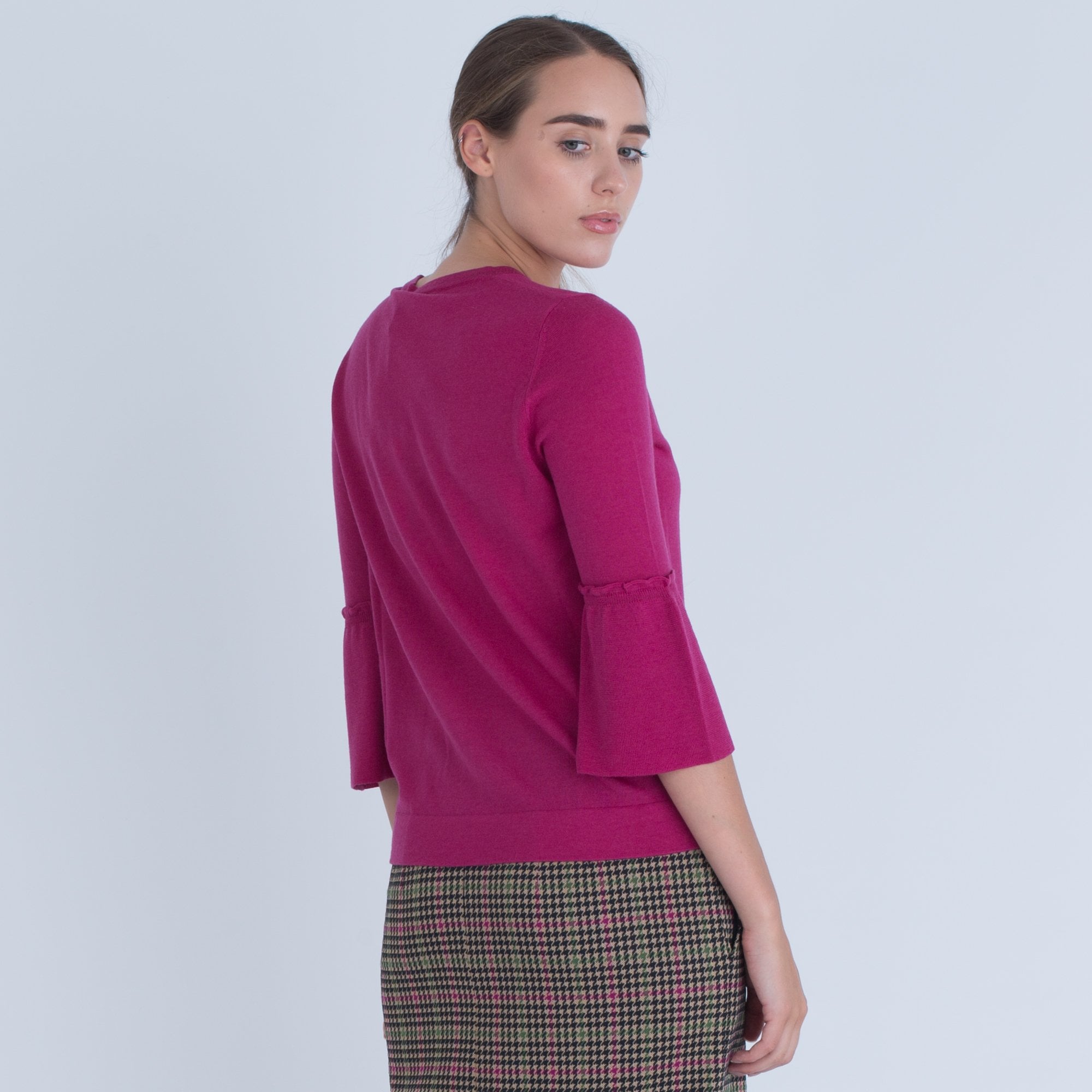 Luisa Cerano Round Neck Jumper With Fluted Sleeve Raspberry