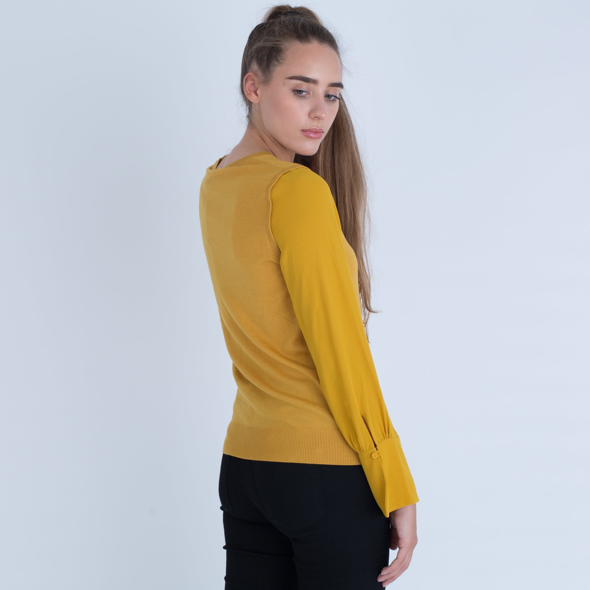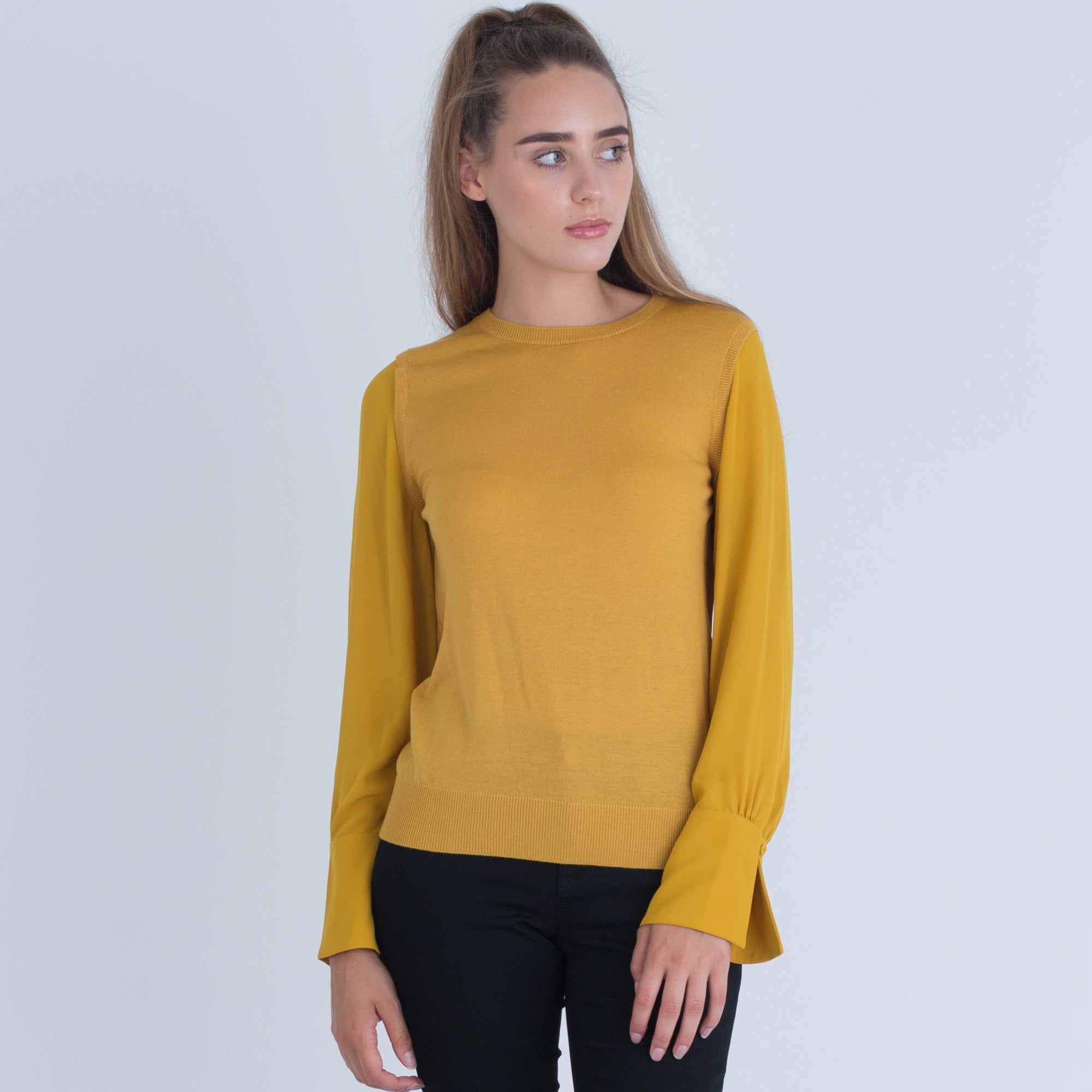 Luisa Cerano Round Neck Knitted Jumper With Acetate Sleeve Mustard