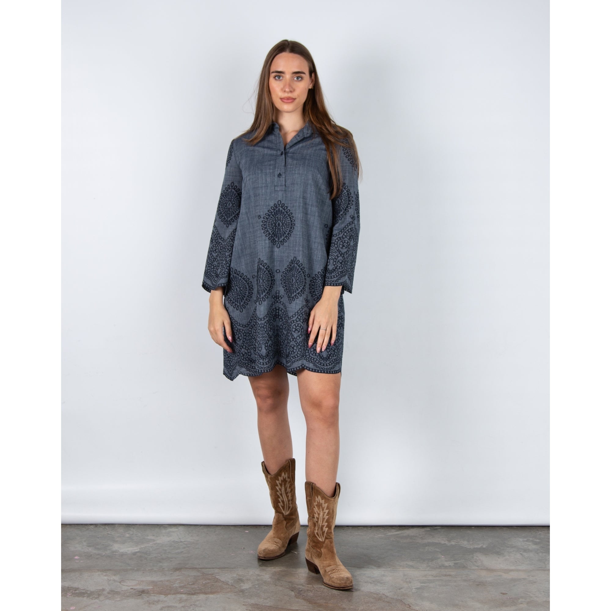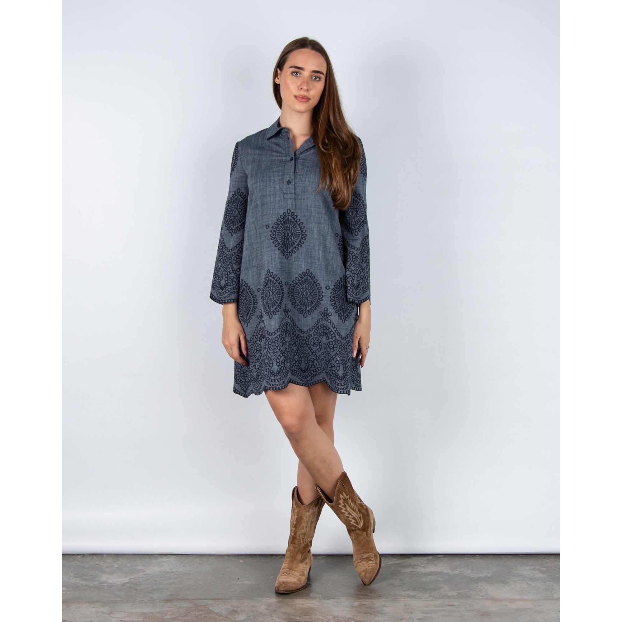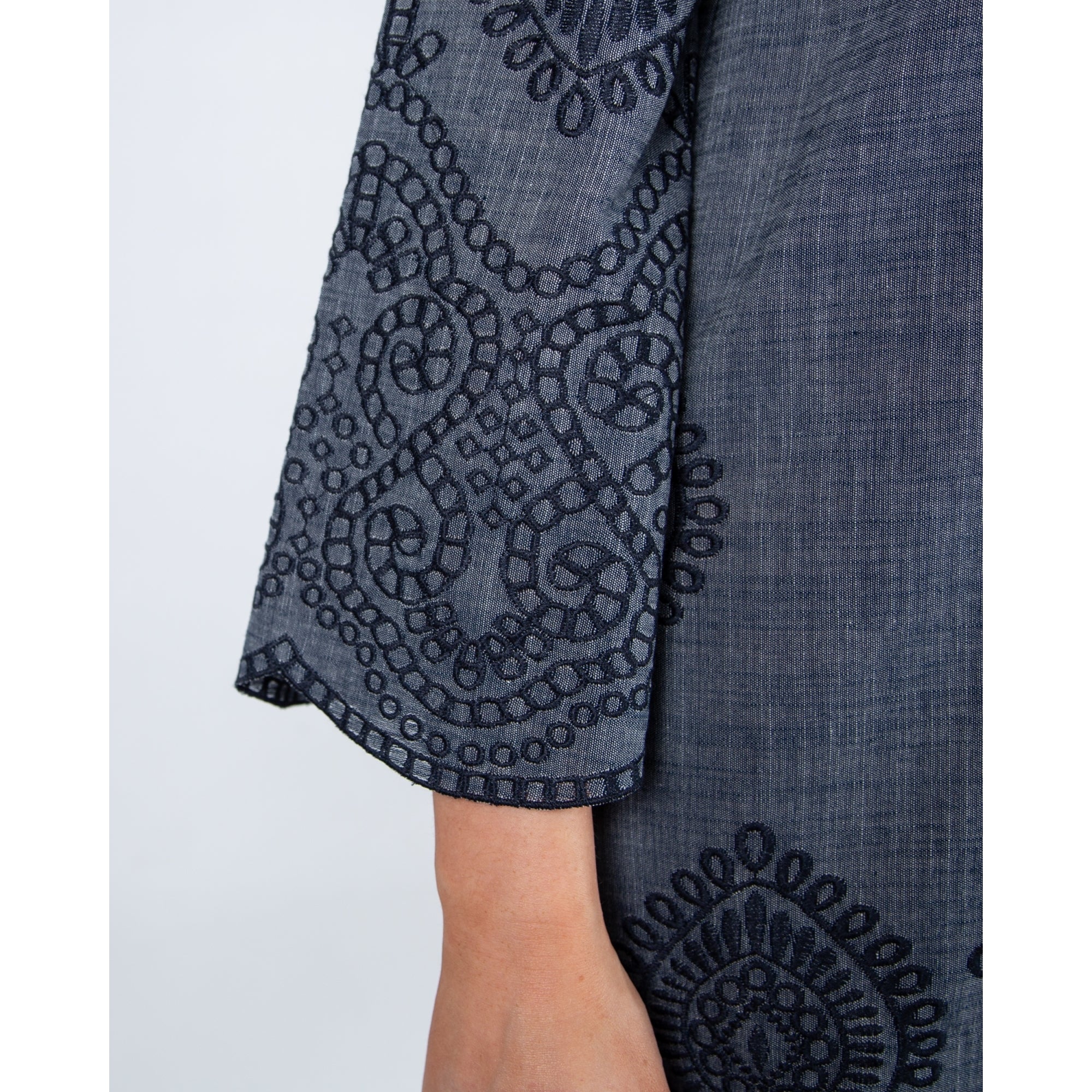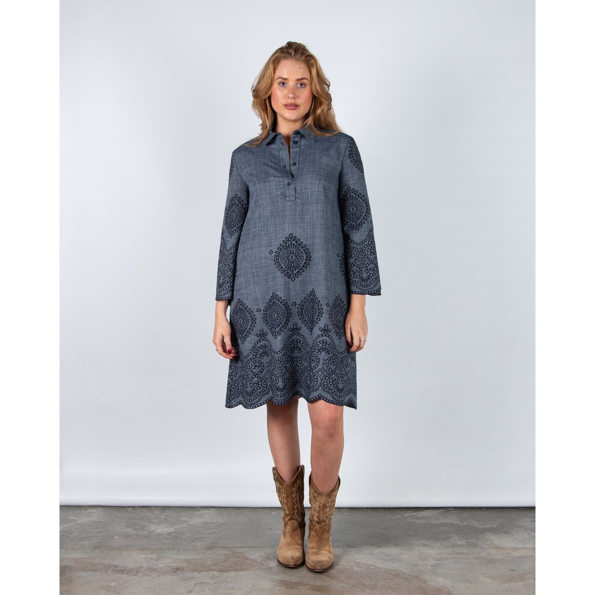 Luisa Cerano Embroidered Shirt Dress (Longer) 94cm Dark Denim