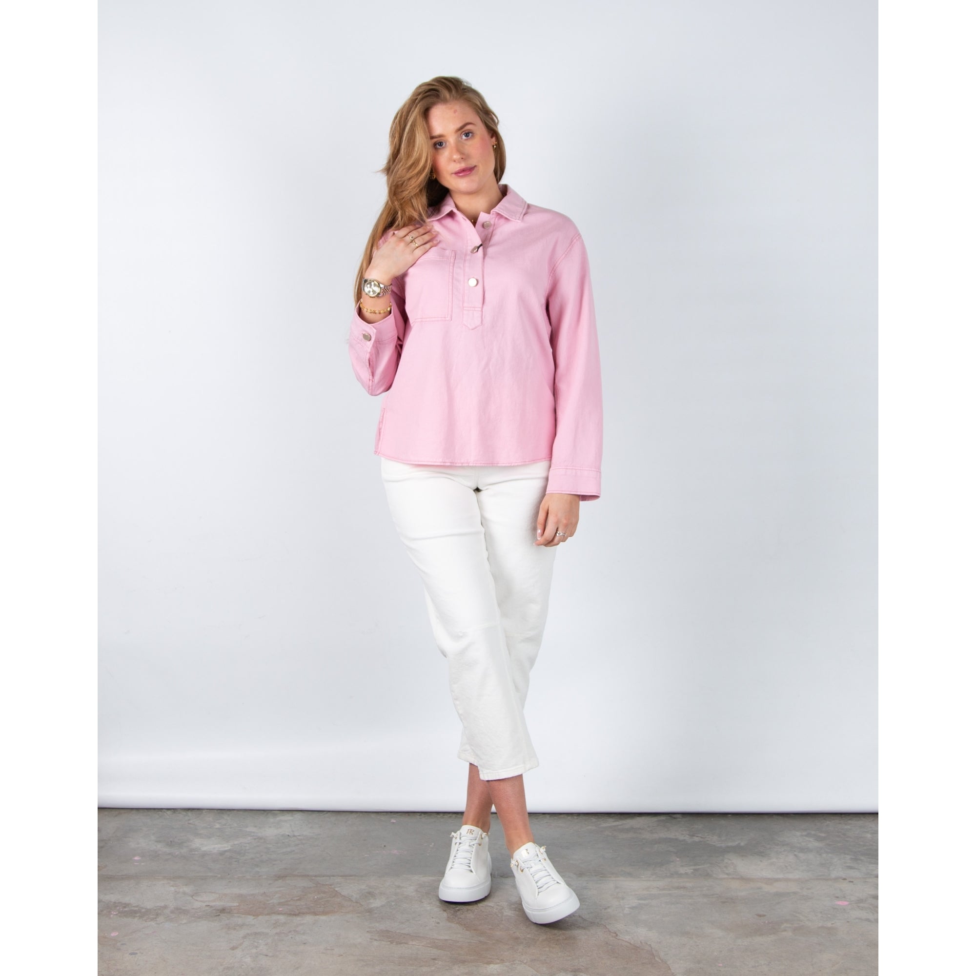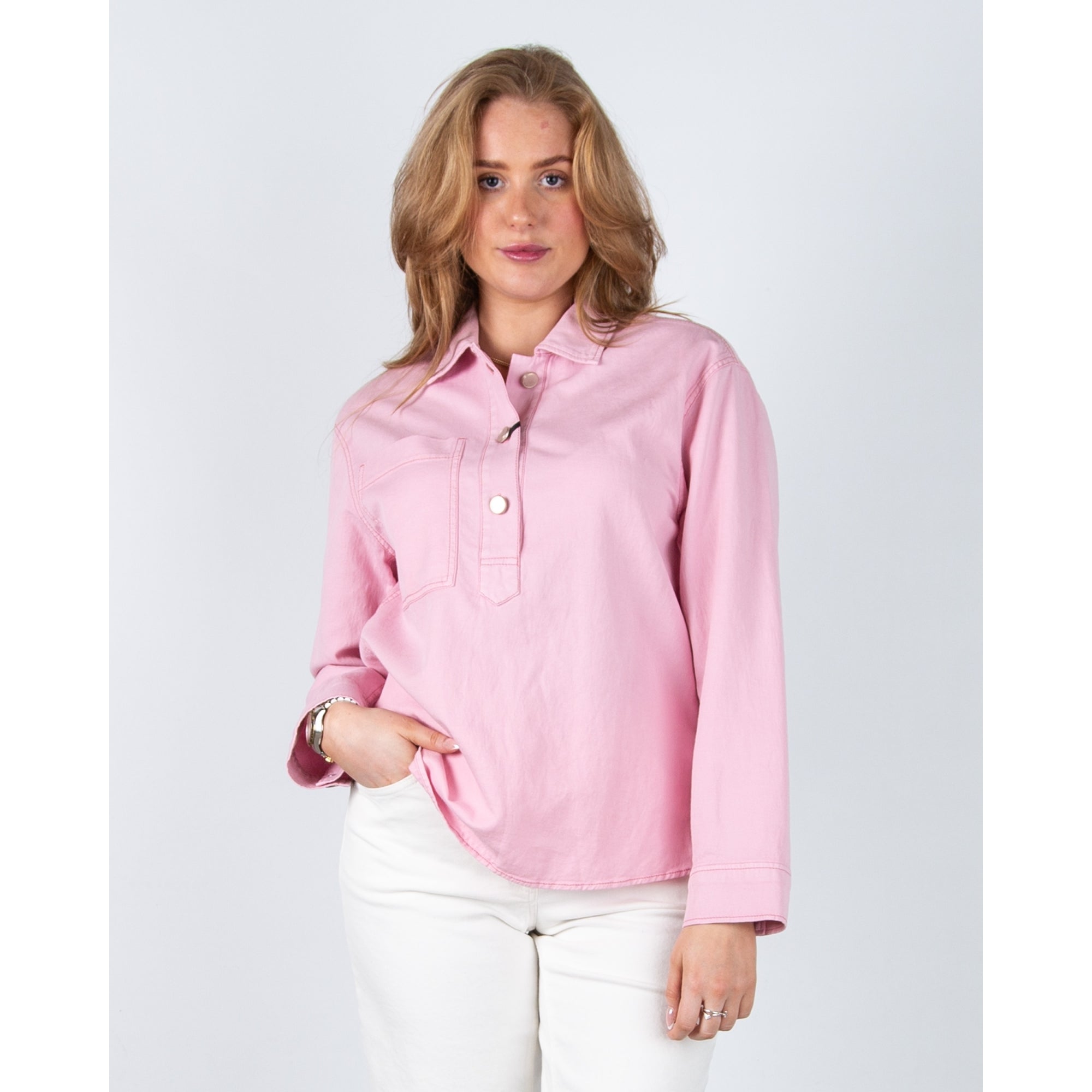 Luisa Cerano Oversized Denim Pocket Front Blouse With Shirt Collar Baby Pink