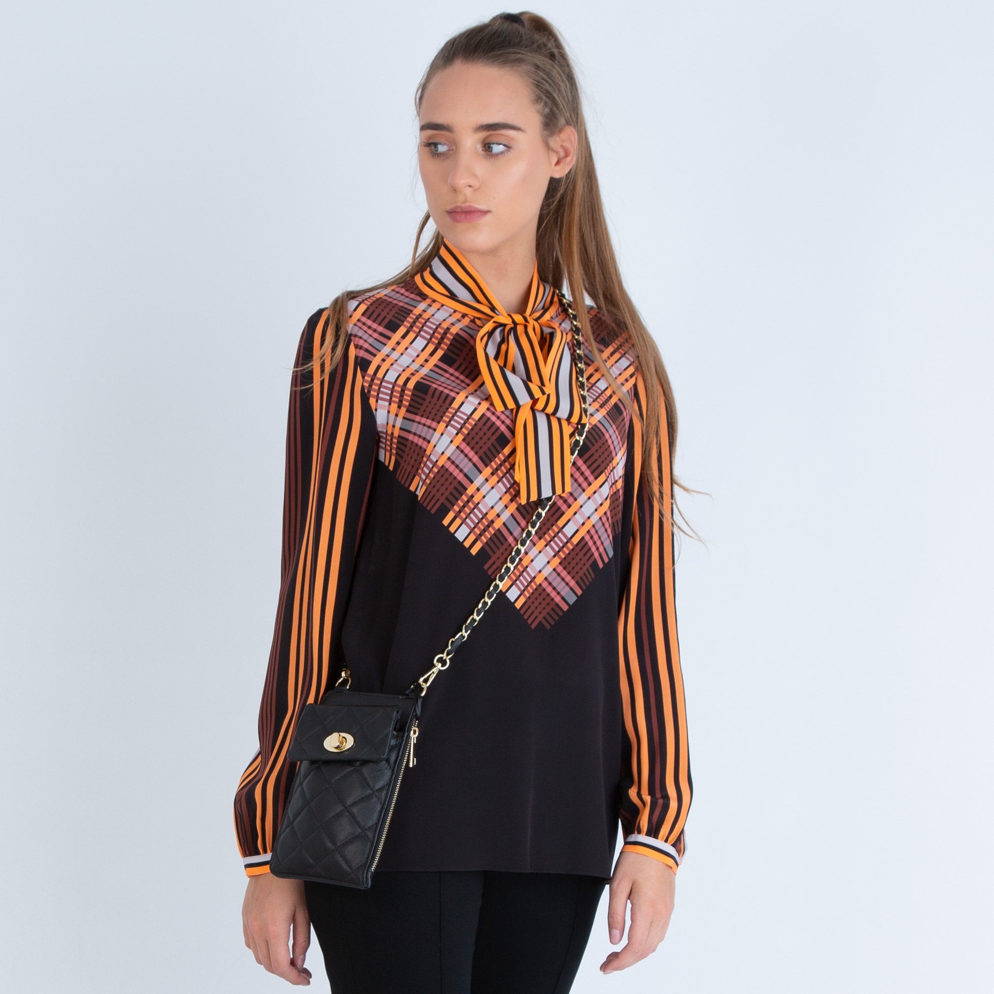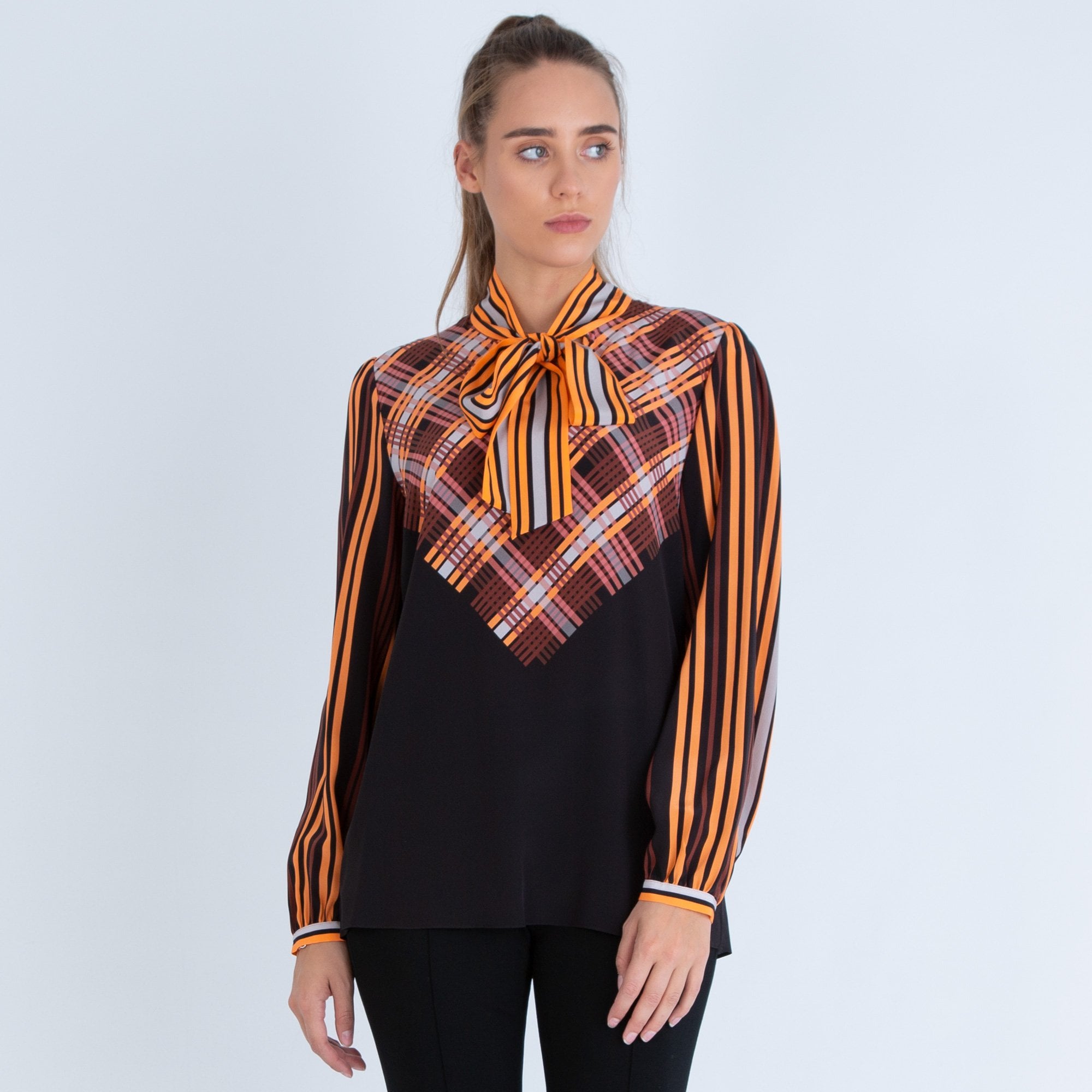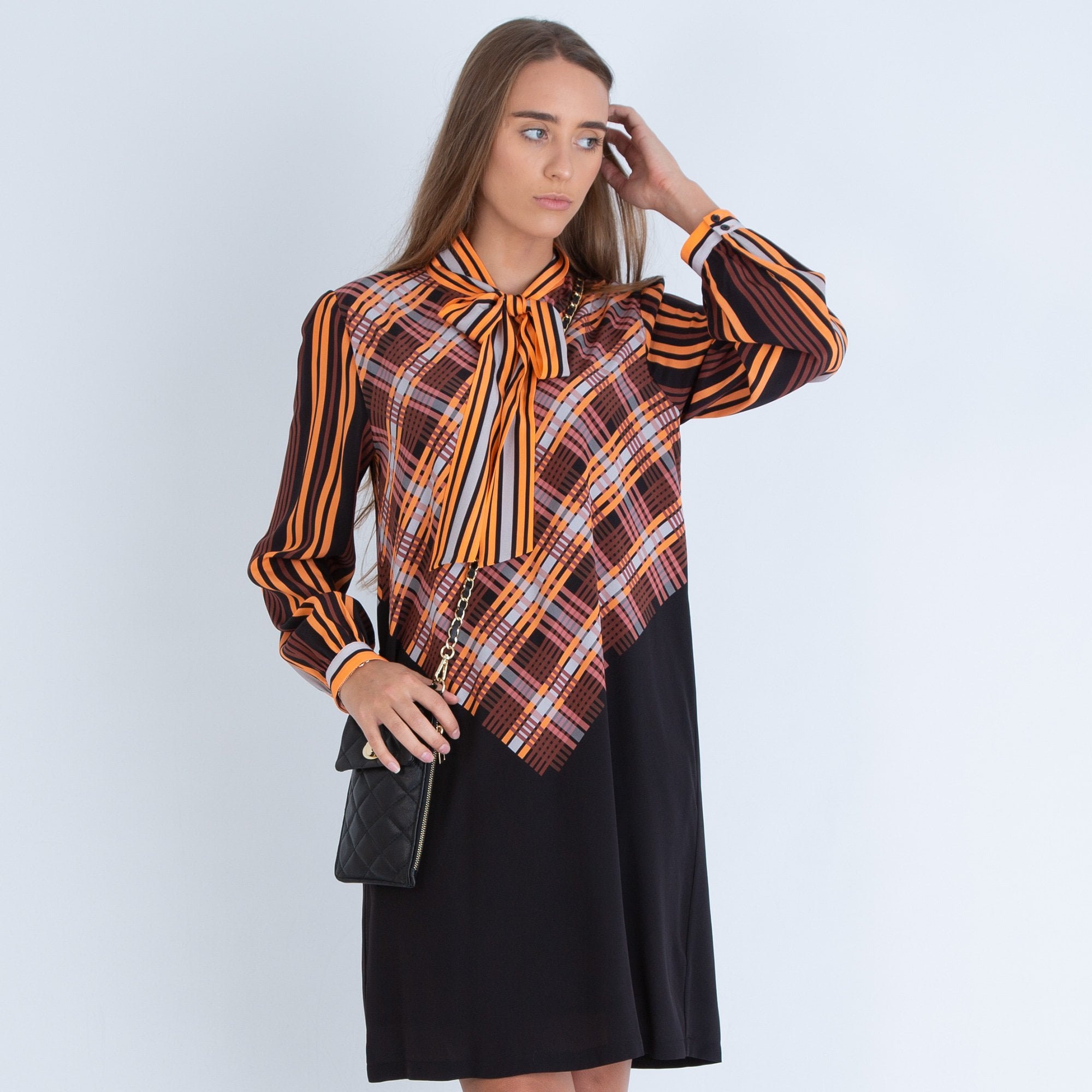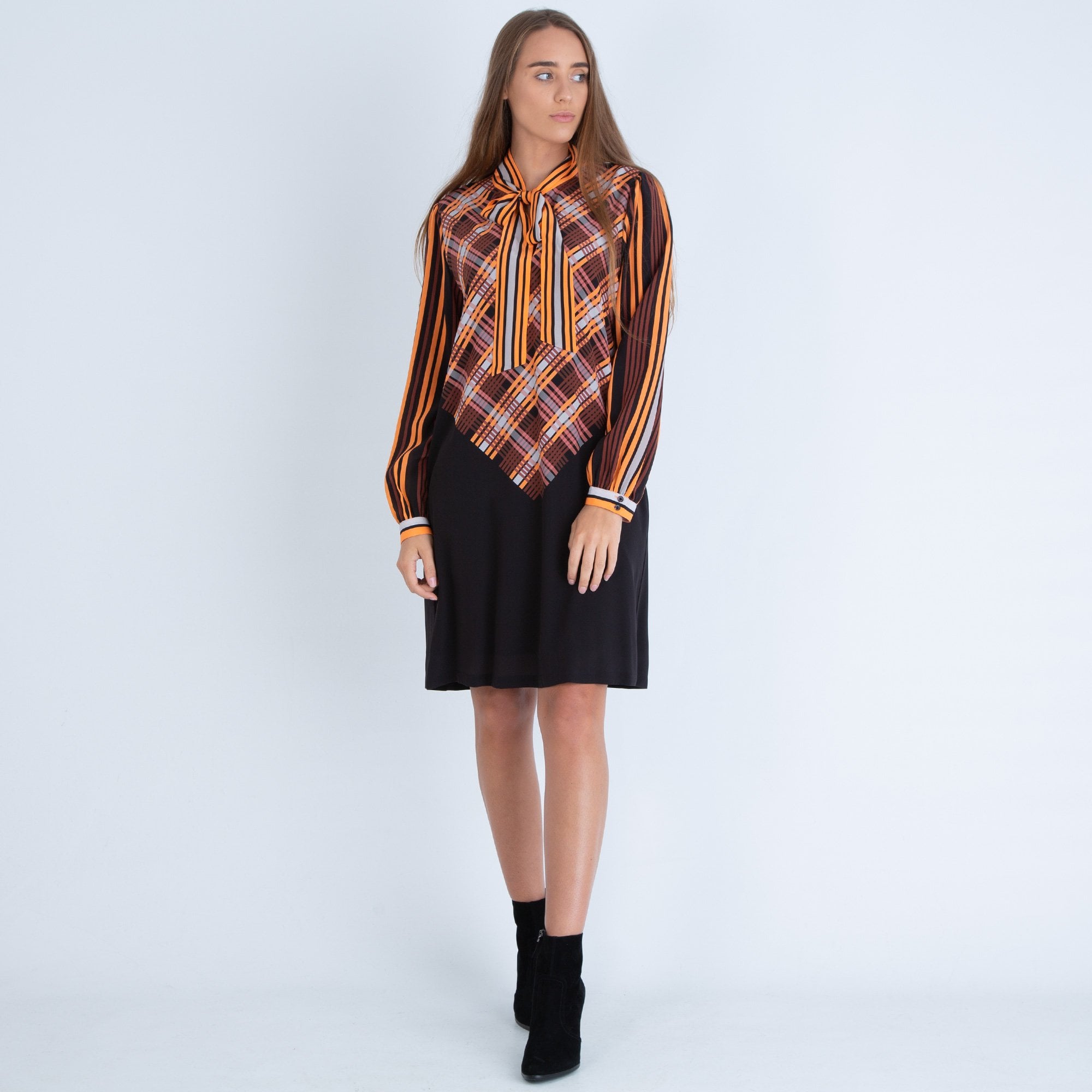 Marc Cain Pussy Bow Plain Hem Dress Orange/Black