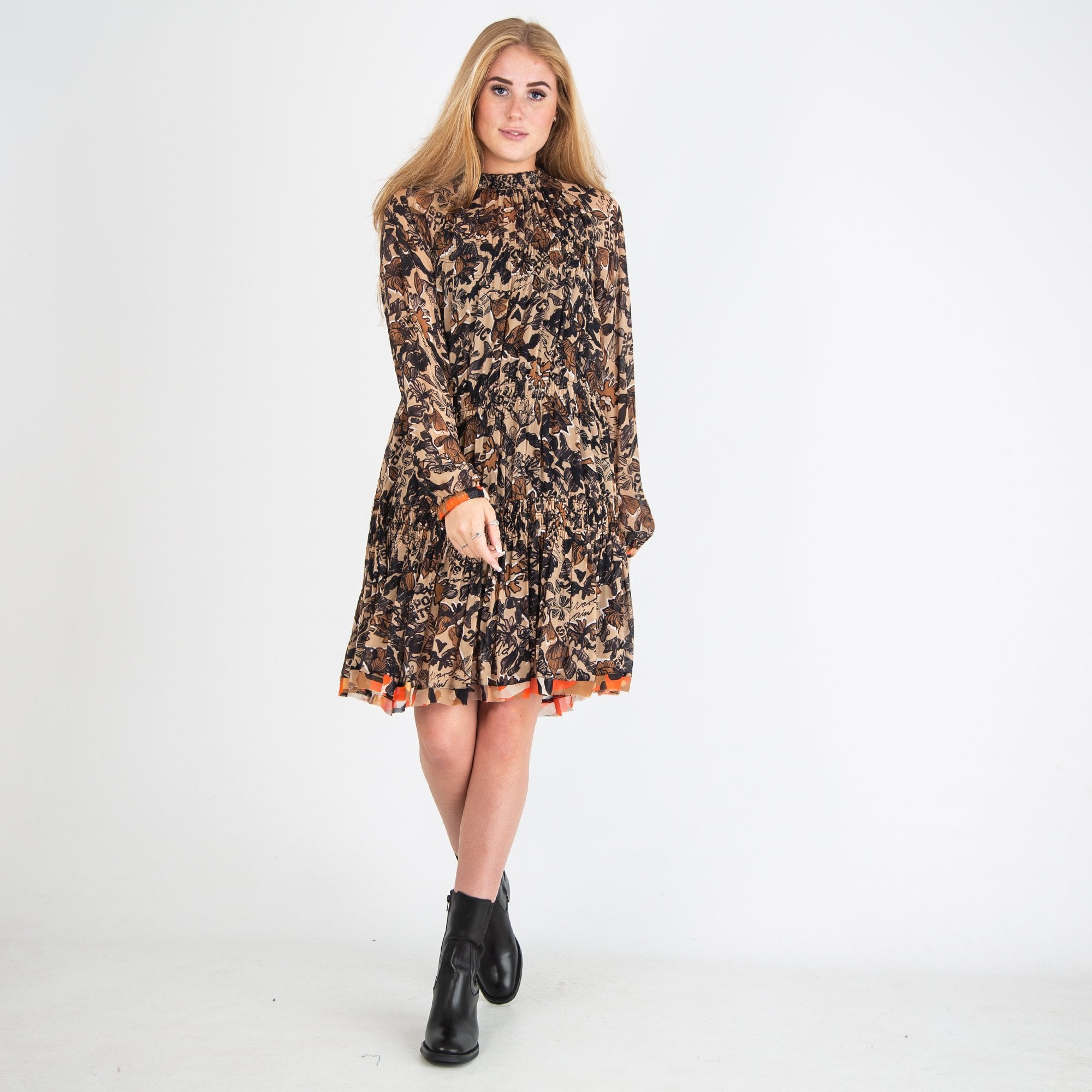 Marc Cain High Neck Floral Print Tiered Dress Black/camel