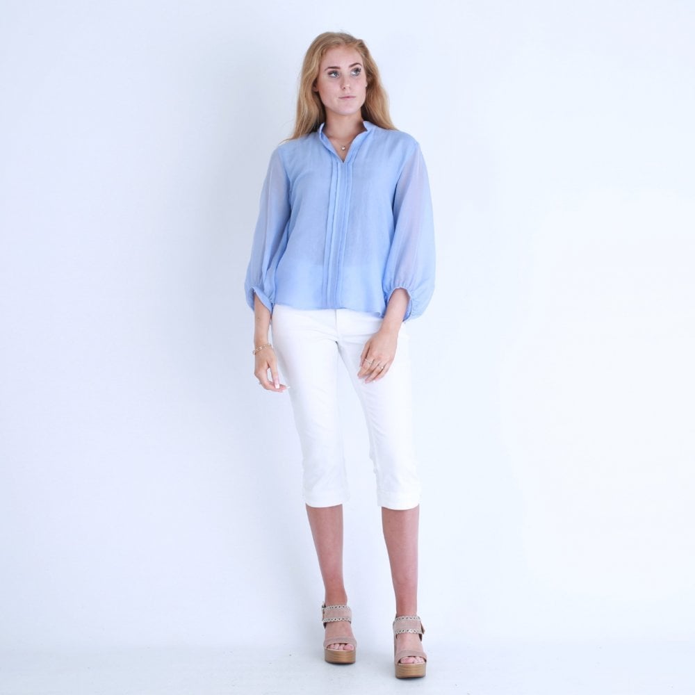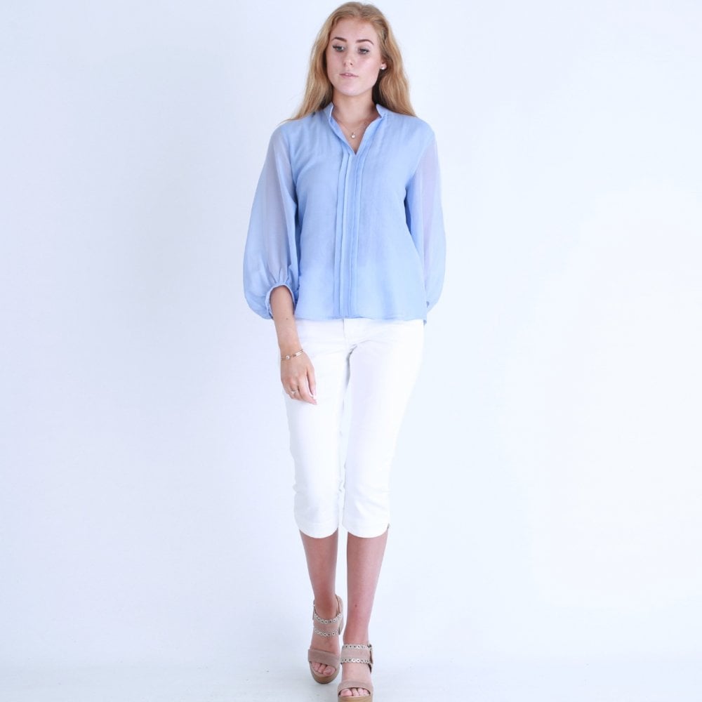 Marella Cantal Fine Balloon Sleeve Pleat Front Blouse Light Blue