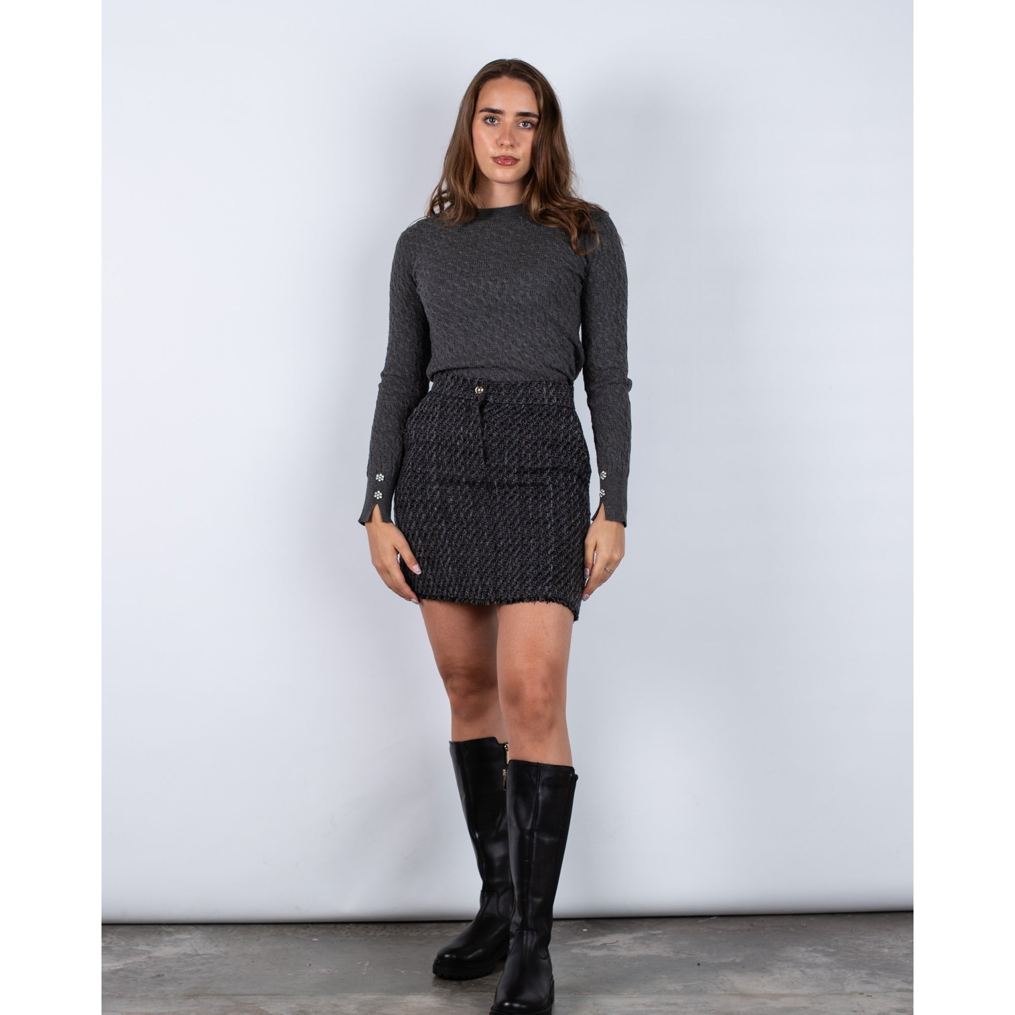 Marella Emme Mito Boucle One Button Mini Skirt With Lurex Speck Dark Grey
