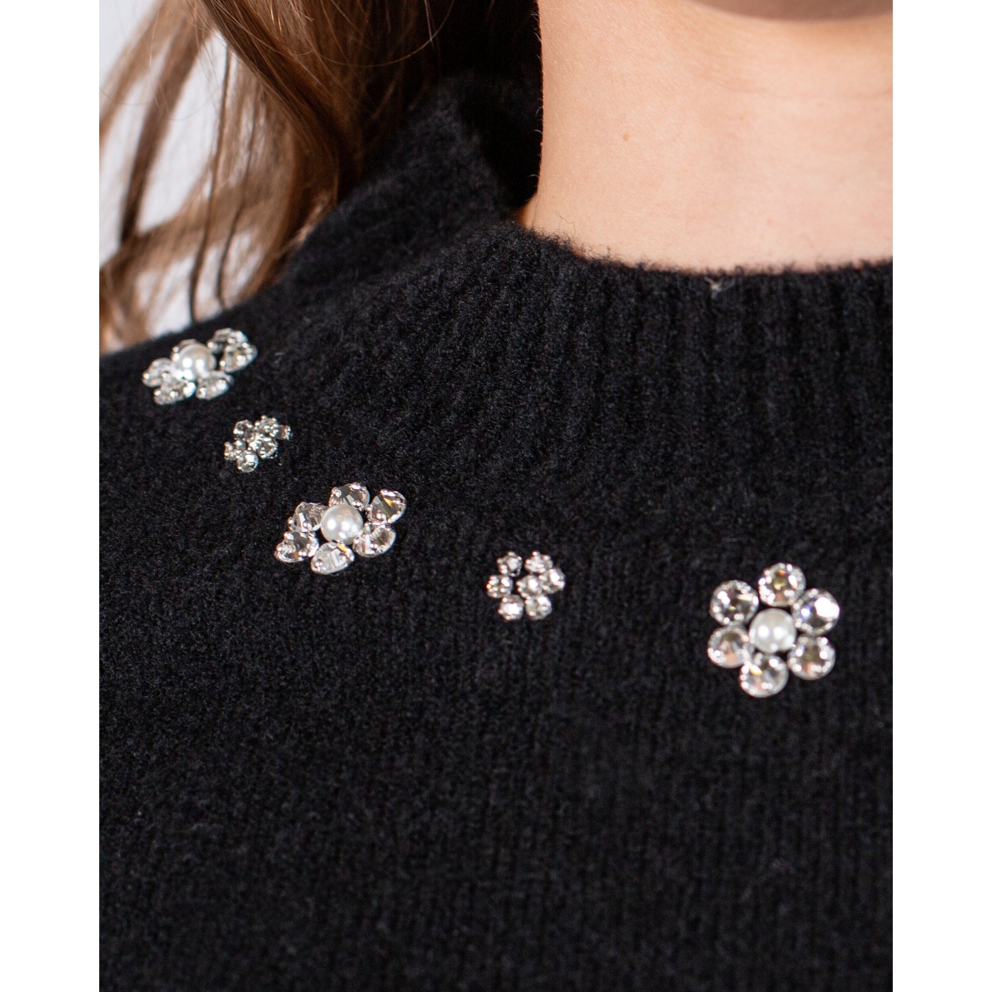 Marella Emme Galizia Knit Jumper With Jewelled Neckline Black