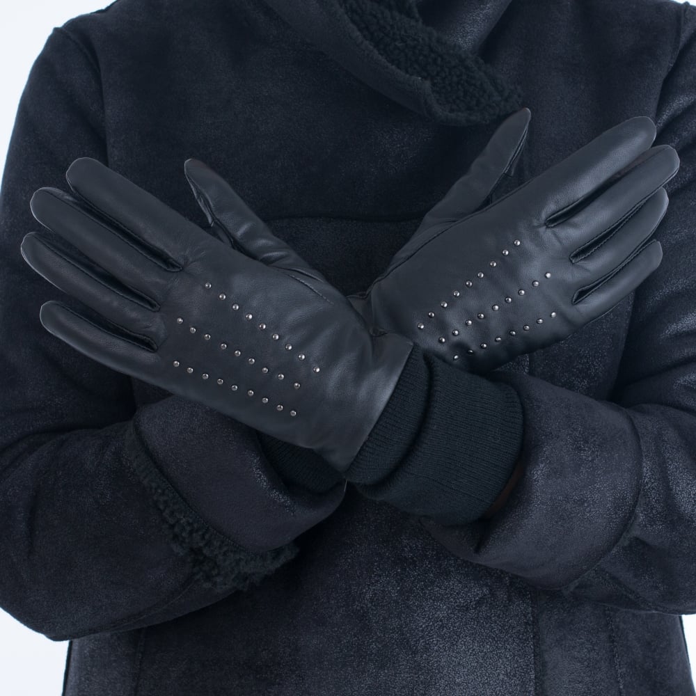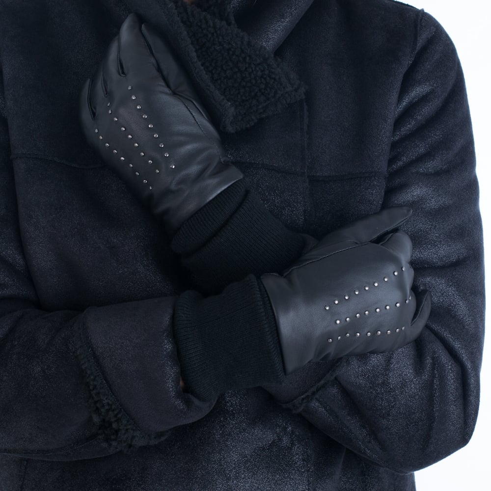 Markberg Kia Leather Studded Glove With Knitted Cuff Black