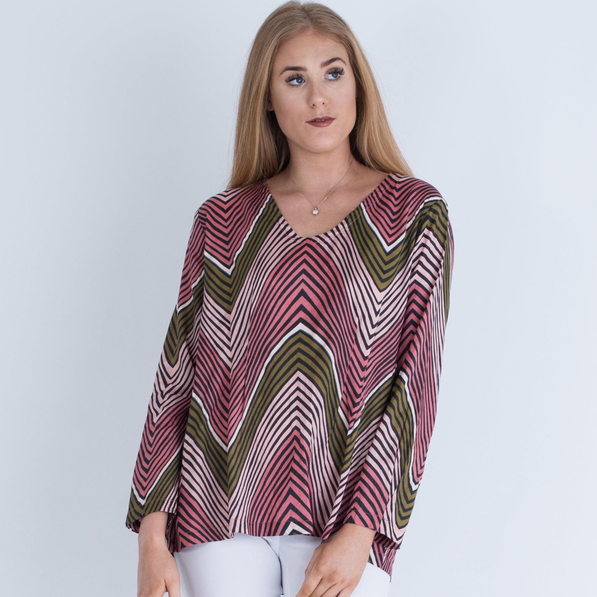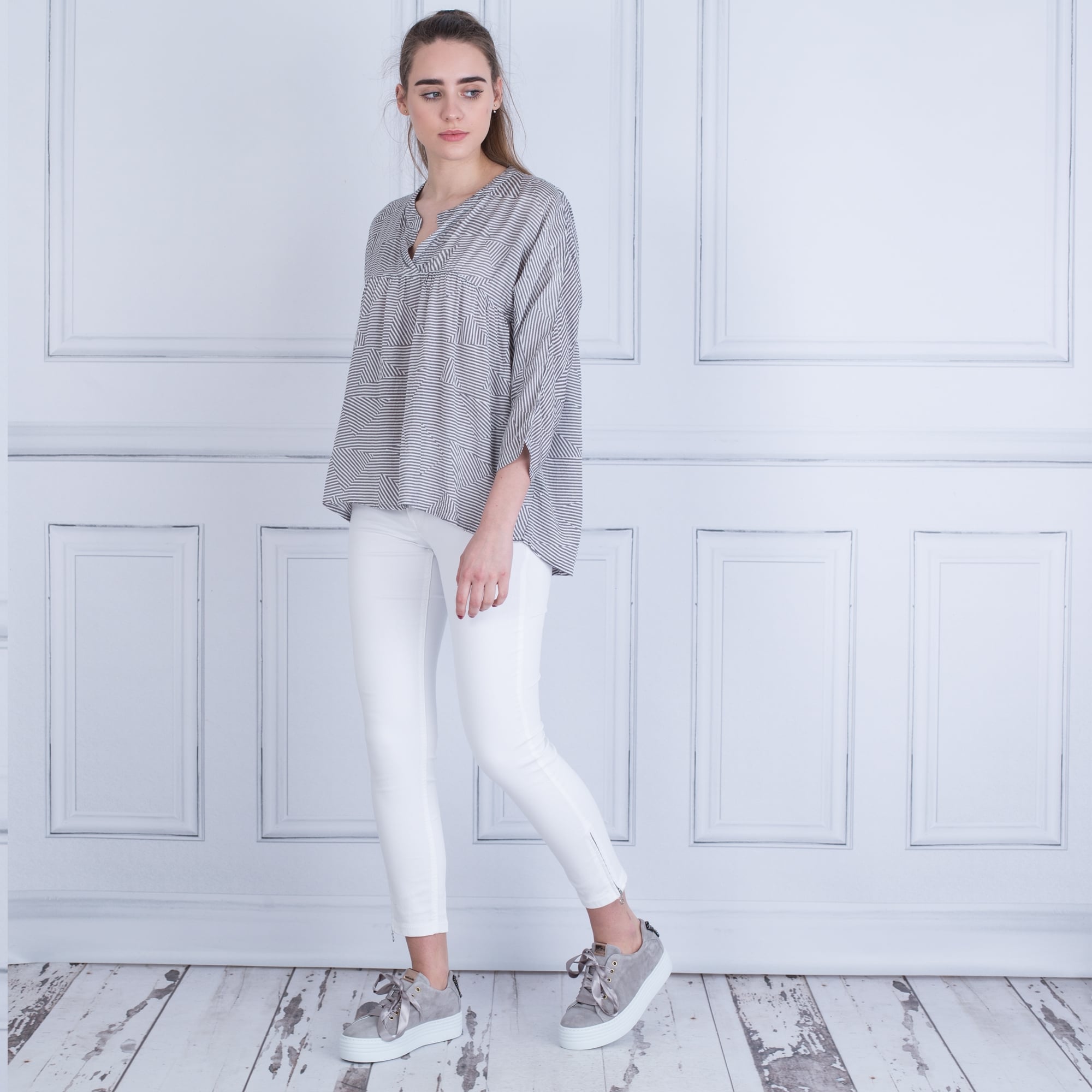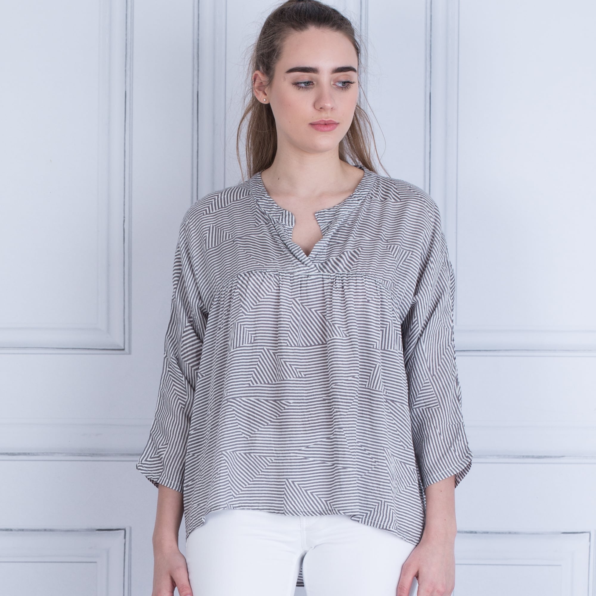 Masai Dalia Stripe Gathered Seam Front Blouse Dove