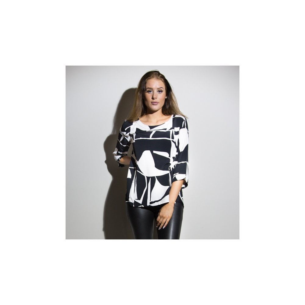 Masai Britt Abstract Print Tie Side Round Neck Blouse Black/ecru