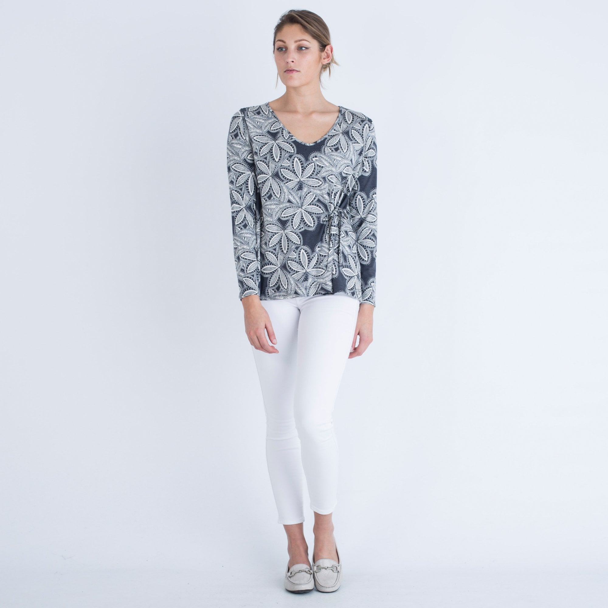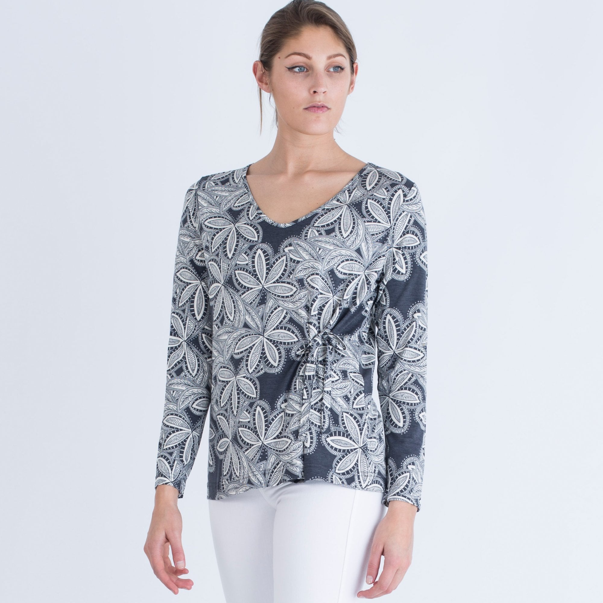 Masai Deeann Floral Print Jersey Top Charcoal/White