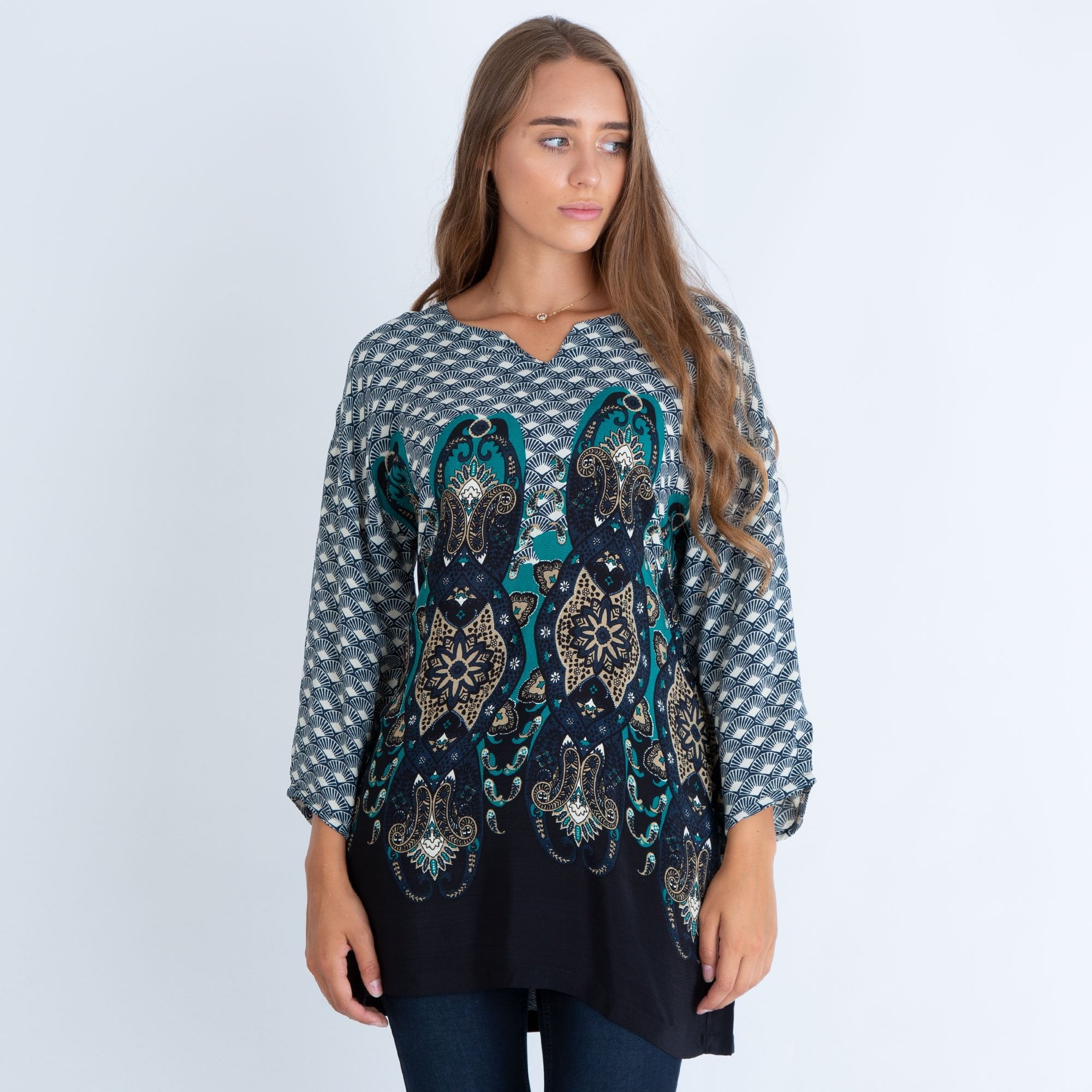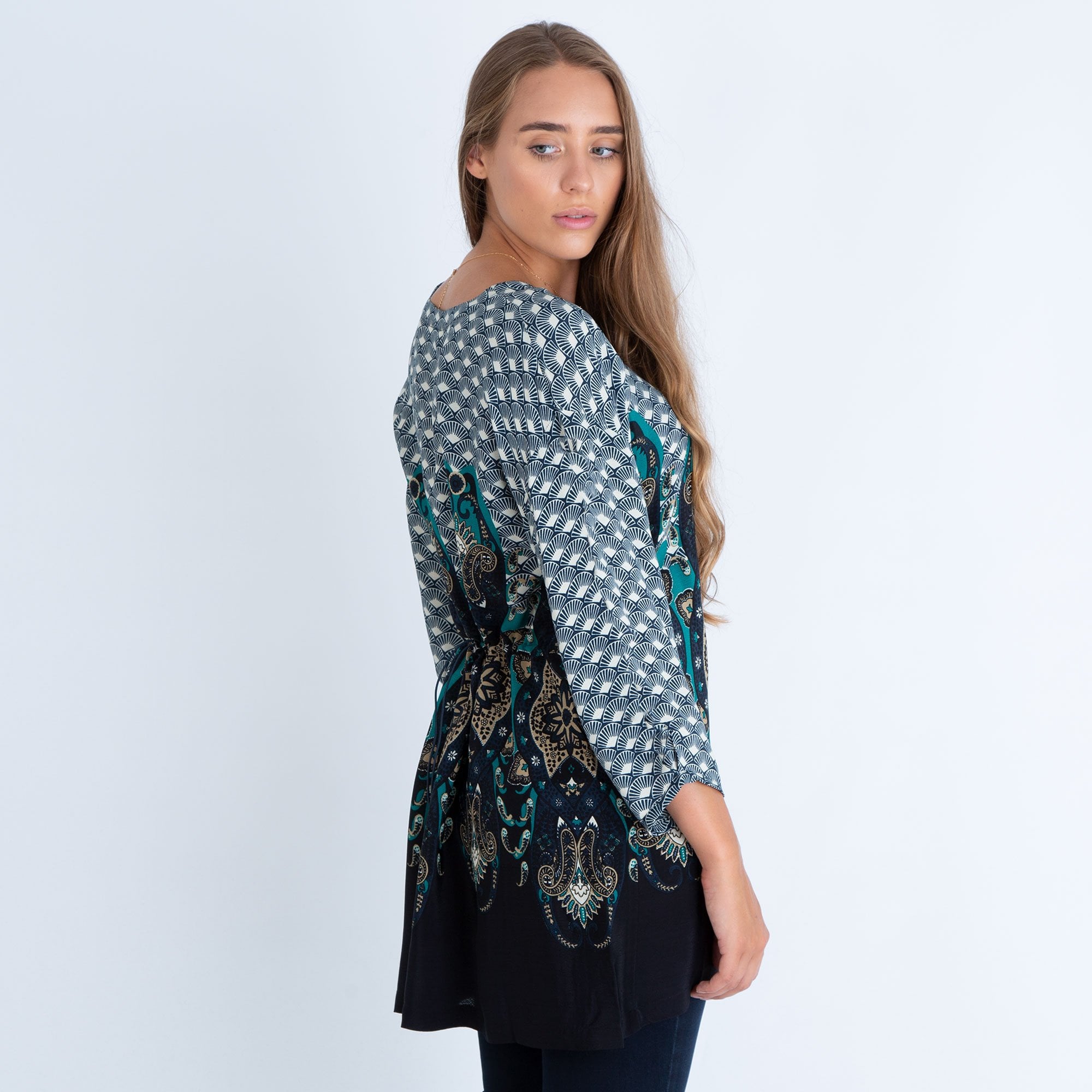 Masai Grethe Multi Fan Print Tunic With Cutout Neck Blue Multi