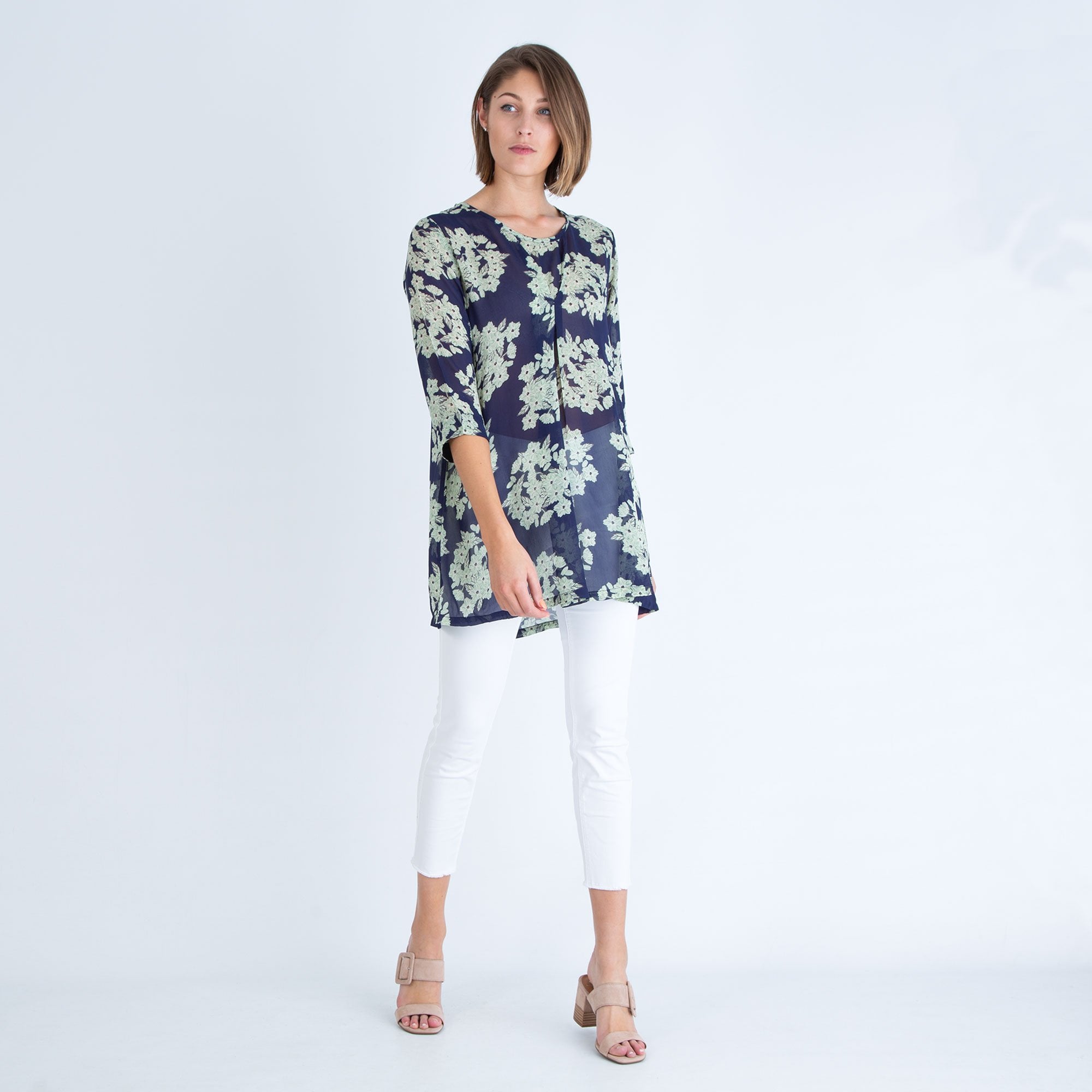 Masai Garland Floral Print Tunic Viscose Blouse Blue/Green