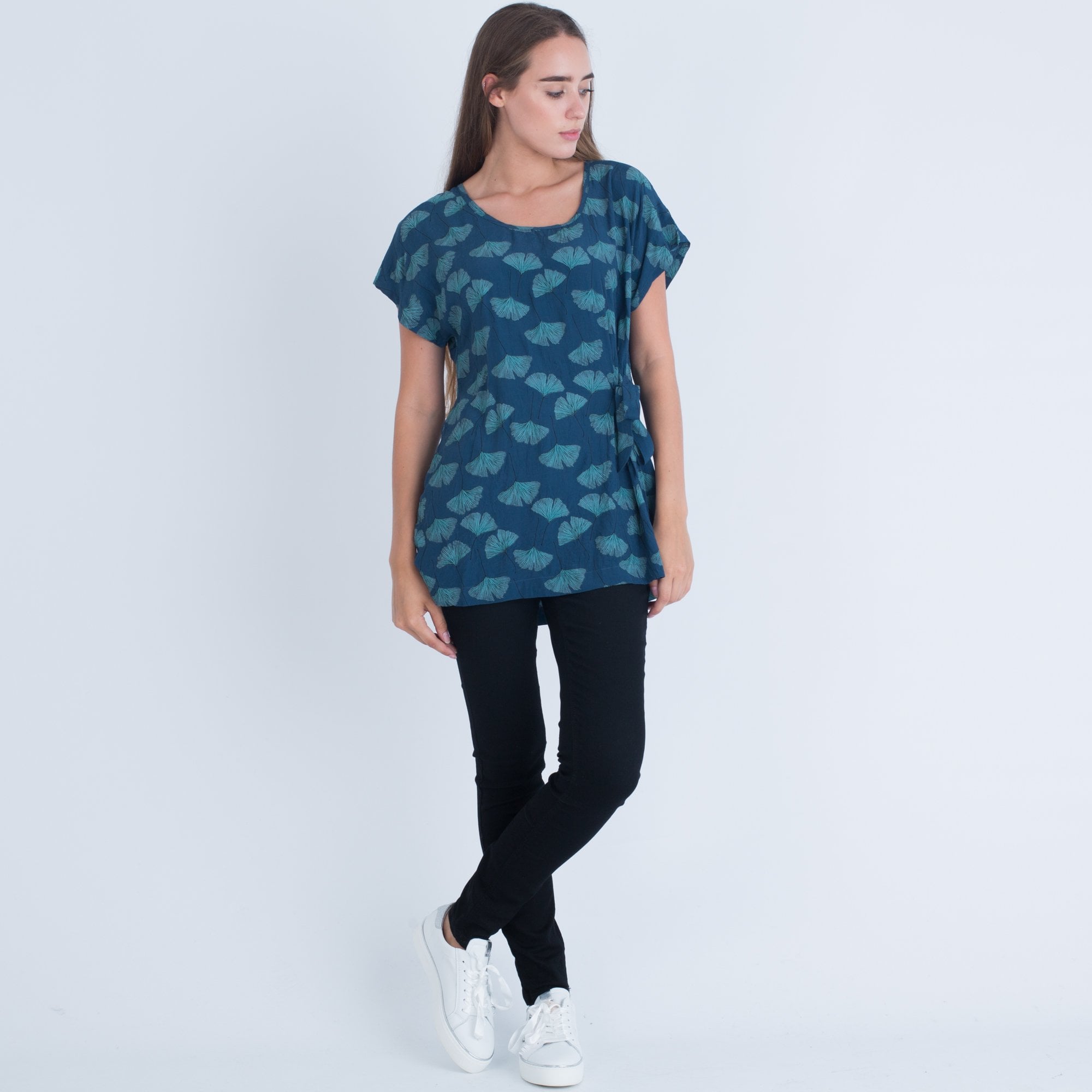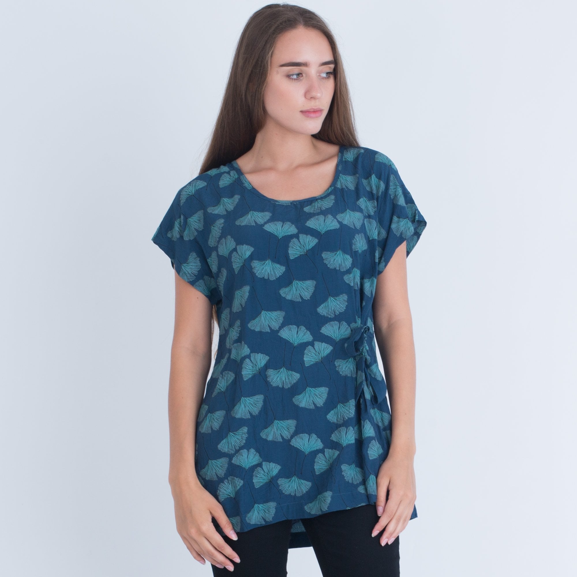 Masai Emely Fan Print Blouse With Tie Side Teal
