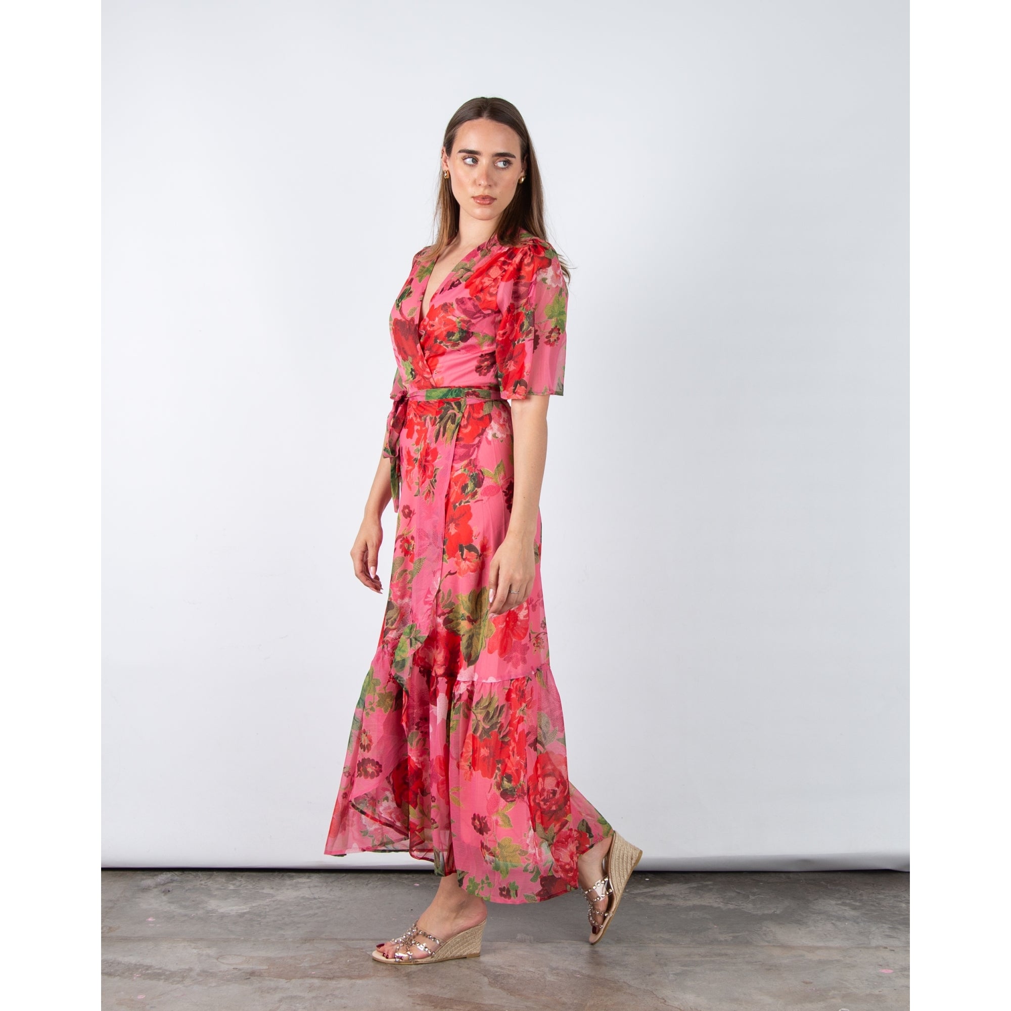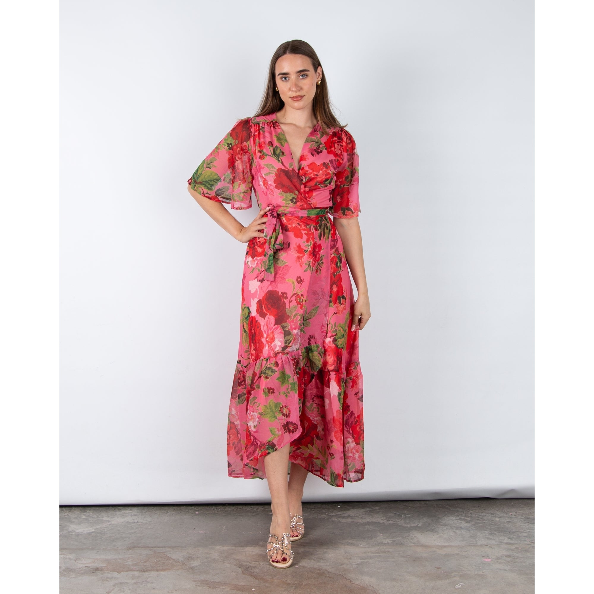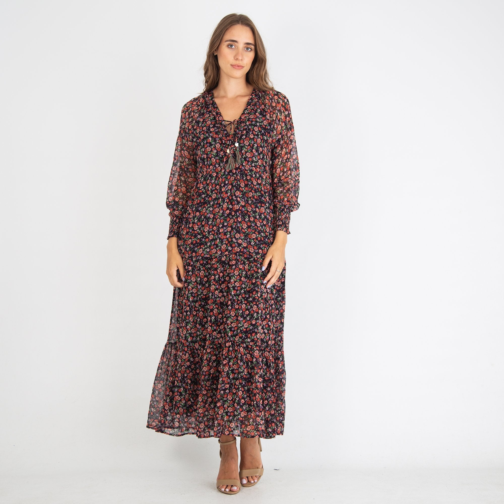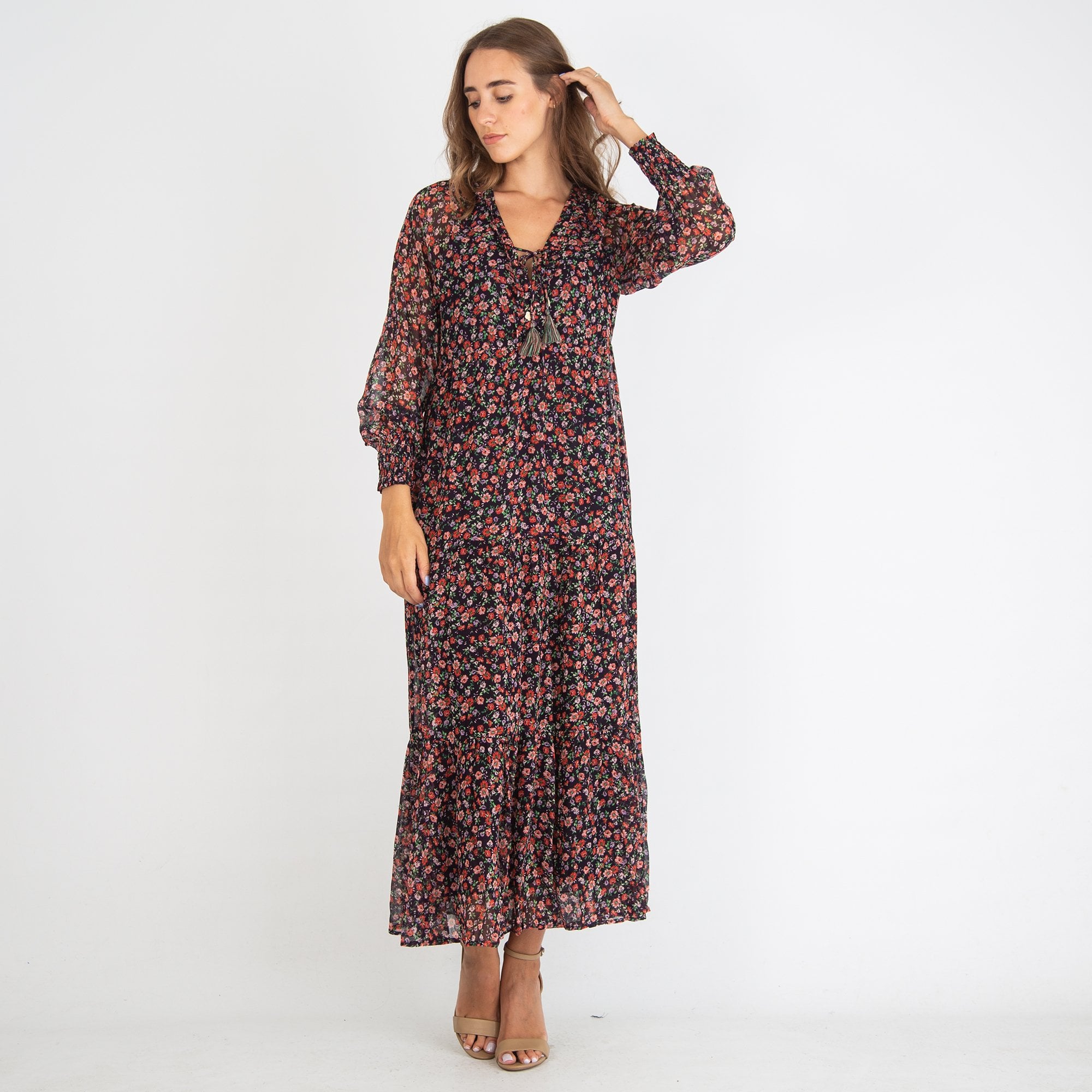 Moliin Elena Pretty Floral Tiered Hem Maxi Dress Red/Black/Multi