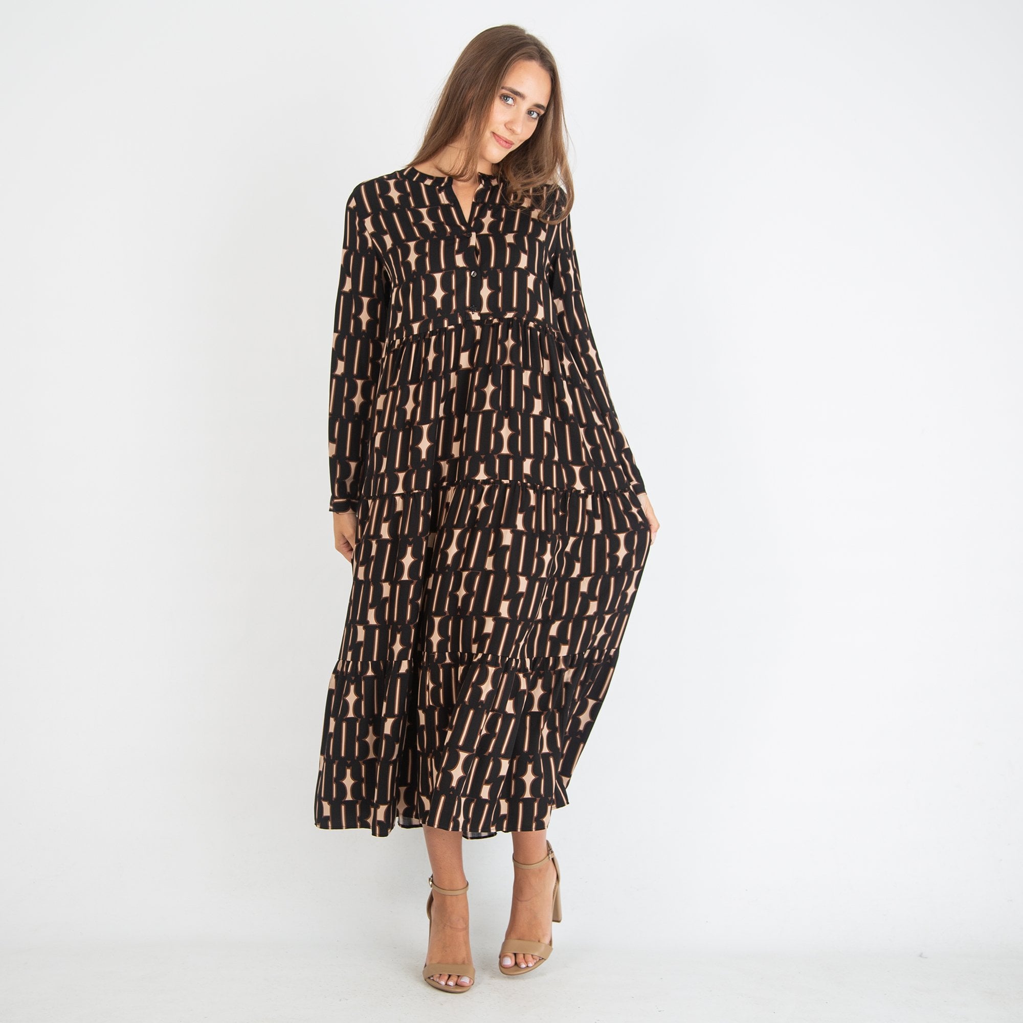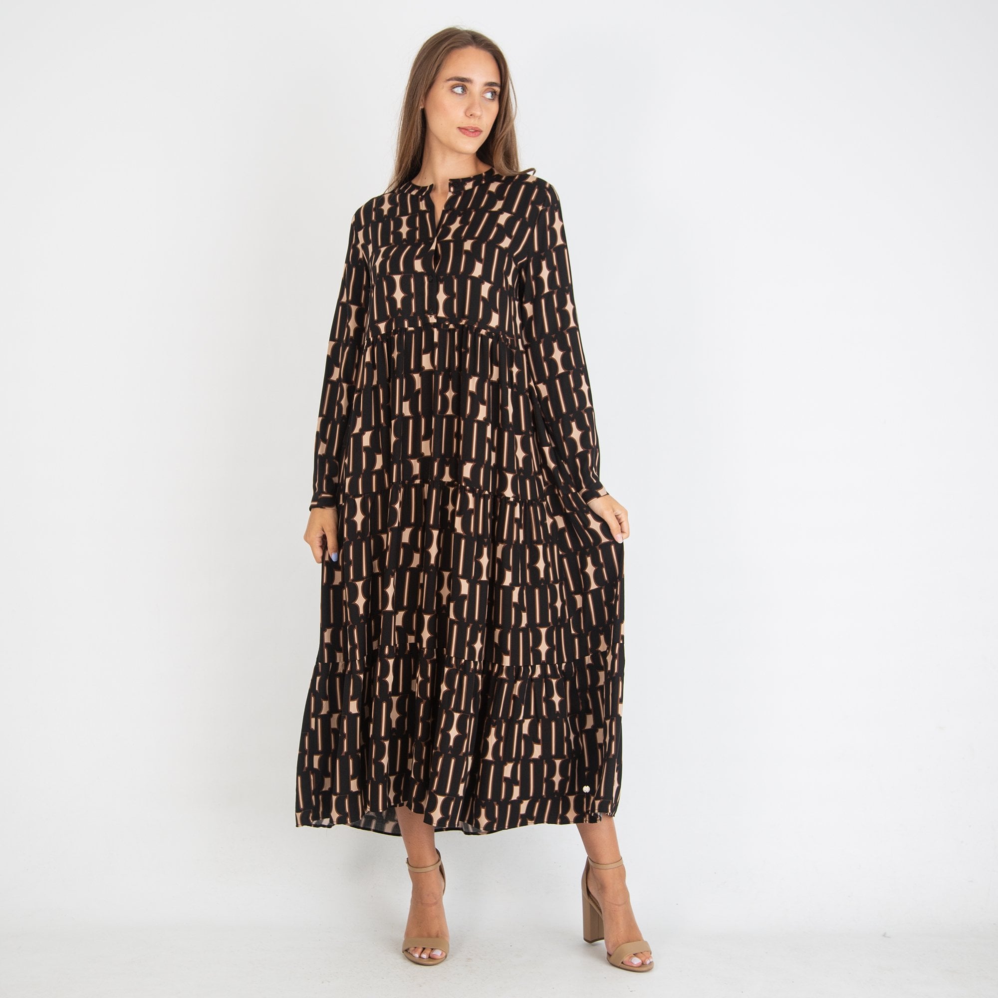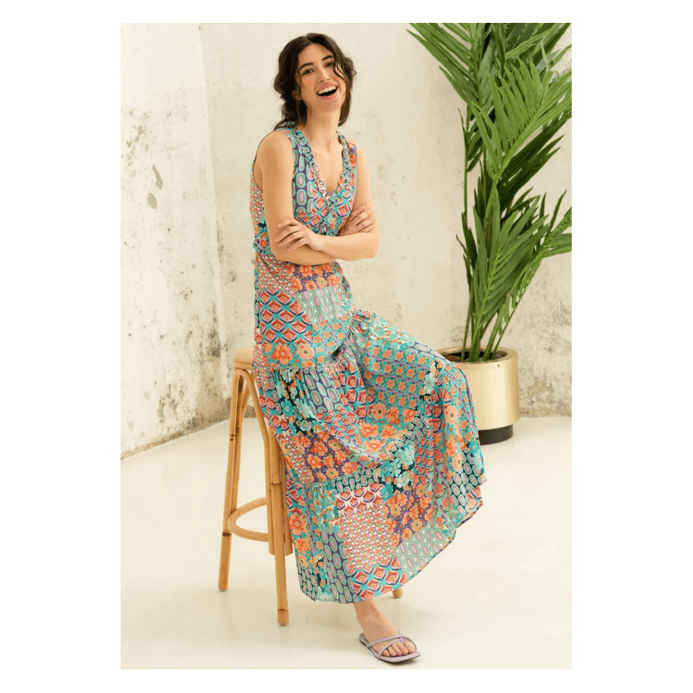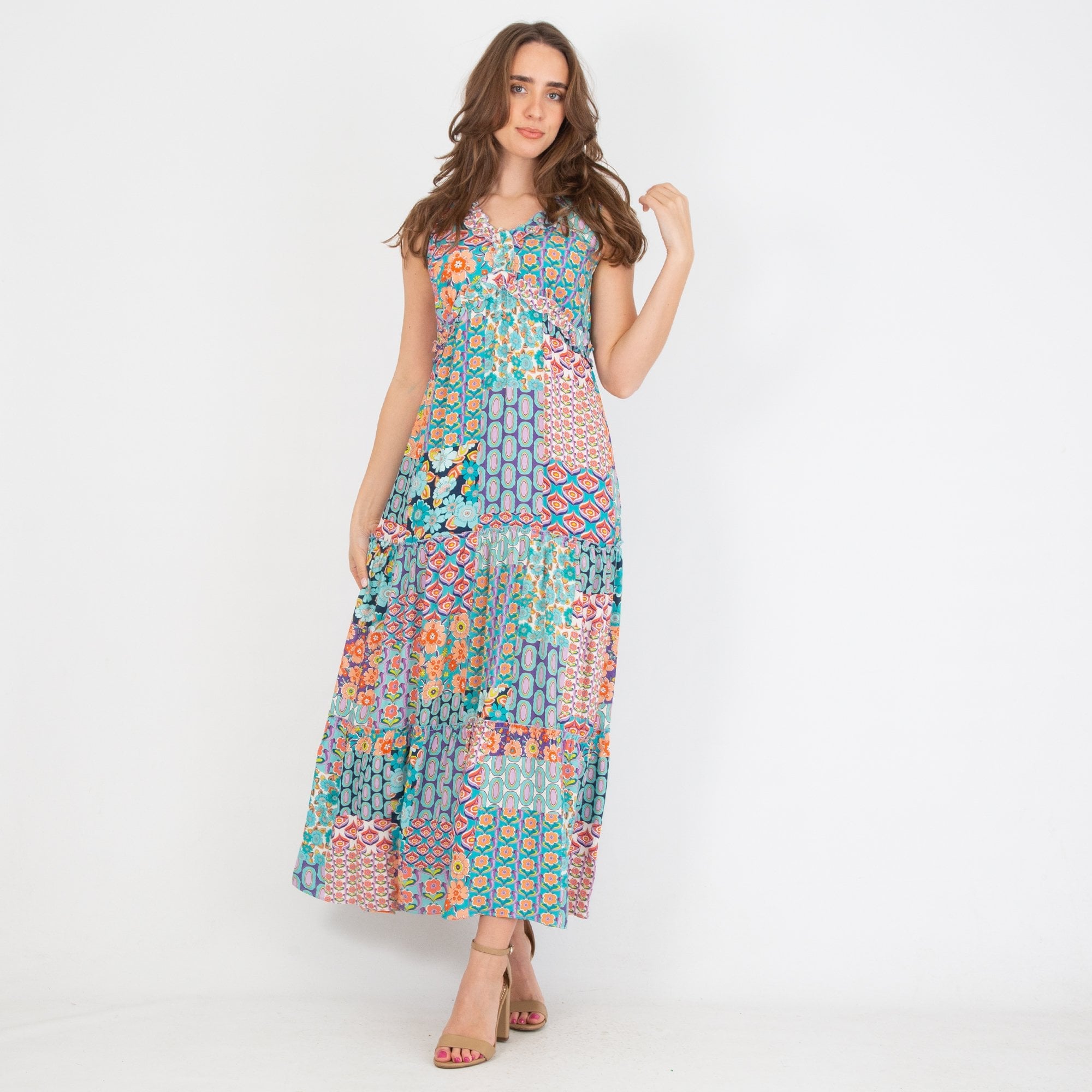 Tinta Style Norman Patchwork Print Ruffle Tiered Maxi Dress Multi