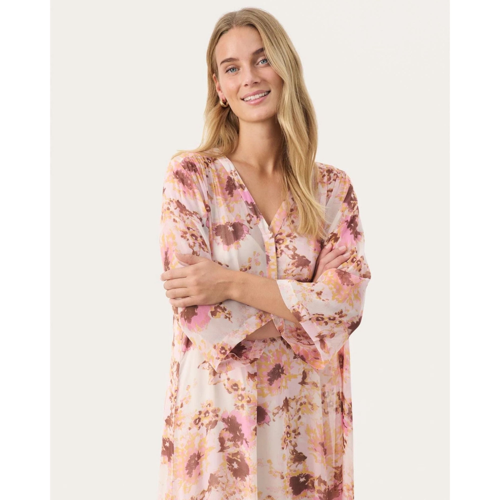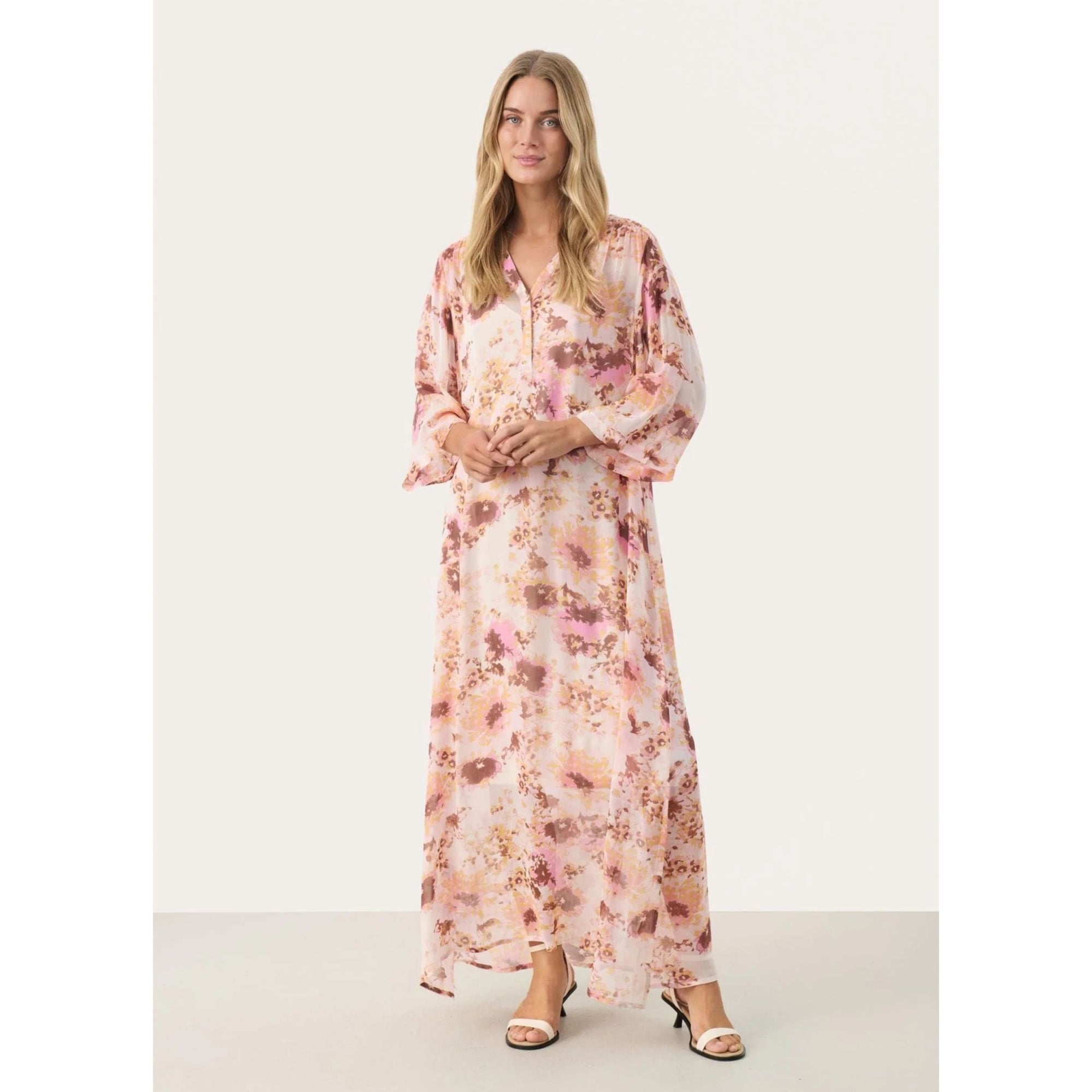 Part Two Berit Loose Bodied V Neck Floral Print Dress Pink Nectar