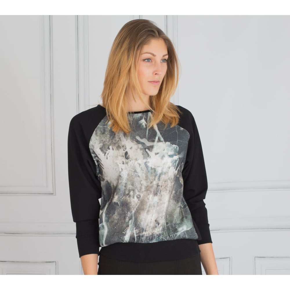 Mee&Thee Lake Louise Sequin Print Sweatshirt Black