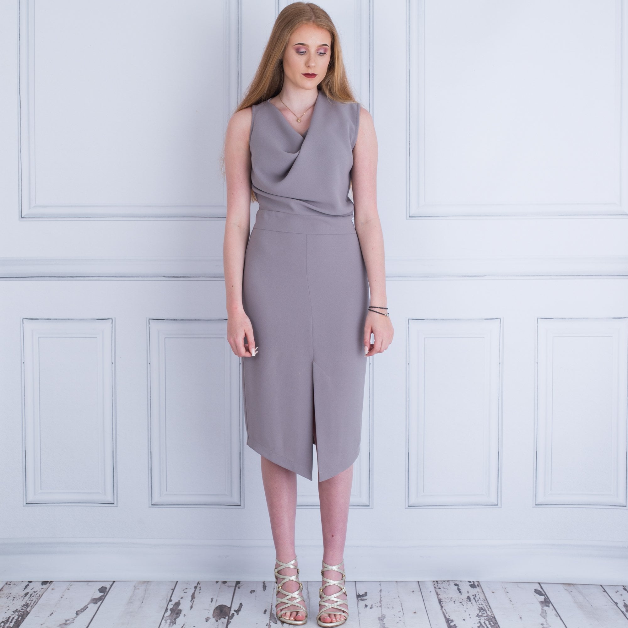 Mee & Thee Sleeveless Drape Front Dress Taupe