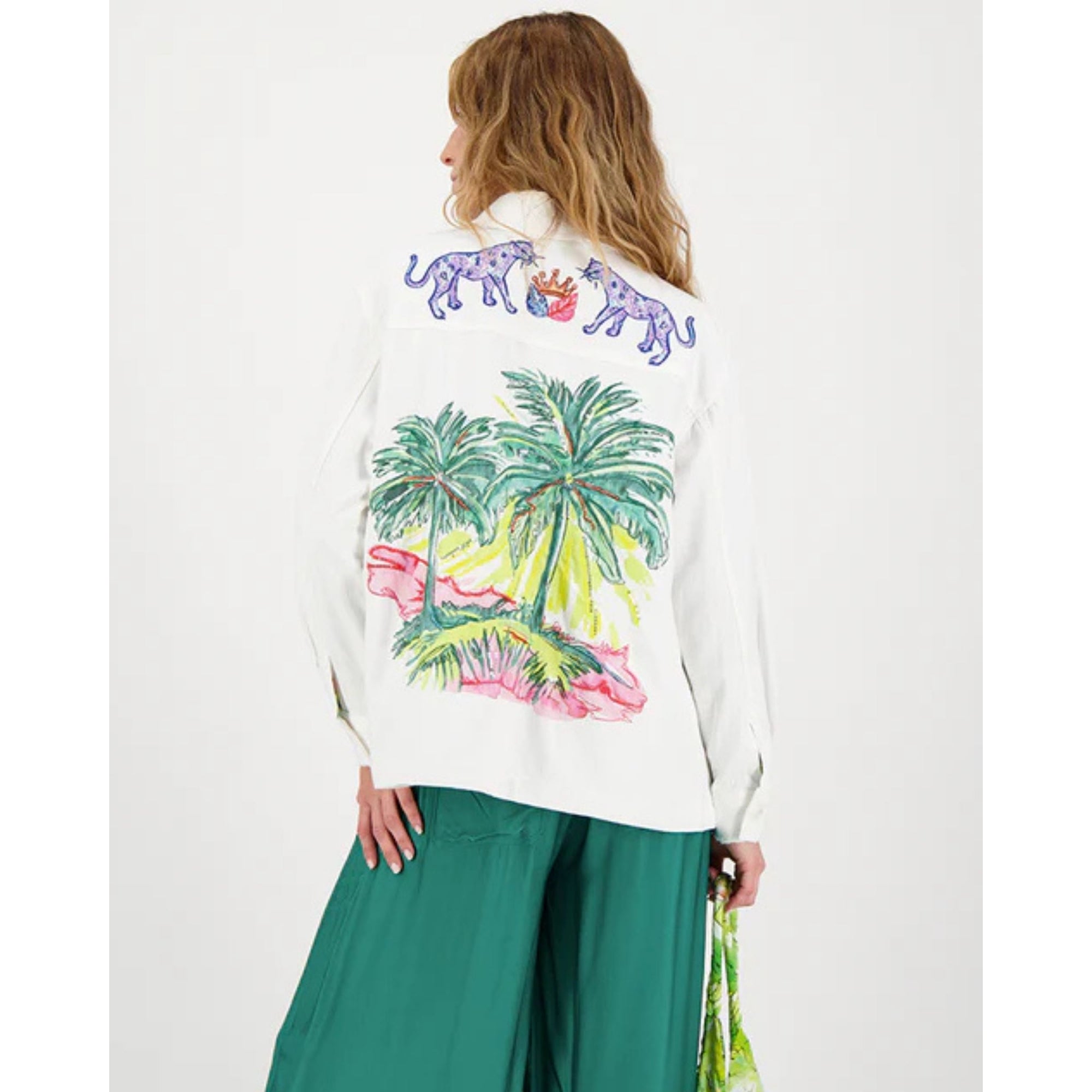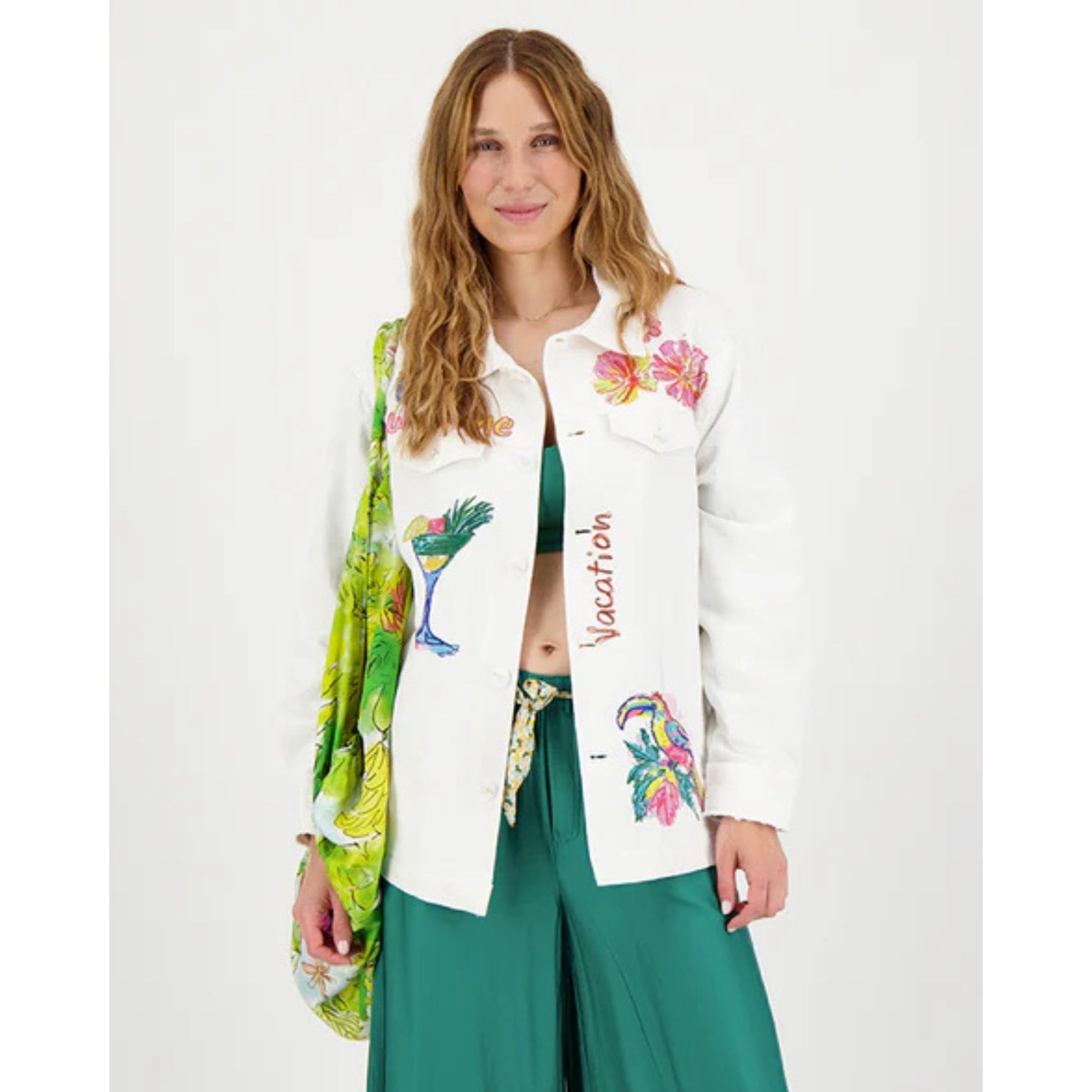 Me369 Briann Oversized Jacket With Tropical Embroidery White Multi