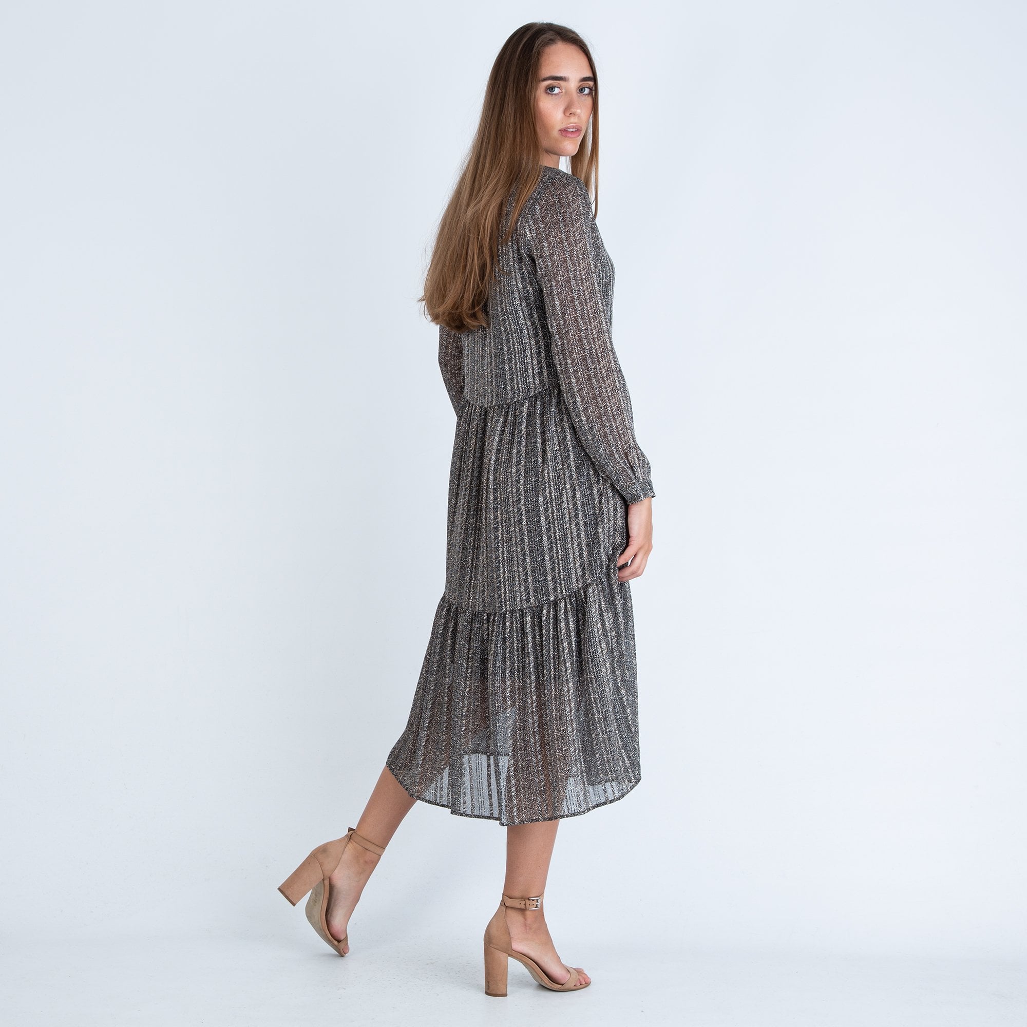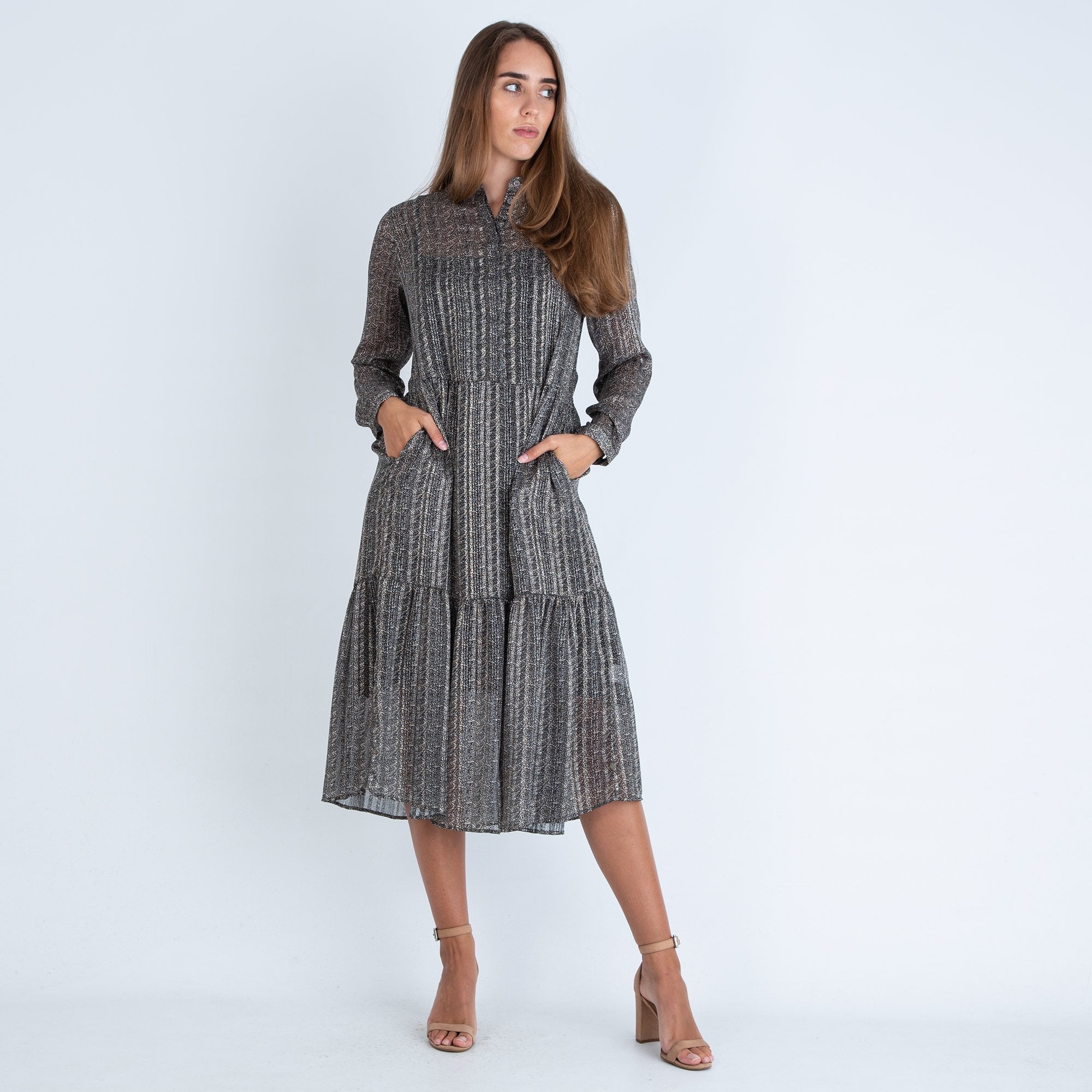 Milano Italy Tiered Gathered Print Long Dress Graphite