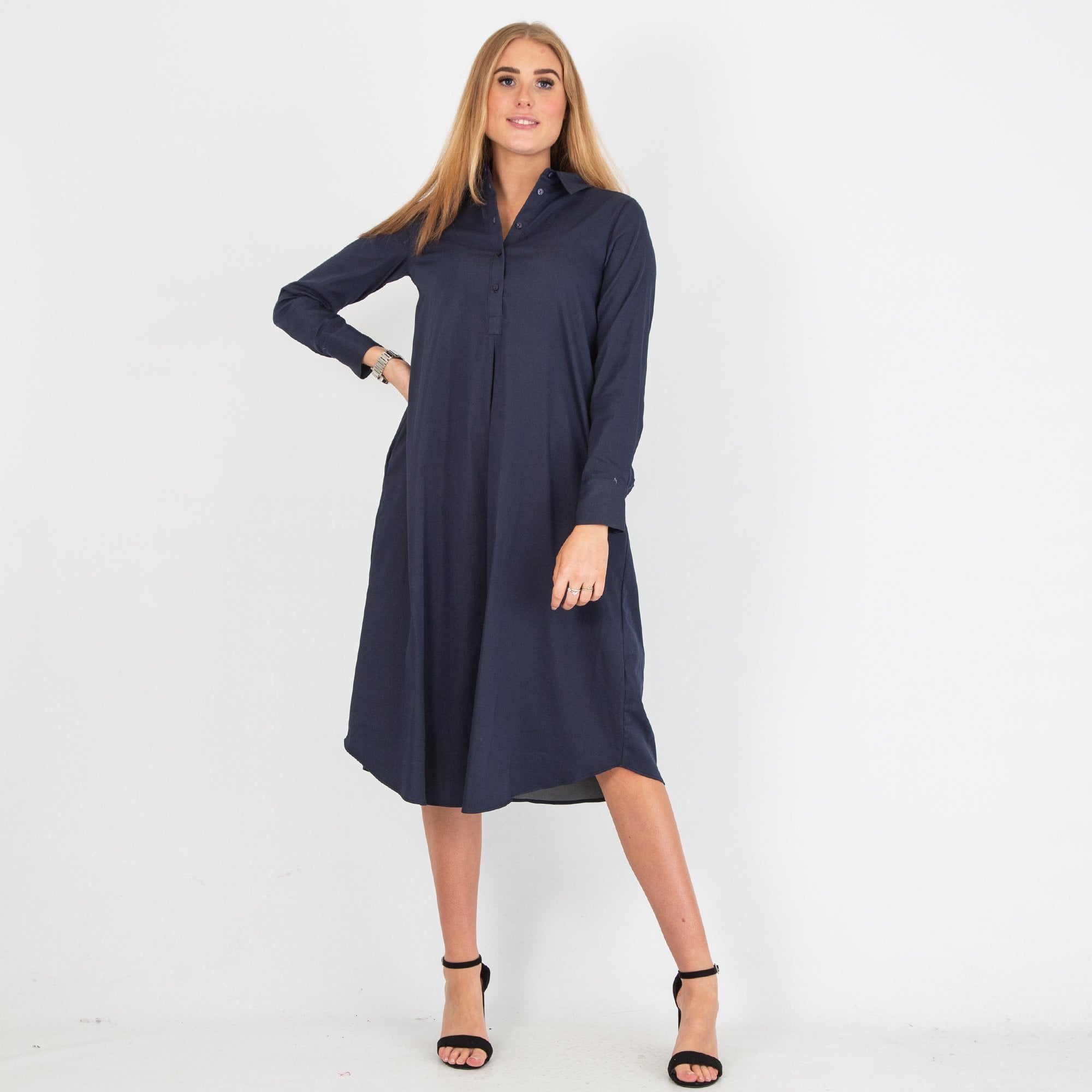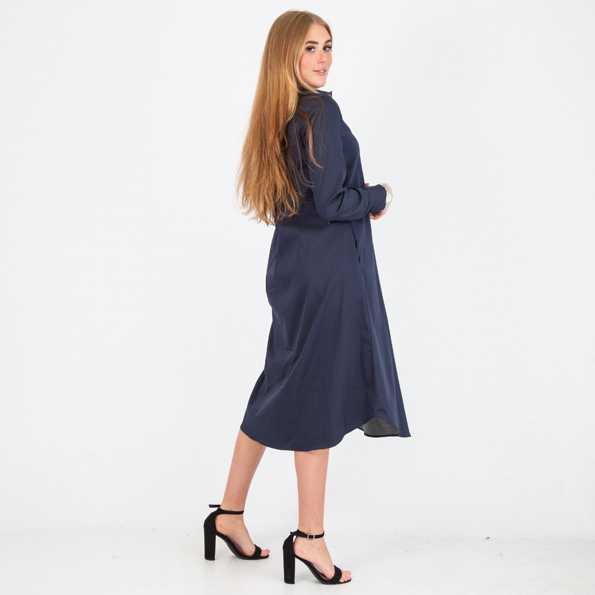Milano Italy Cotton Stretch Loose Shirt Dress Navy