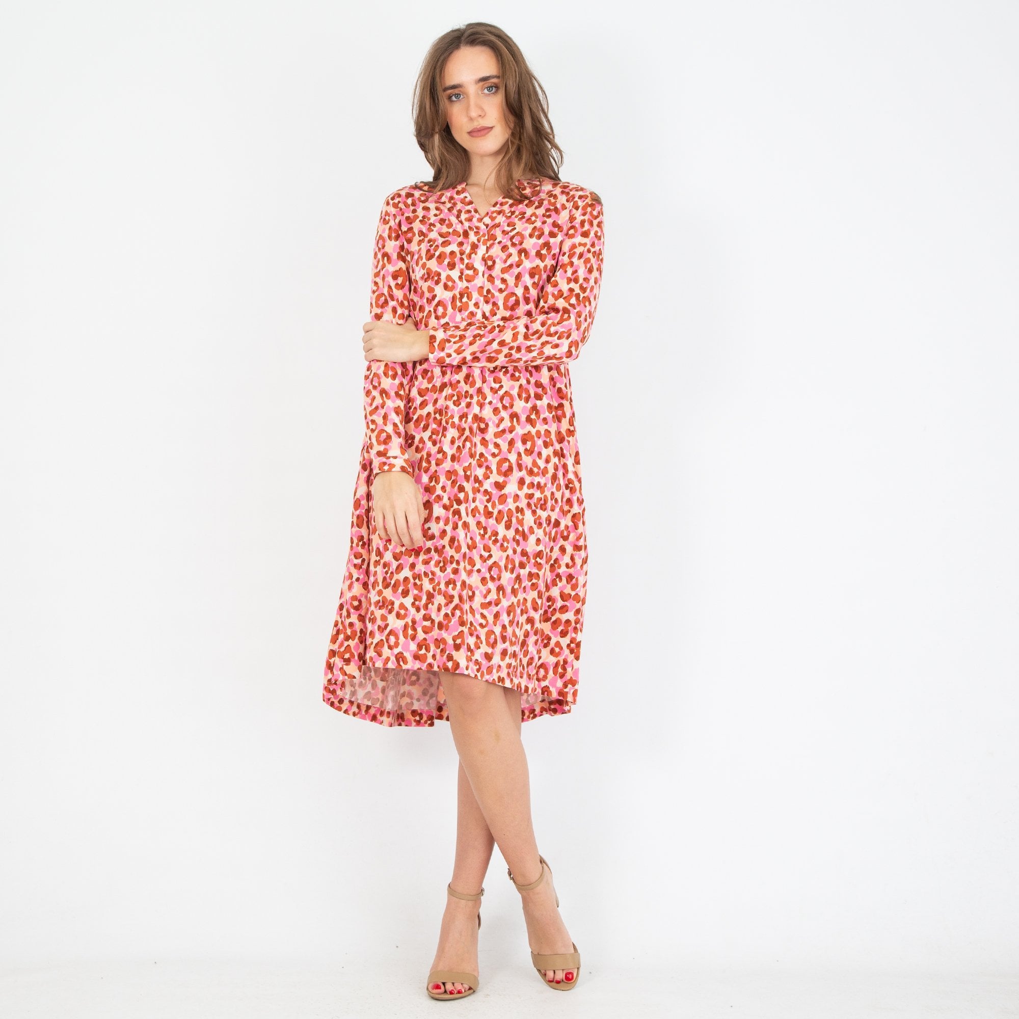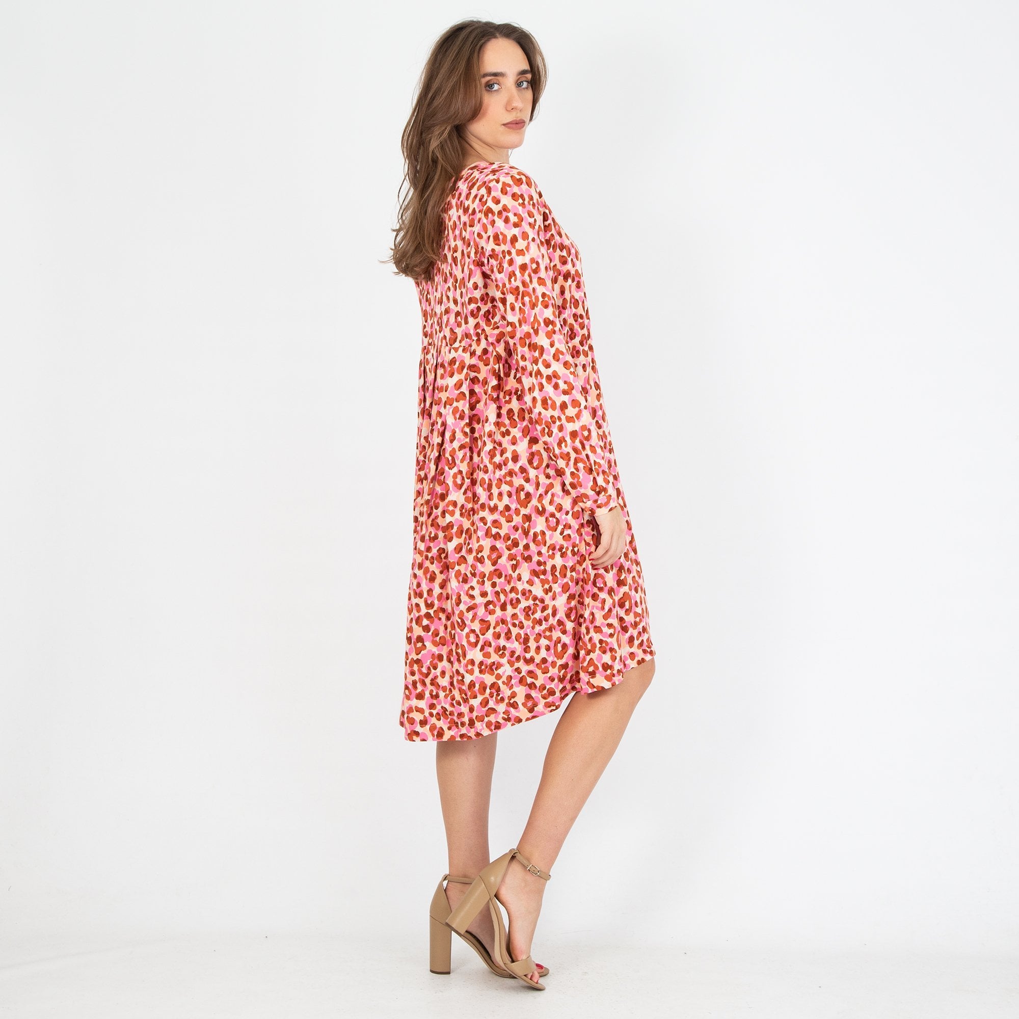Milano Italy Blown Floral Collarless Loose Bodied Dress Pink Mix