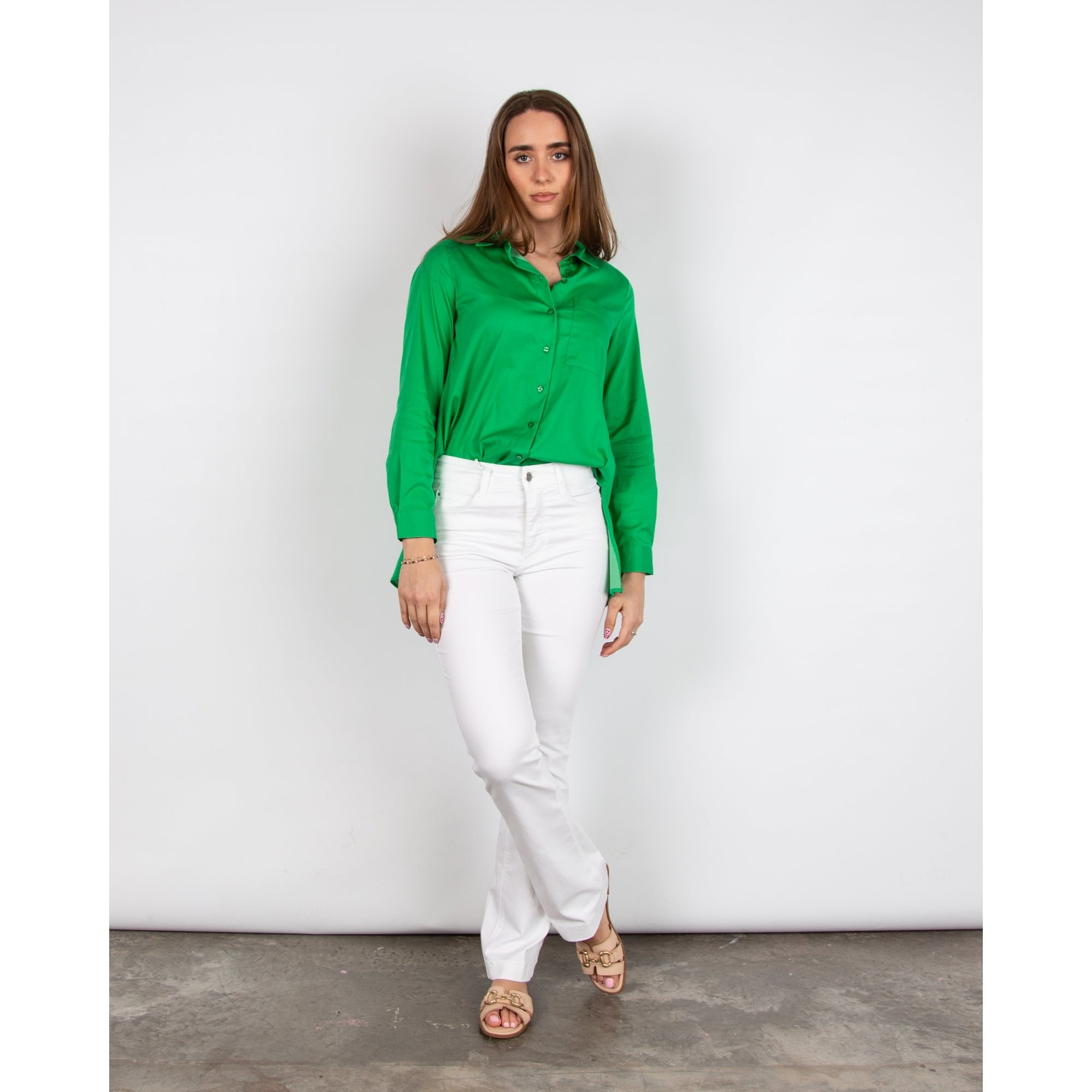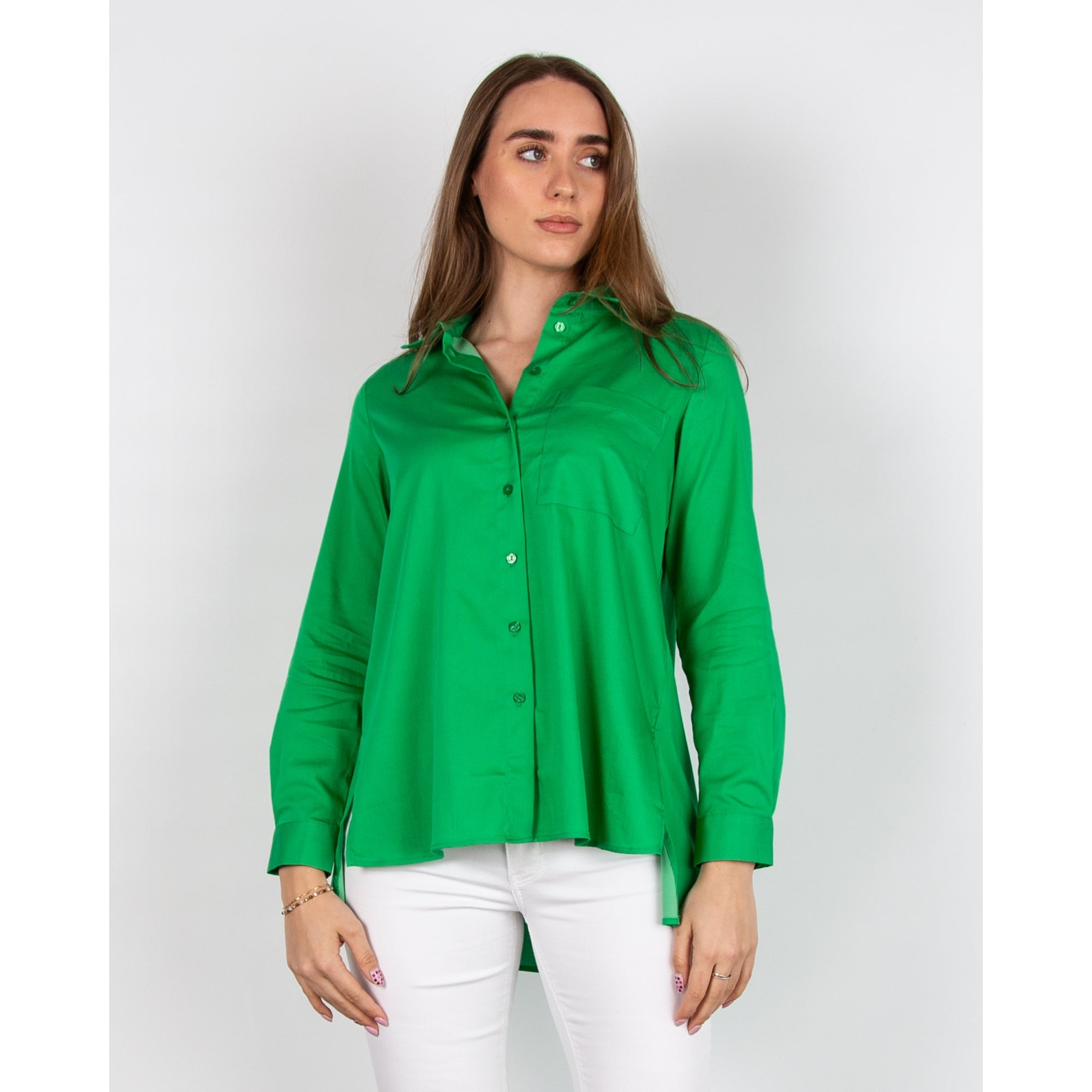 Milano Italy Pocket Front Split Side Dip Back Shirt Blouse Green