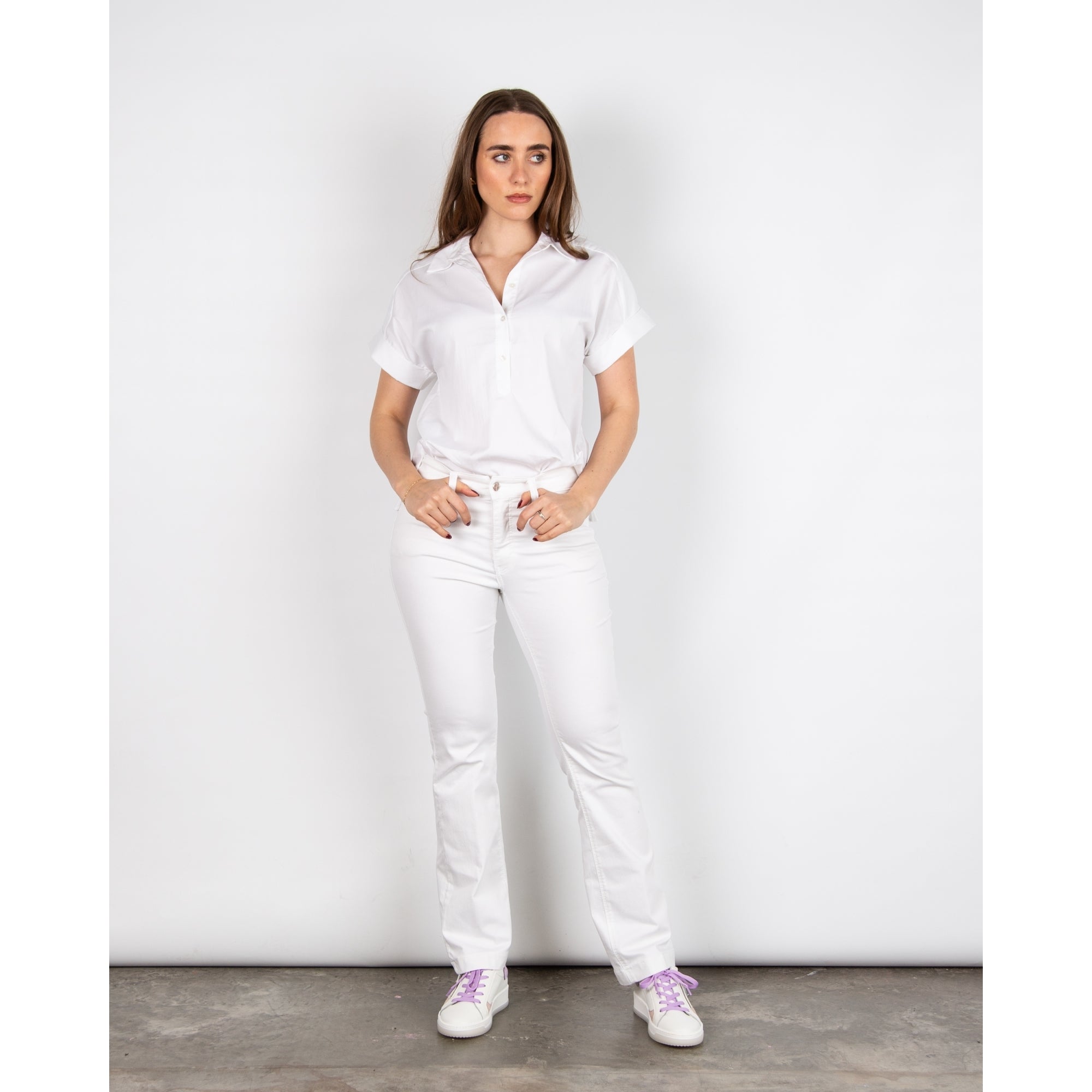 Milano Italy Short Sleeve Button Neck Shirt Gathered Back White