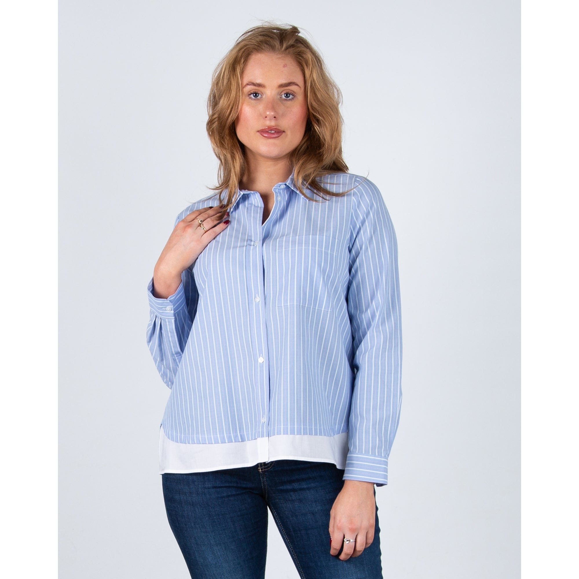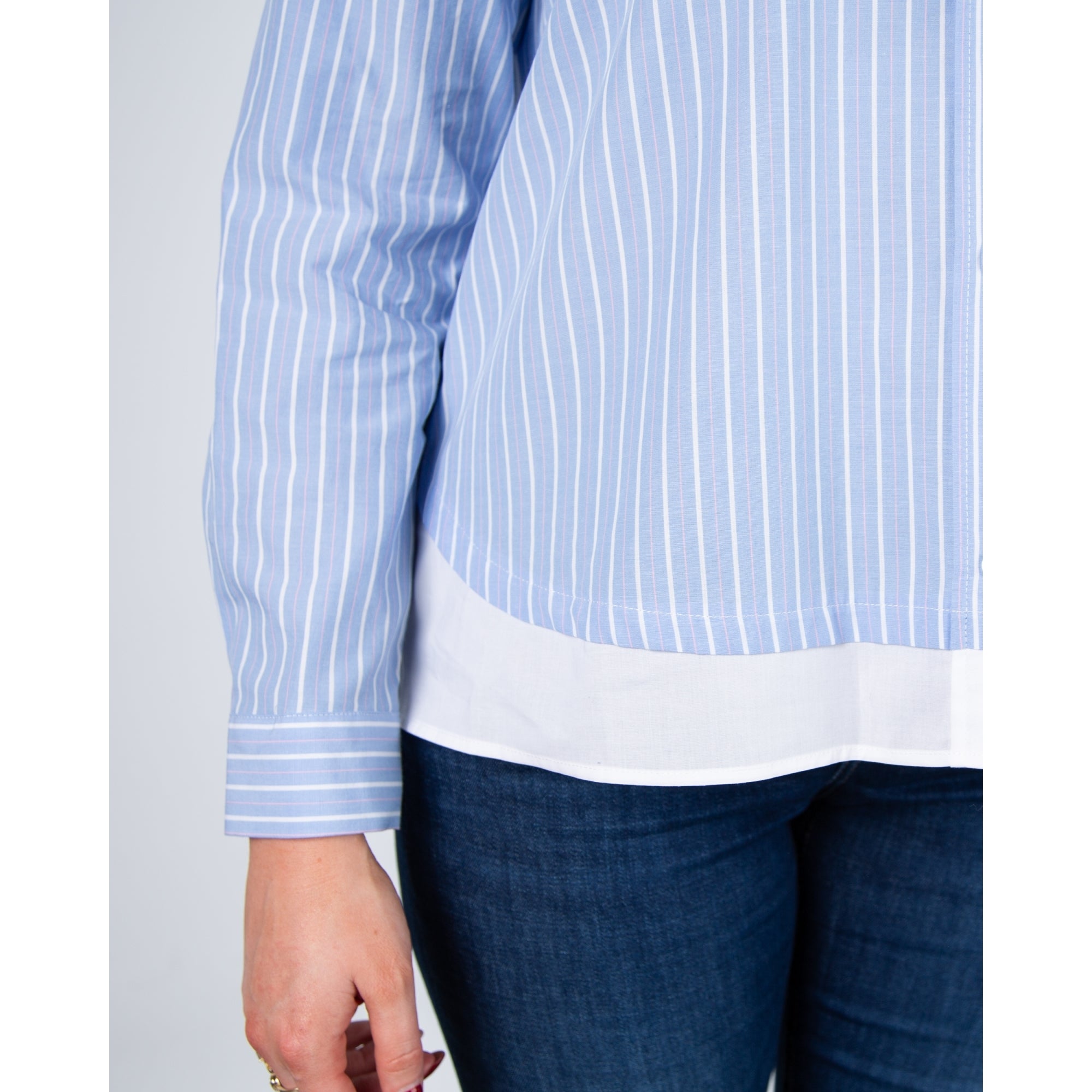 Milano Italy Boxy Stripe Shirt With Contrast Hem Pale Blue/white