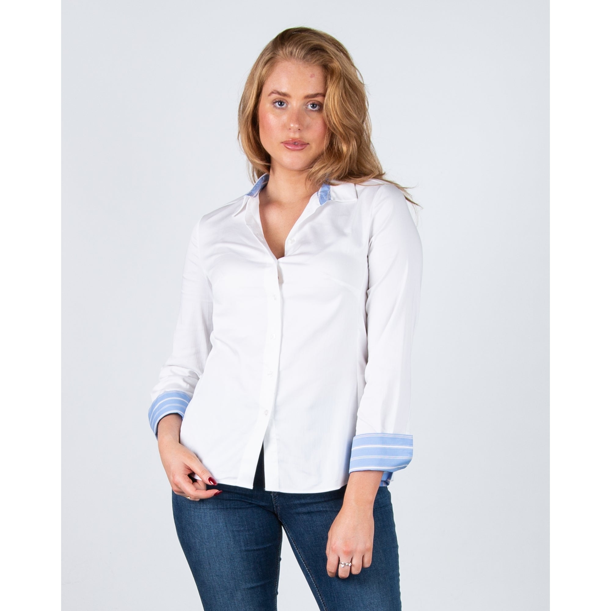 Milano Italy Fitted Cotton Shirt With Stripe Cuff White