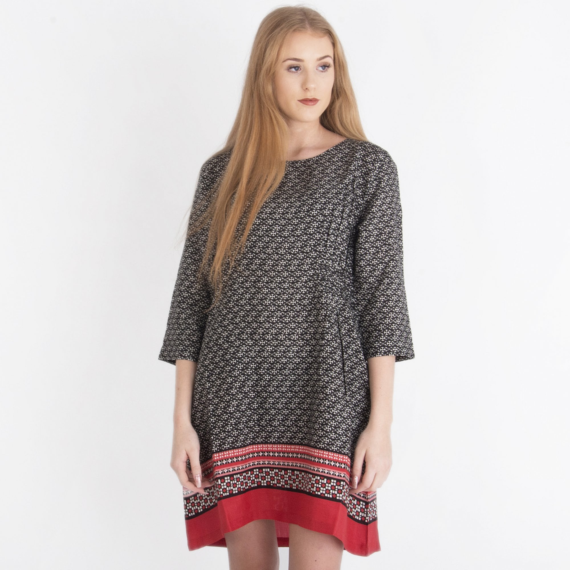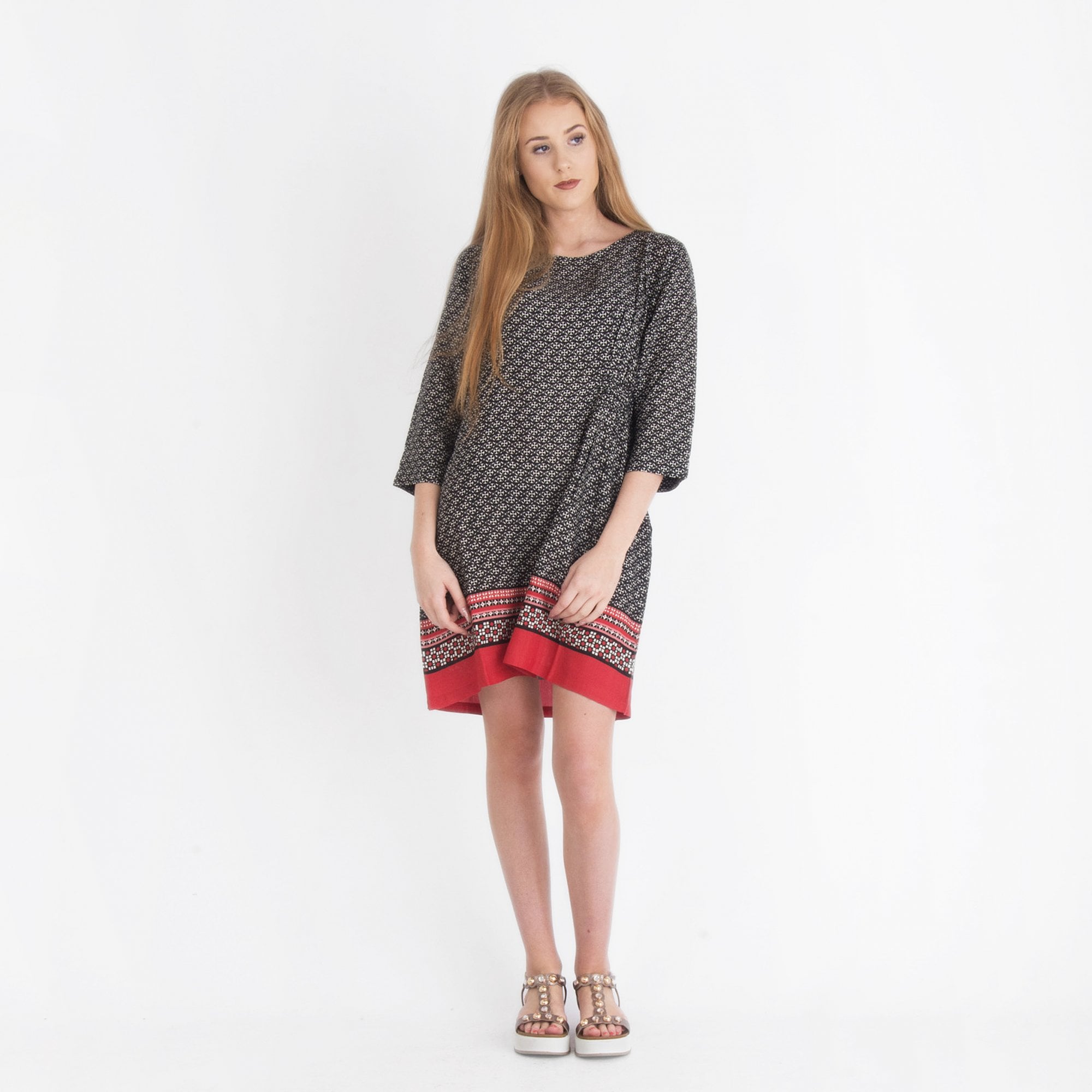 Masai Gabrielis Print Tunic Dress With Stripe Hem White/Black/Red