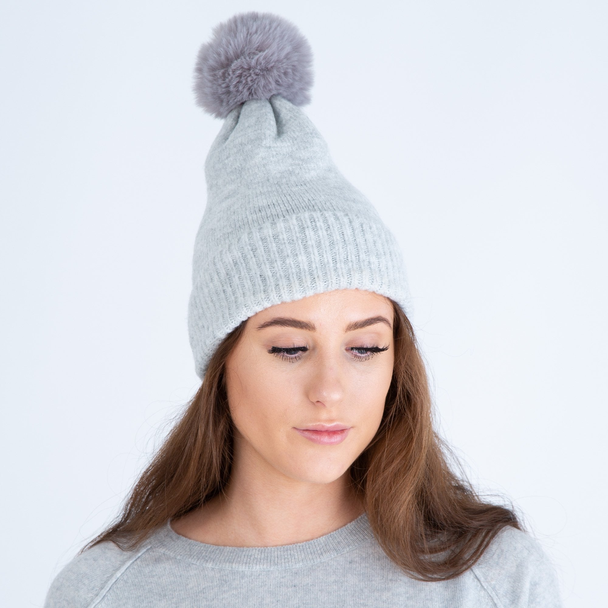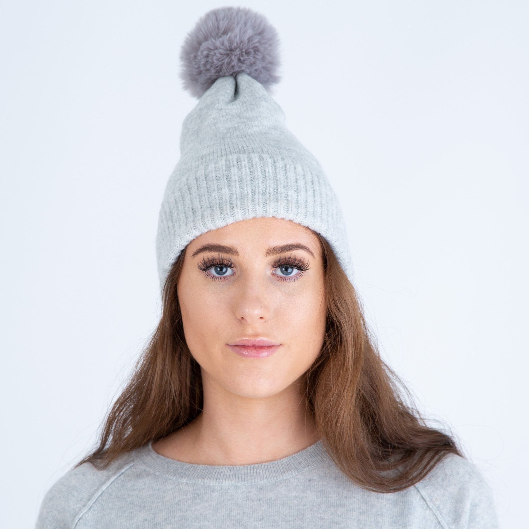 Miss Shorthair Wooly Pom Pom Hat Light Grey