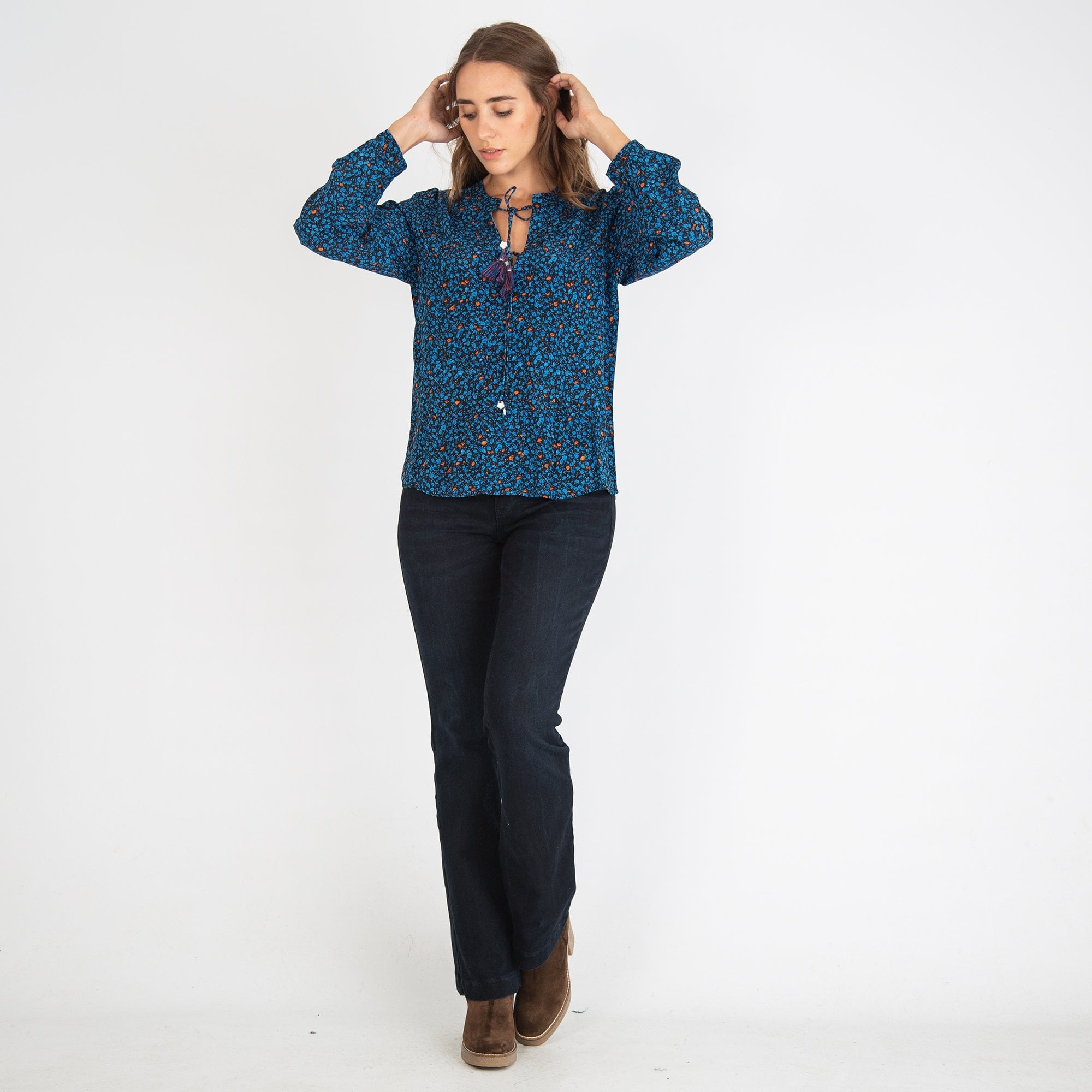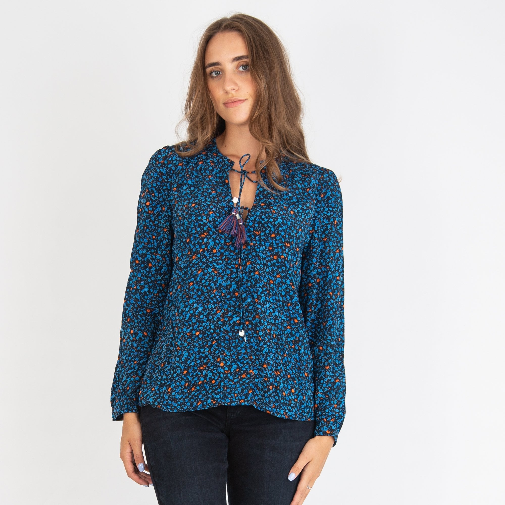 Moliin Zady Flower Print Tie Neck Blouse Blue/Orange