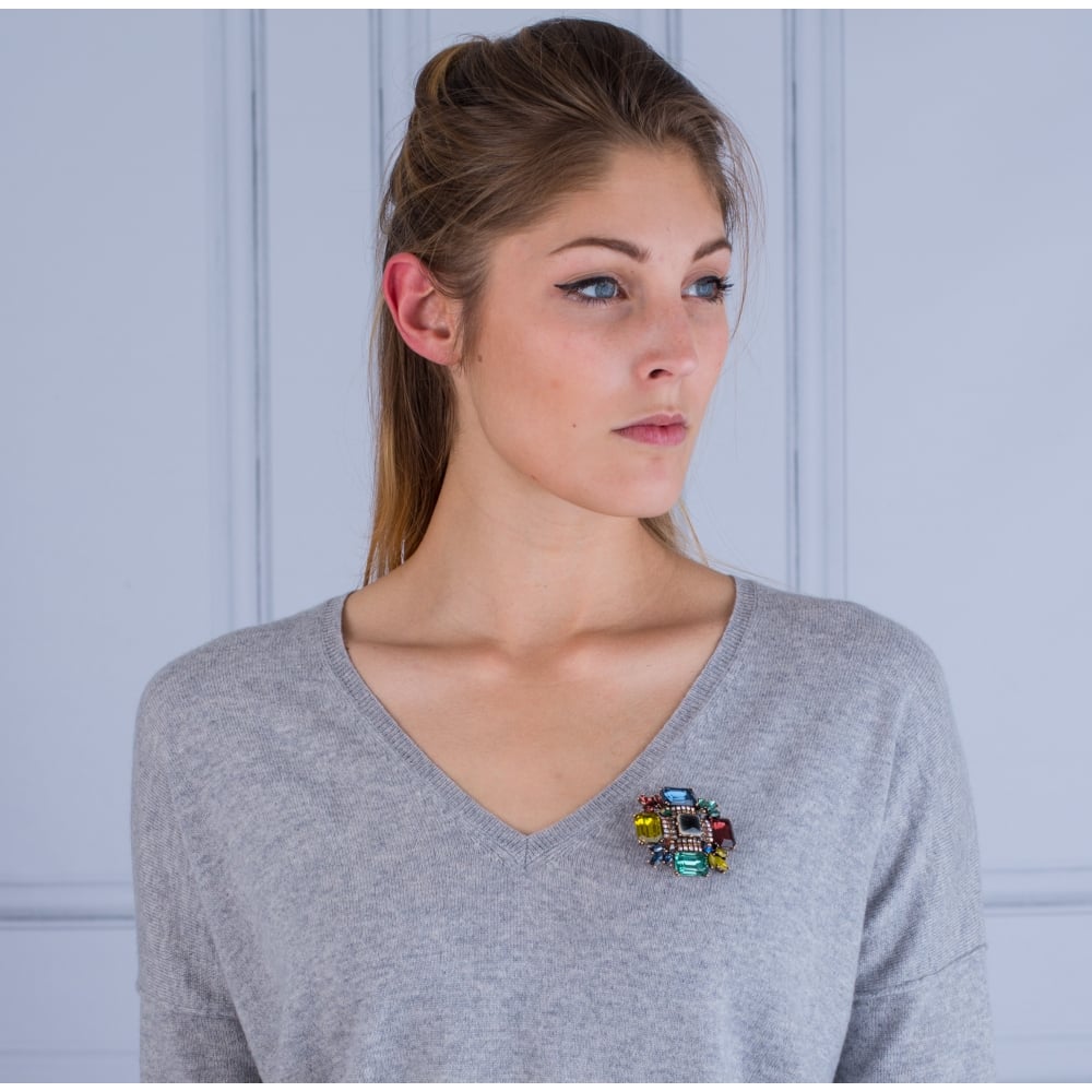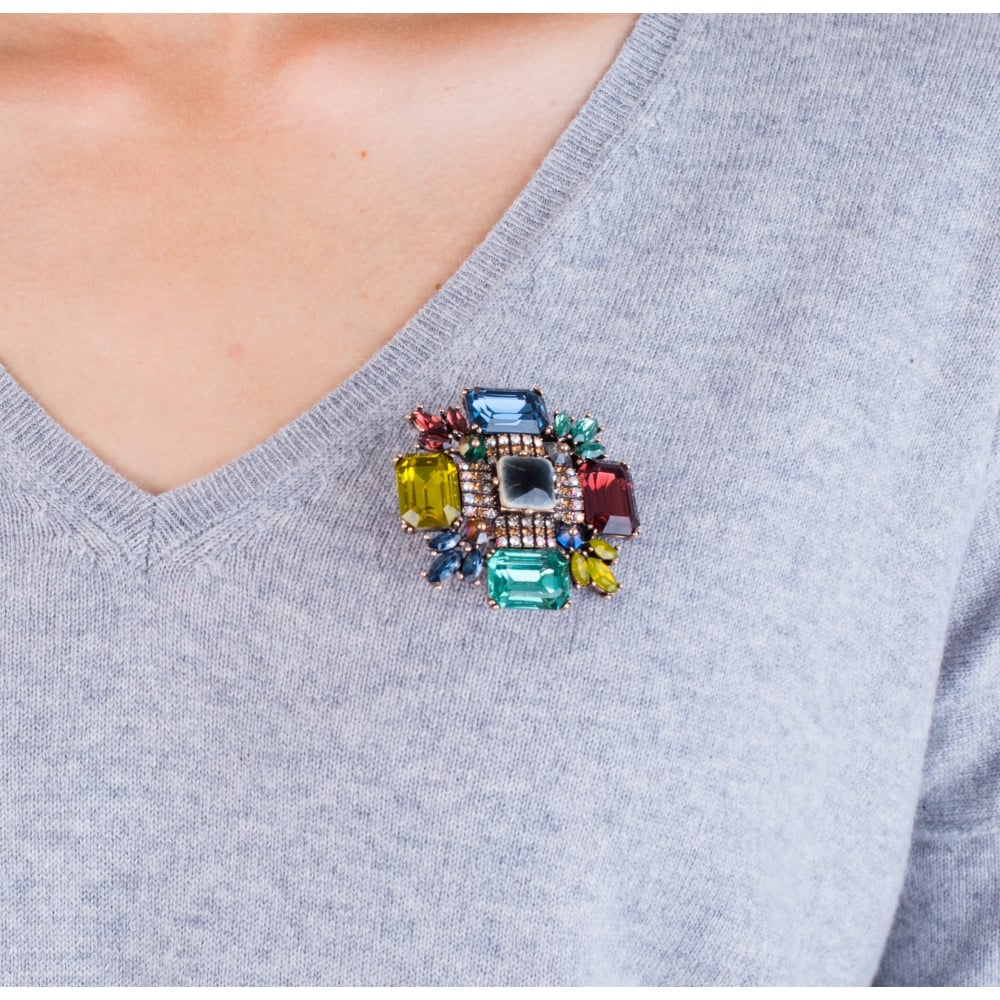 Rectangle Diamonte Broach In Blue, Green, Red & Yellow