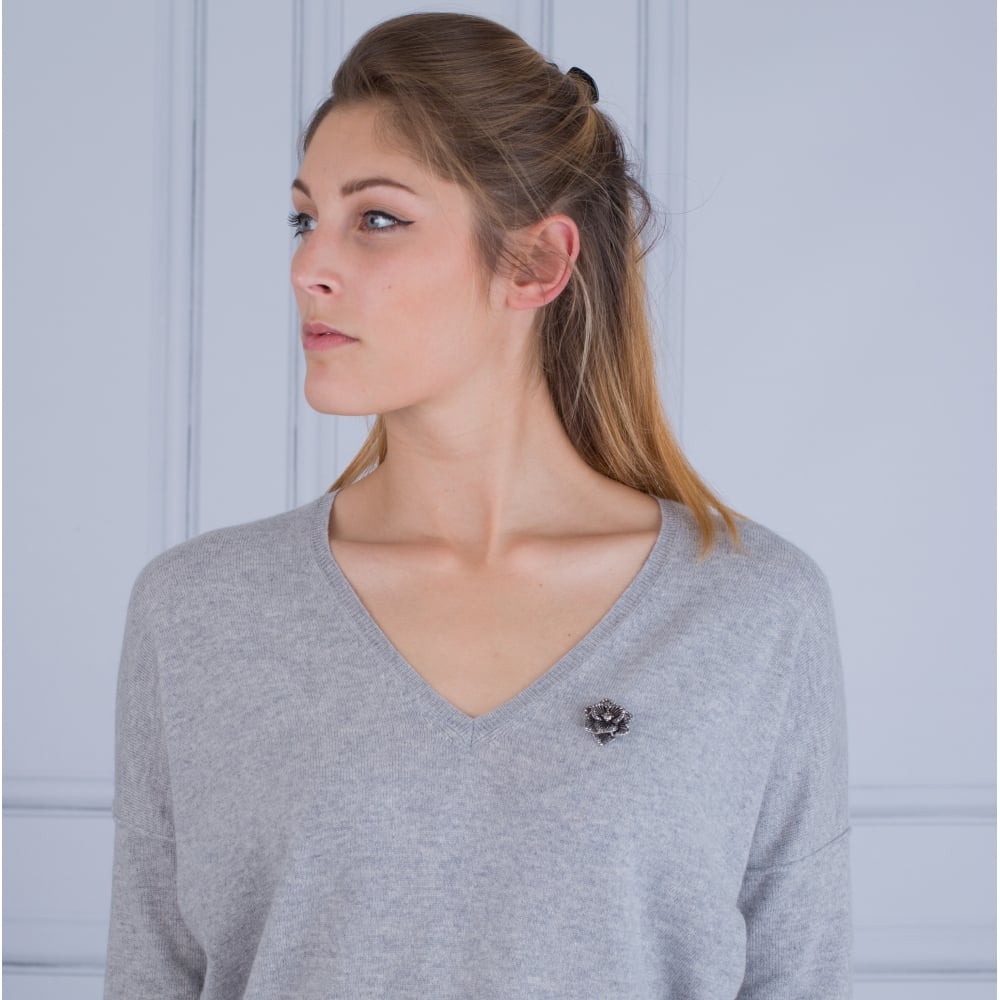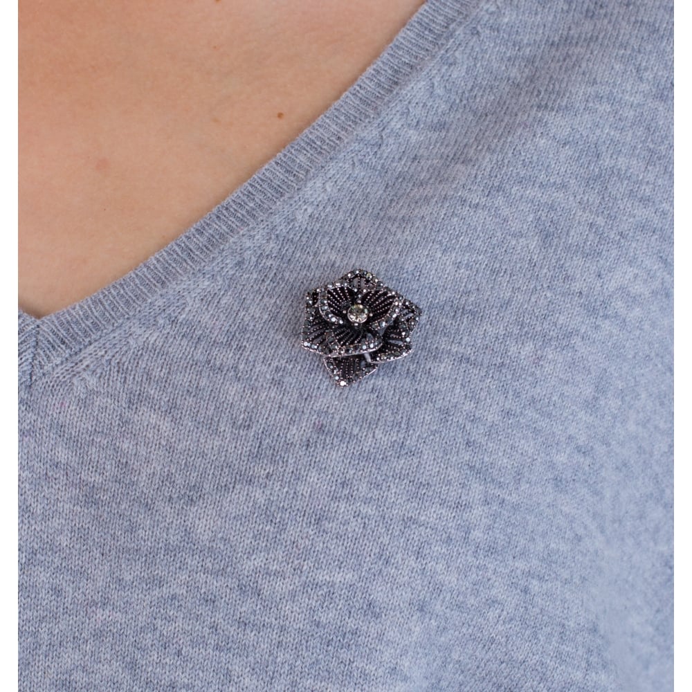 Diamonte Twist Flower Broach In Antiqued Gold & Silver
