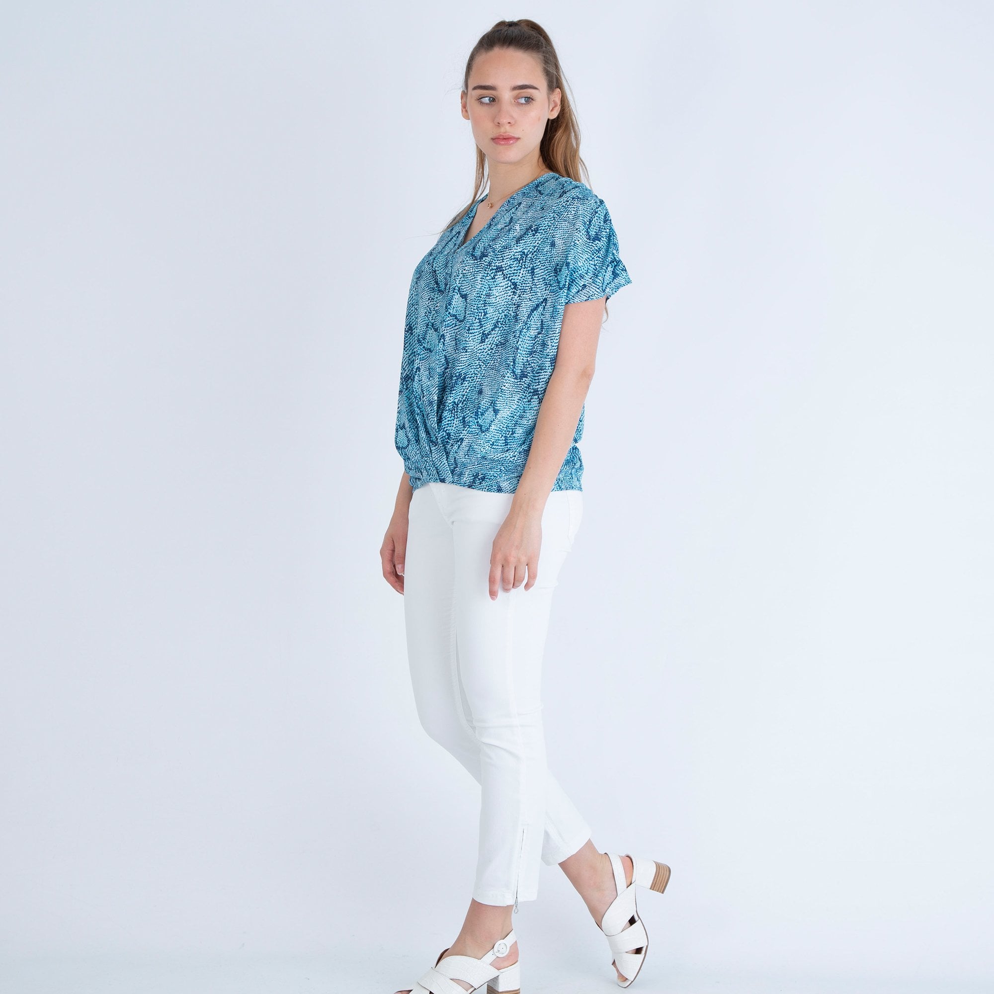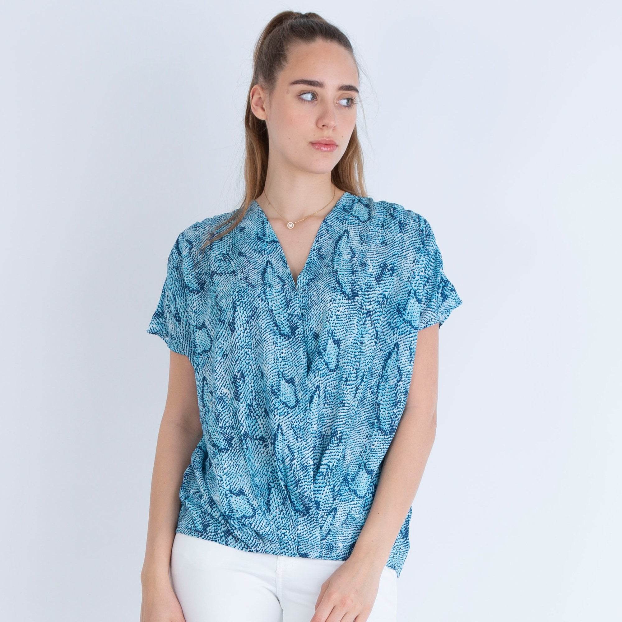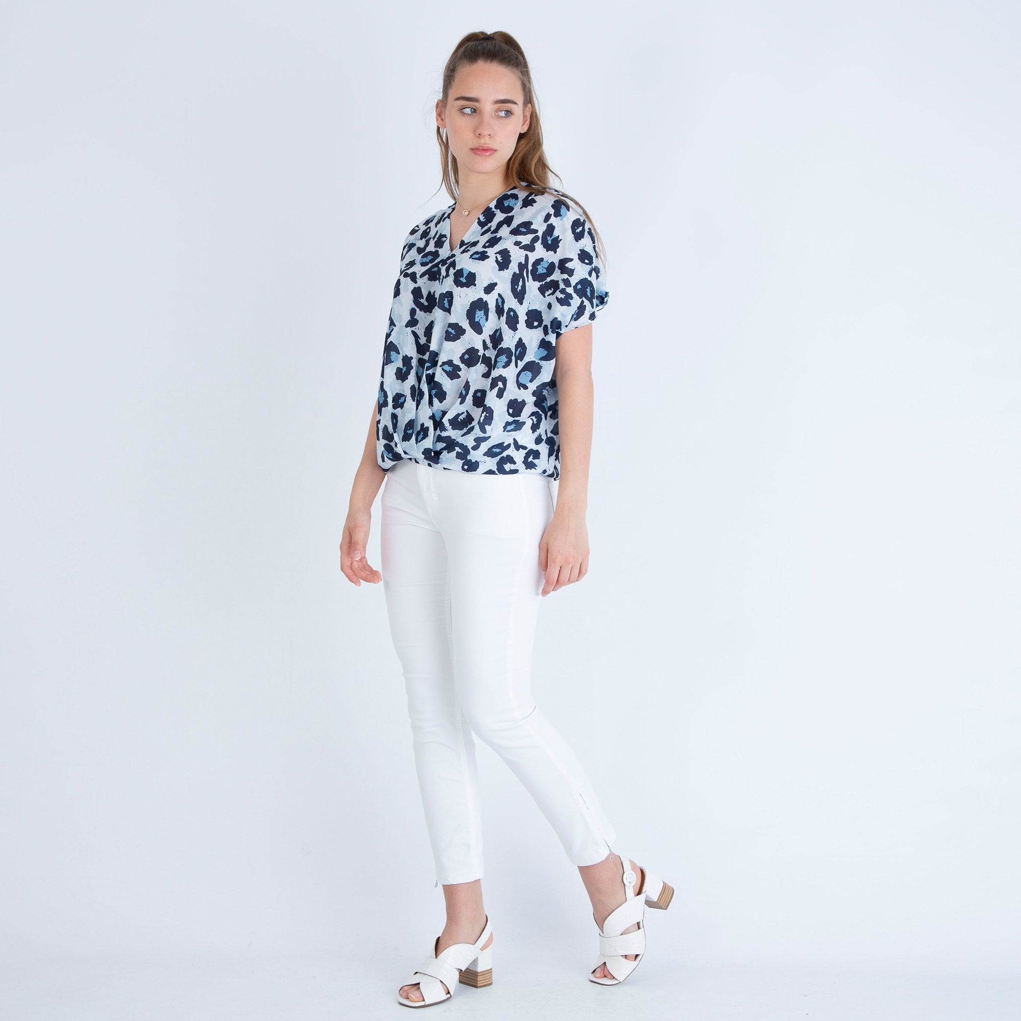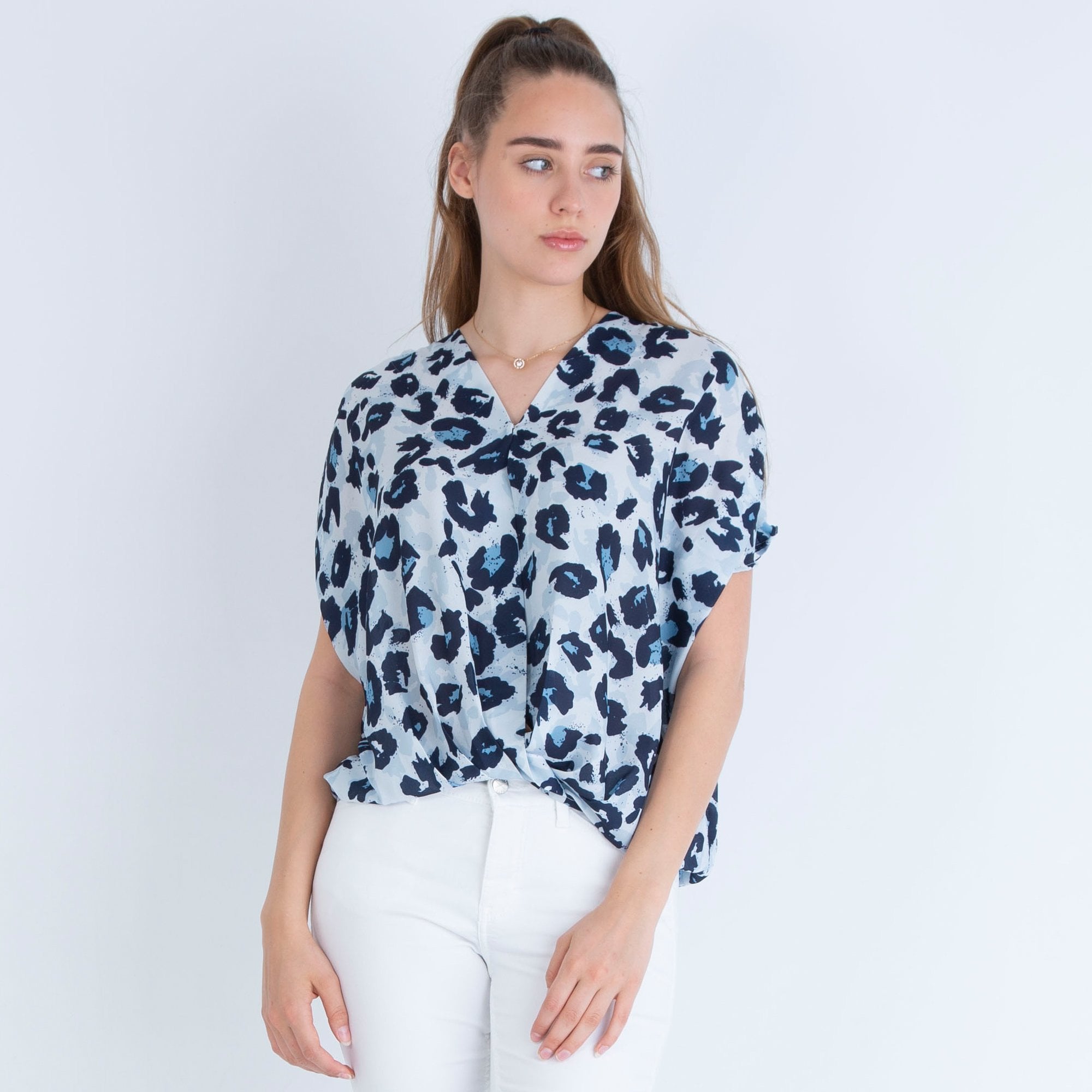 Neon Star V Neck Animal Print Cross Over Top Grey/Blue