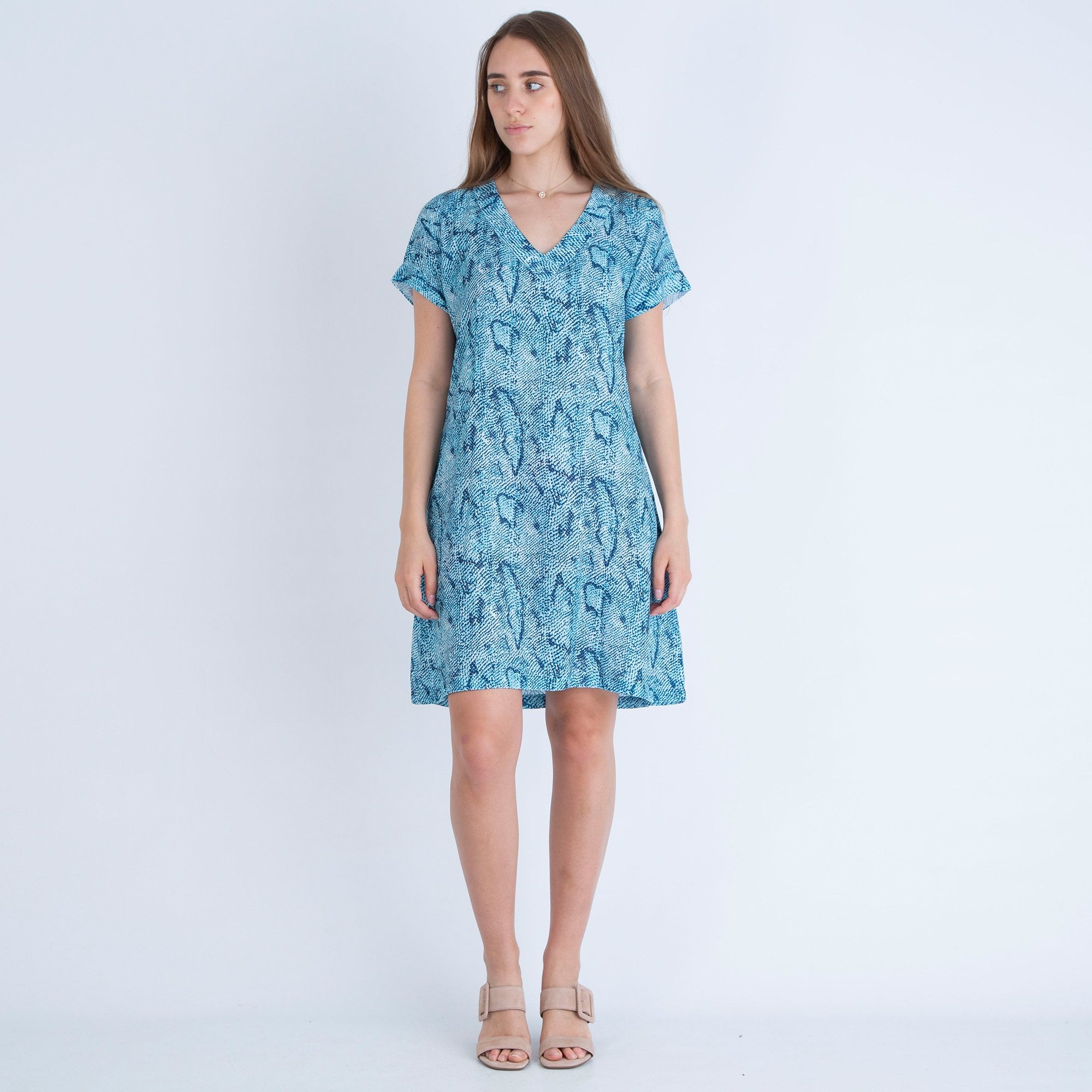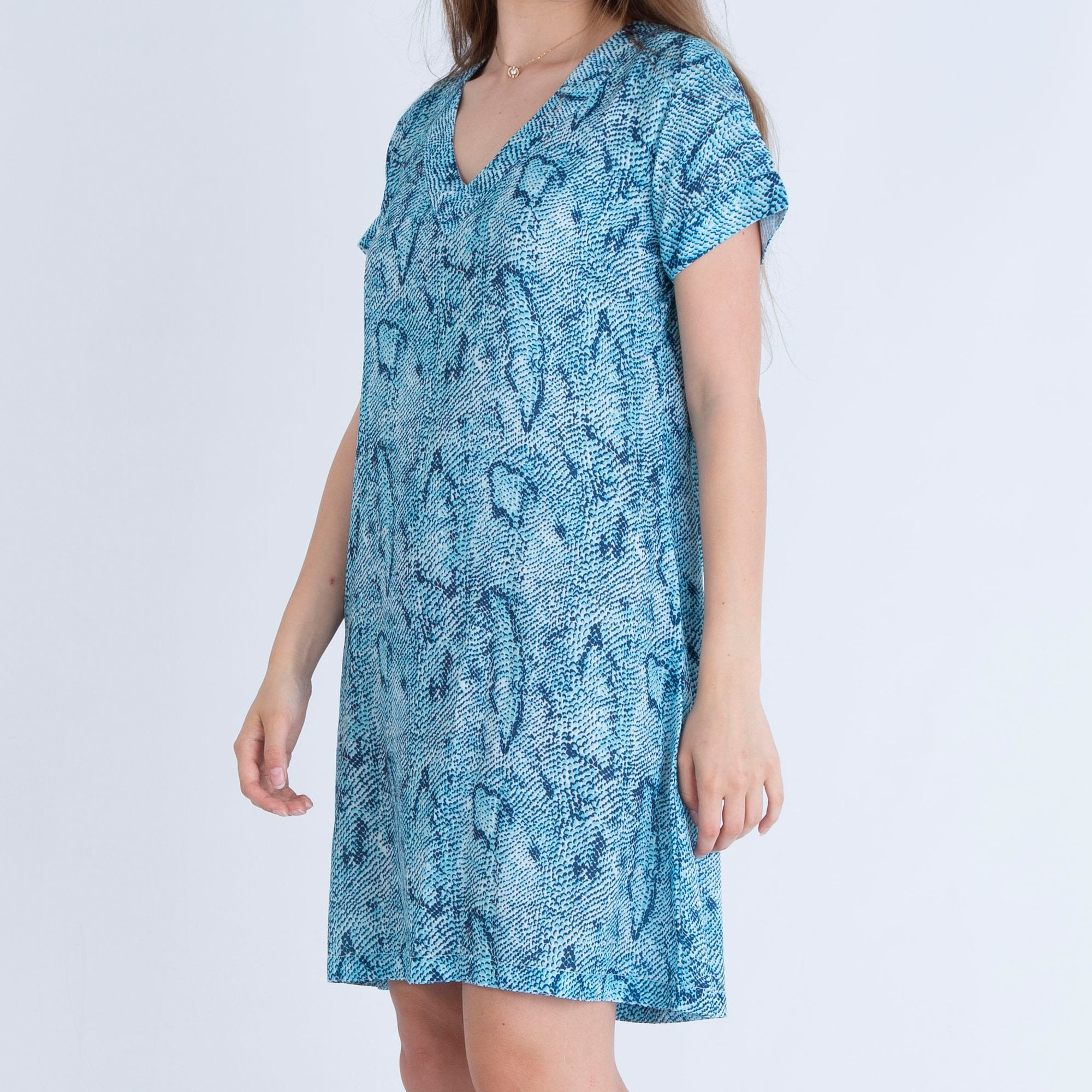 Neon Star V Neck Snake Print Shift Dress Aqua