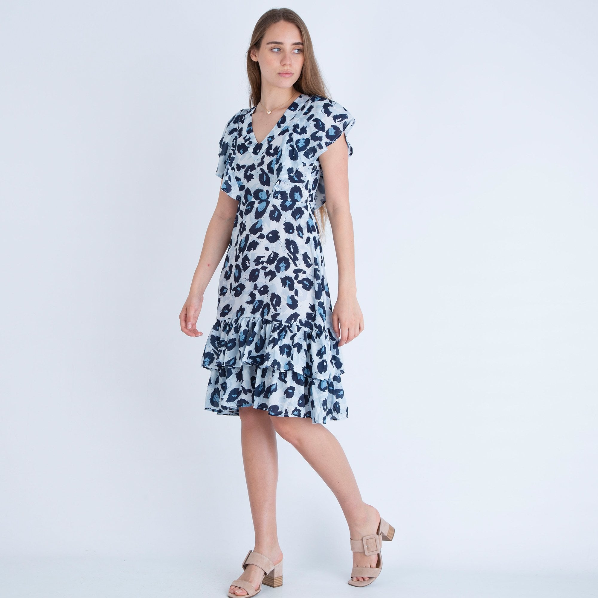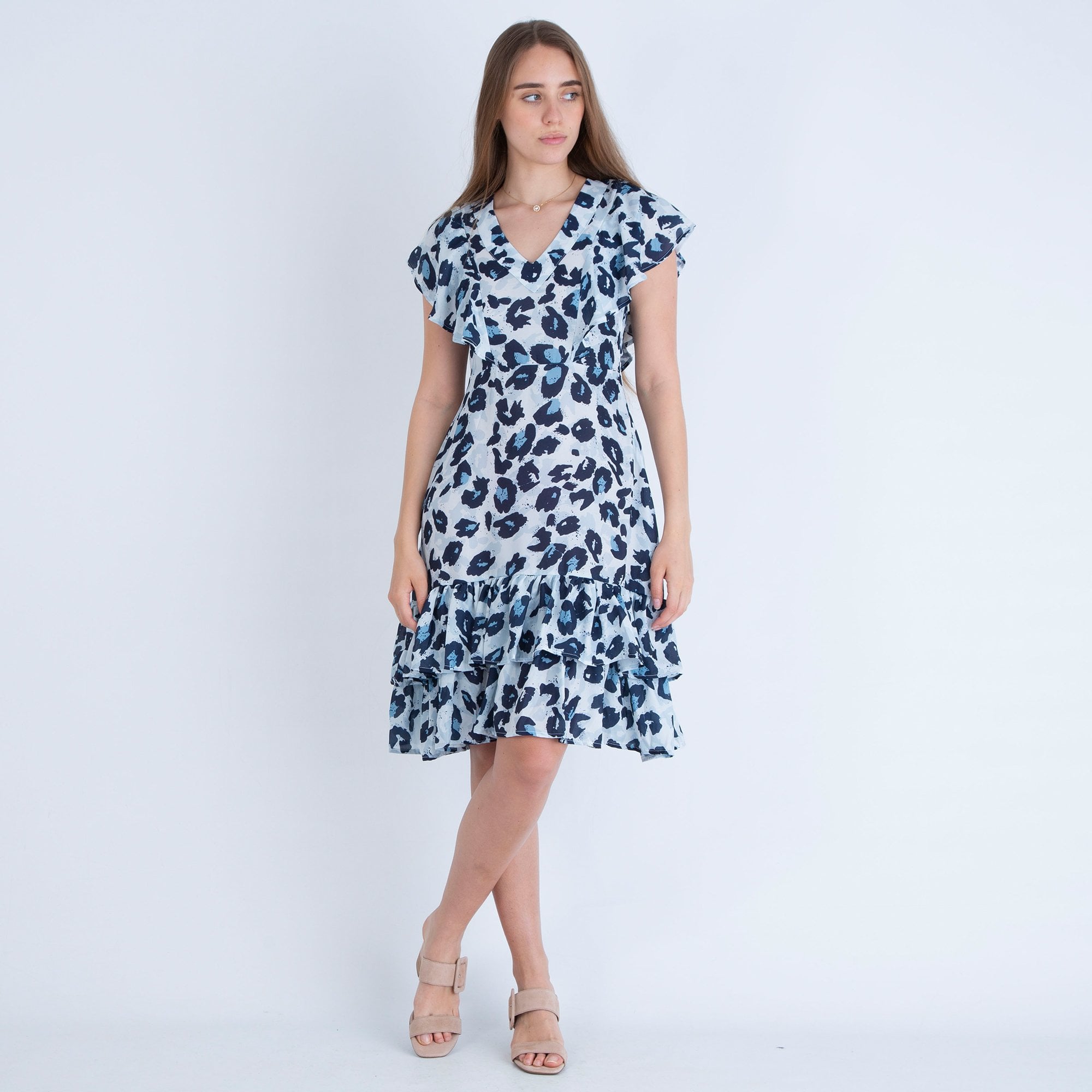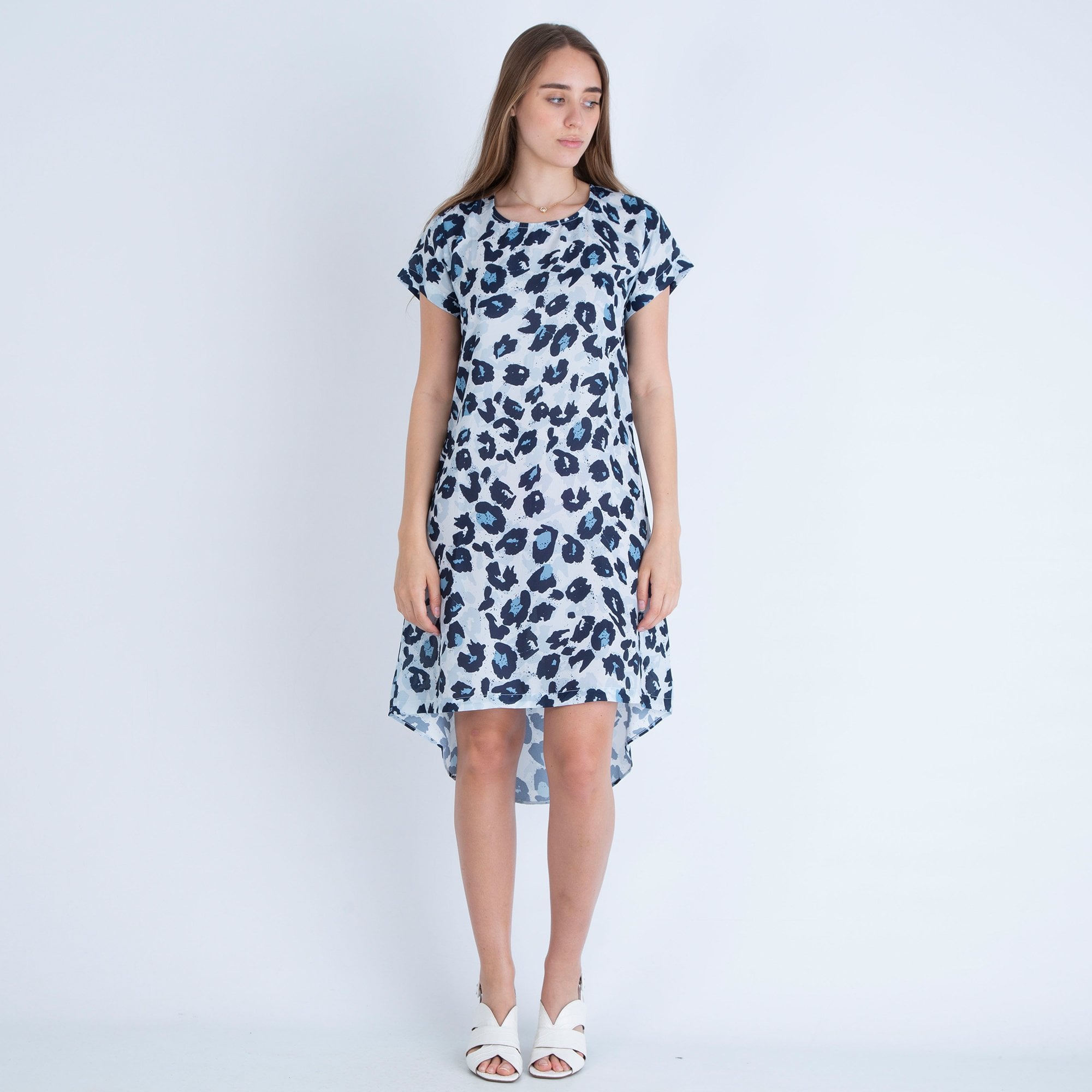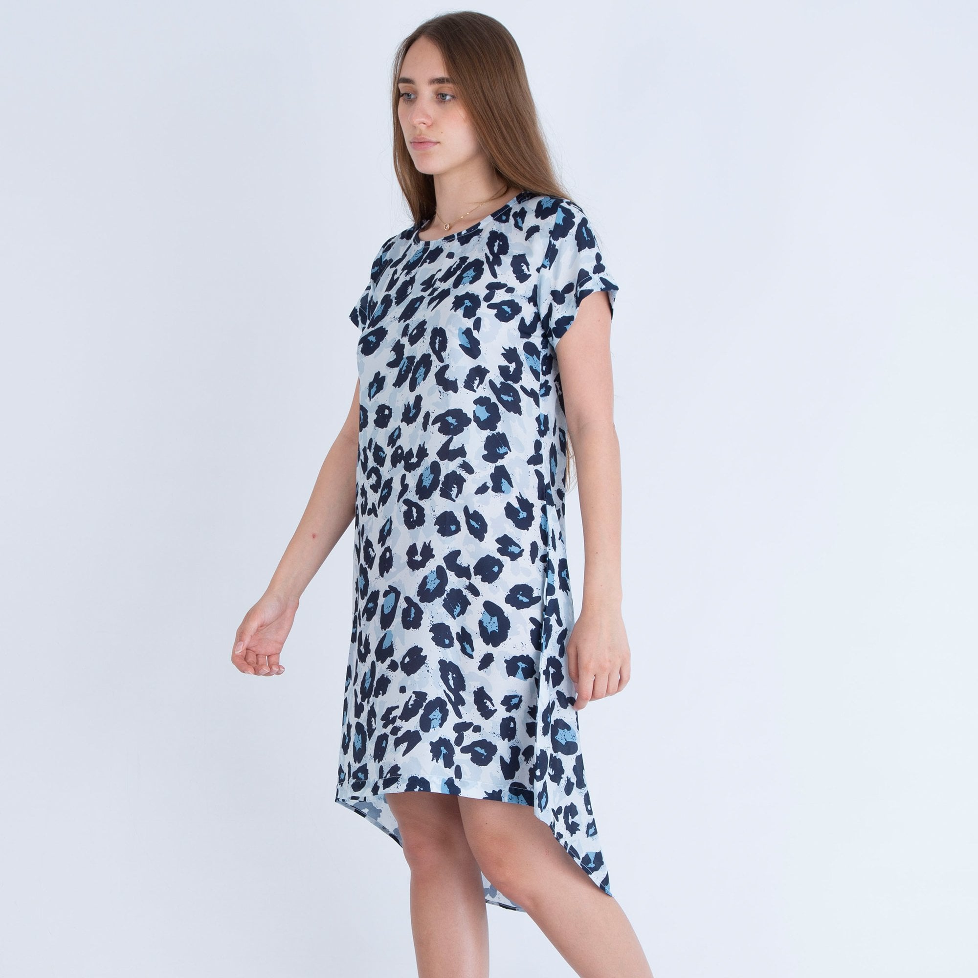 Neon Star Animal Print Shift Dress Dip Back Dress Grey/Blue