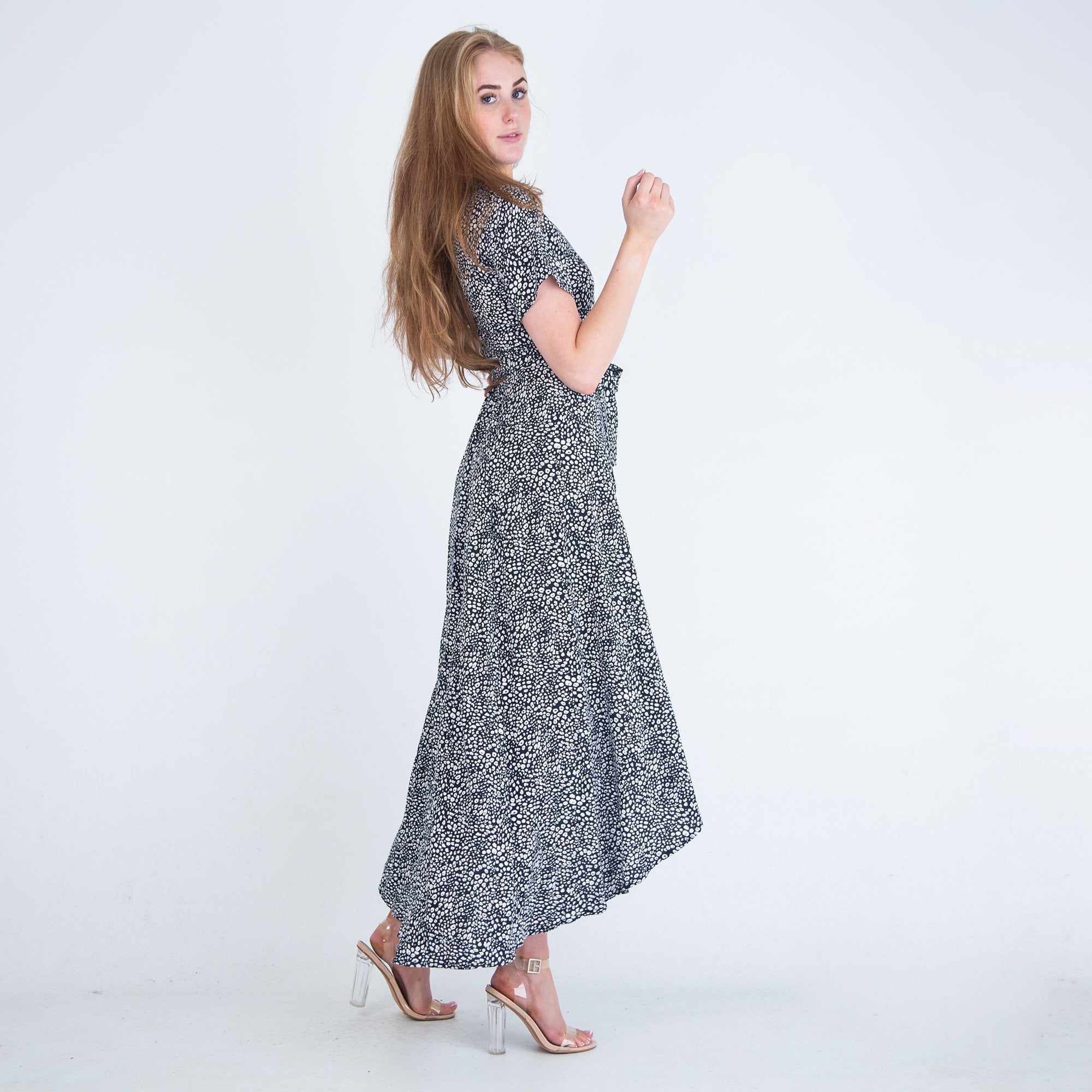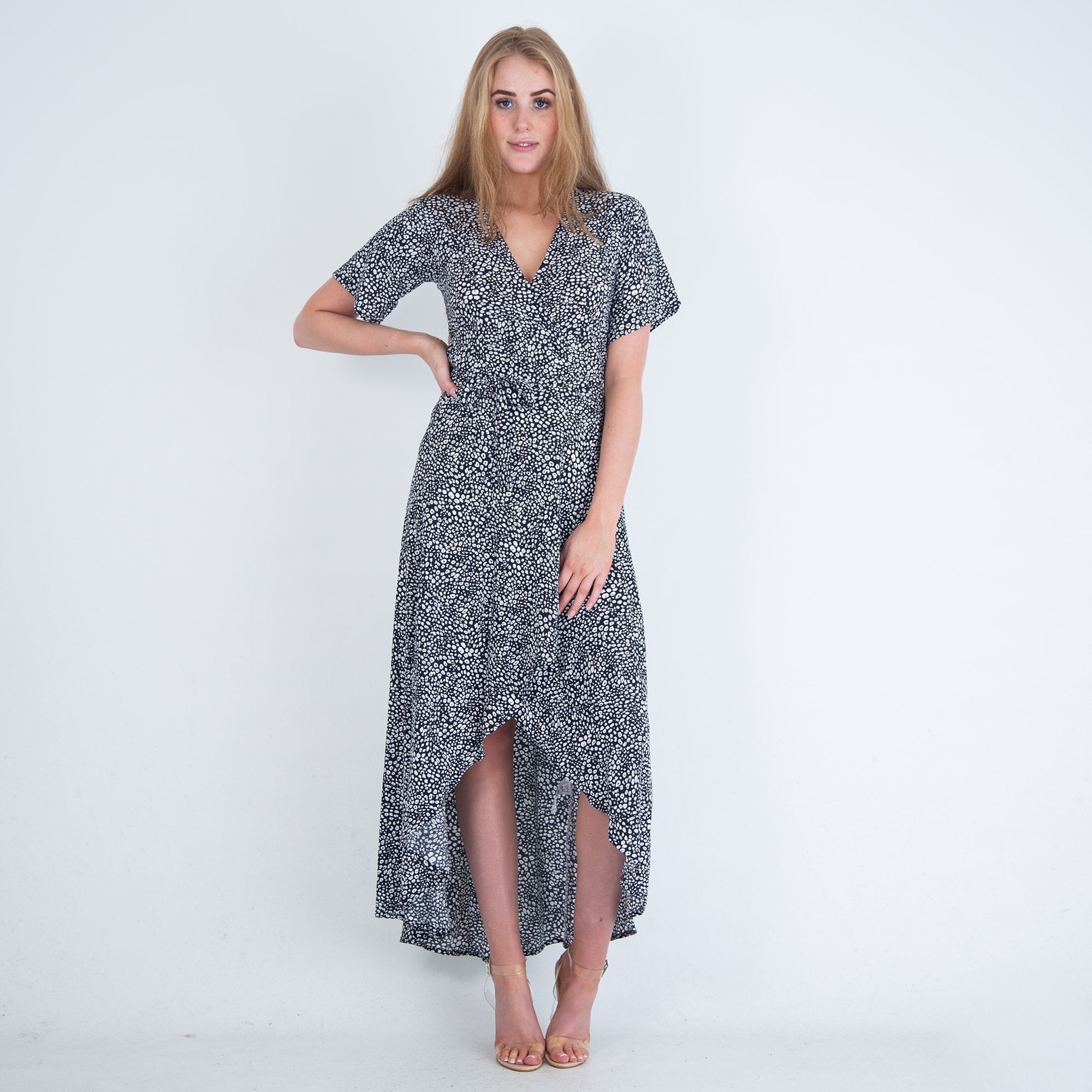 Neon Star Speckled Print Tie Maxi Wrap Dress Black/white