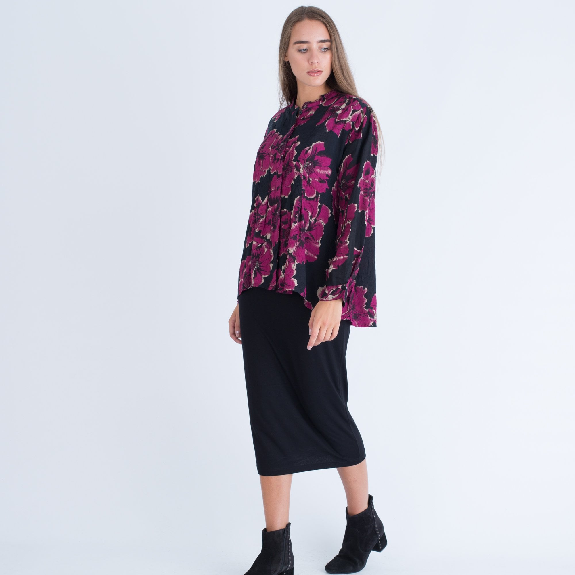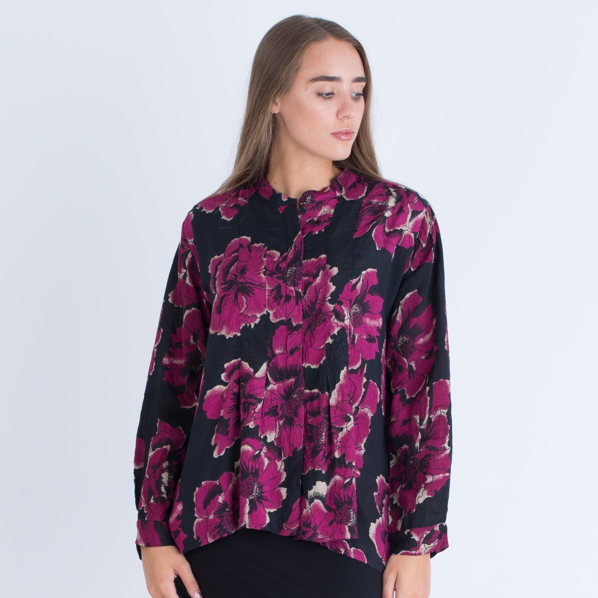 Masai Imka A Shape Regular Big Peony Print Blouse Black & Pink