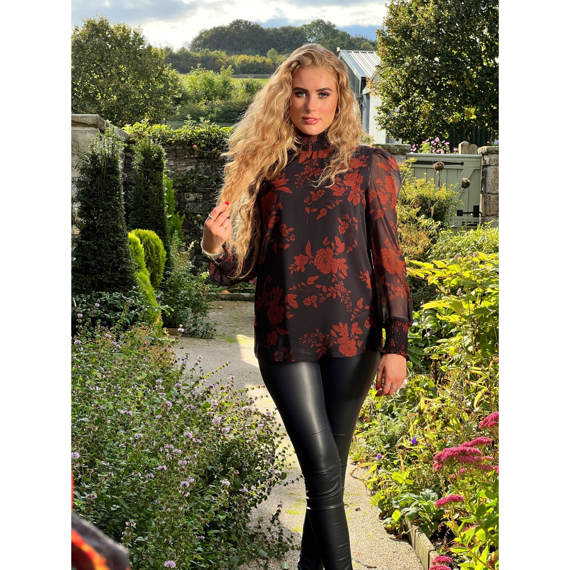 Riani Autumn Leaves Chiffon Blouse Deep Blue