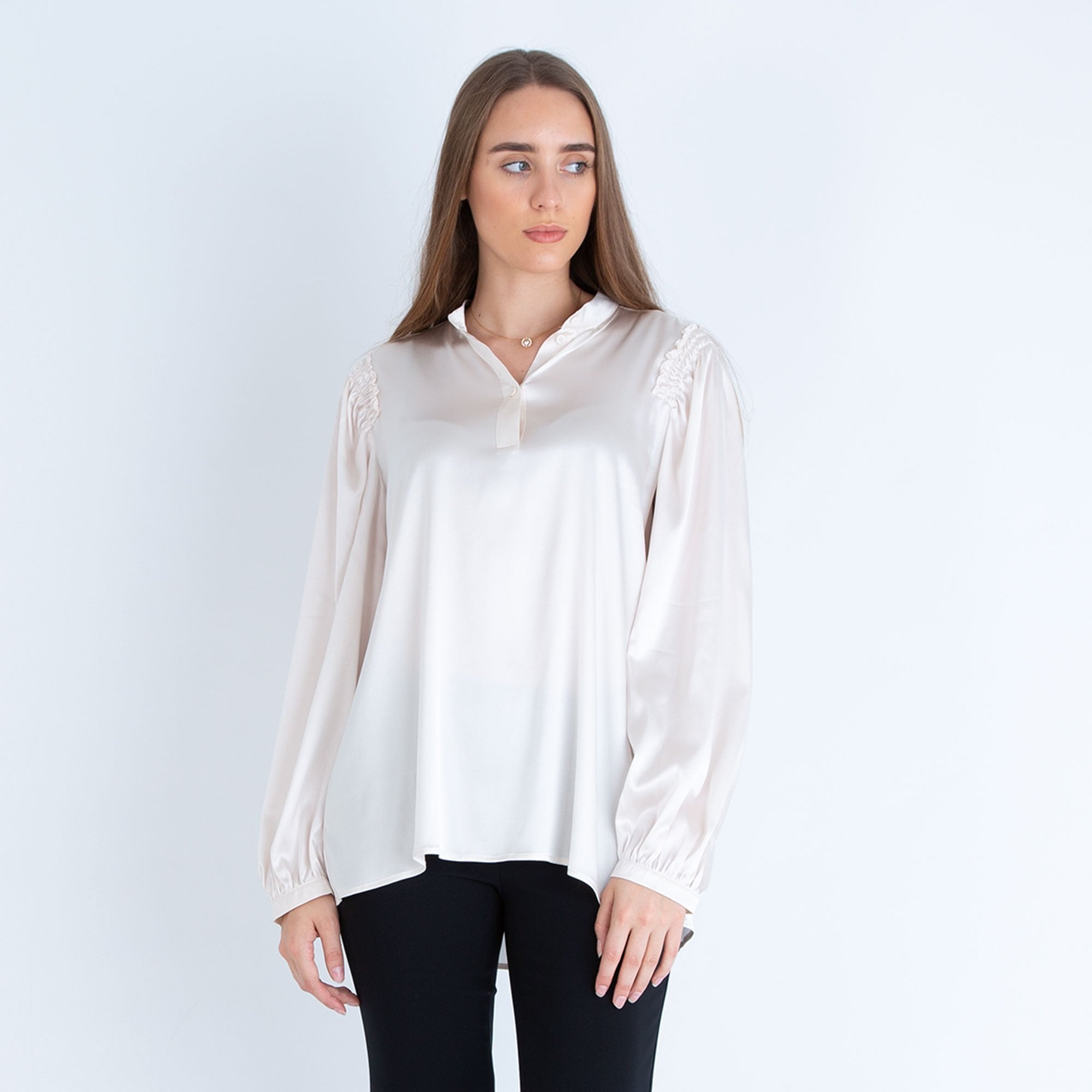 Marc Cain Piped Flute Sleeve Cupro Top White/Green