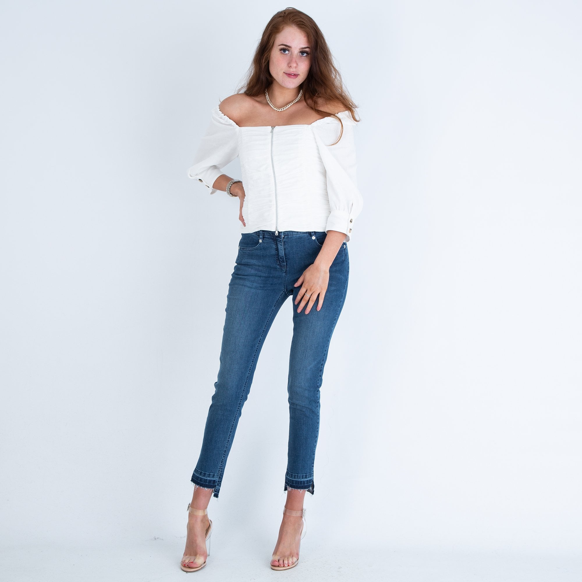 Marc Cain Piped Flute Sleeve Cupro Top White/Black