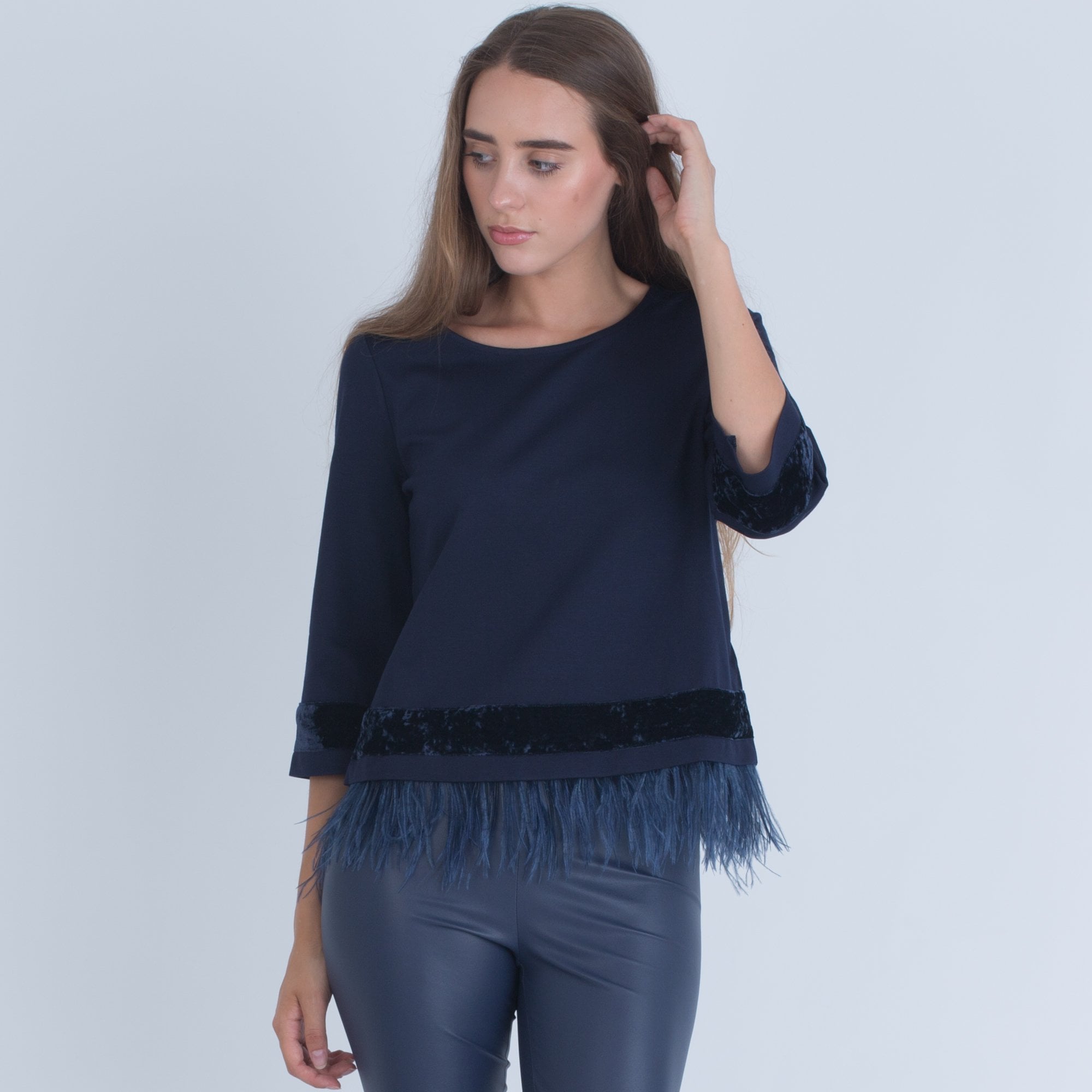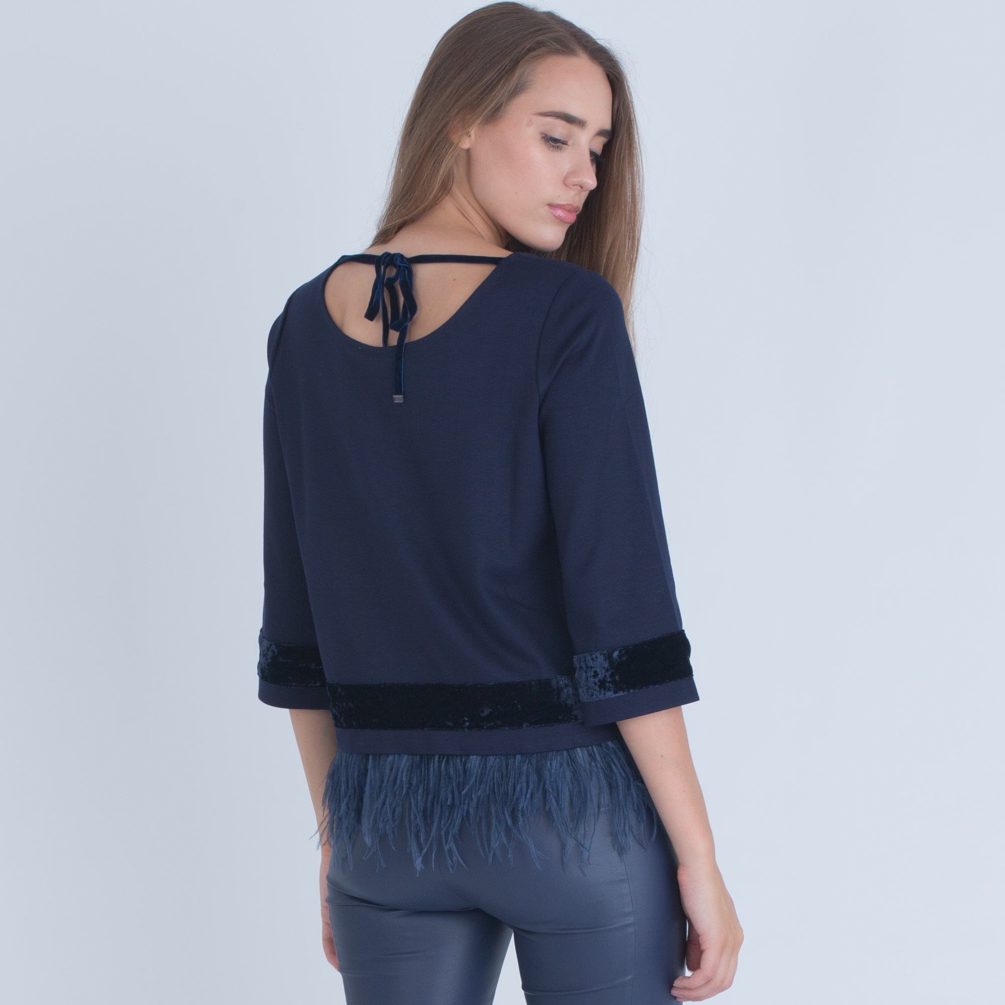 Riani Scoop Neck Top With Velvet Trim And Detatchable Fe Navy