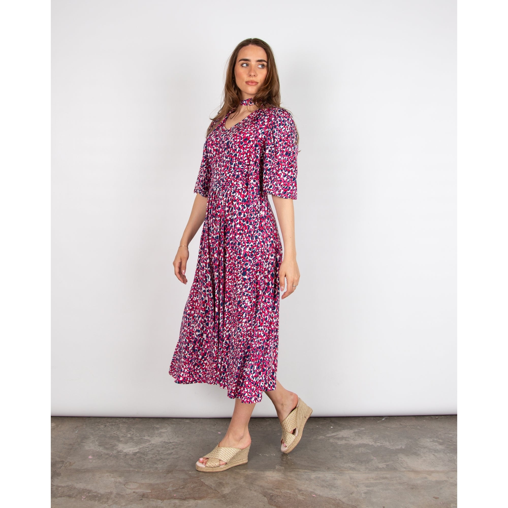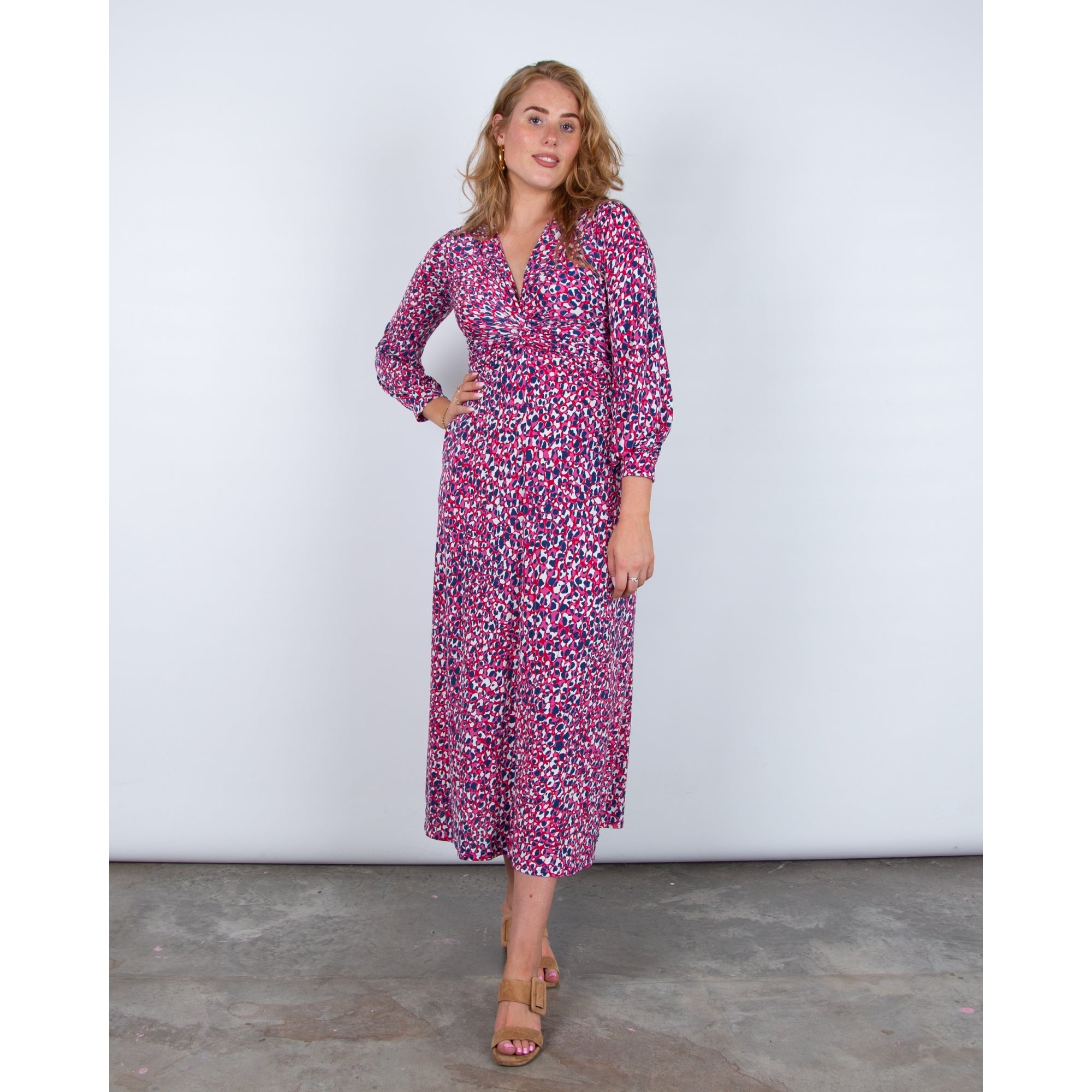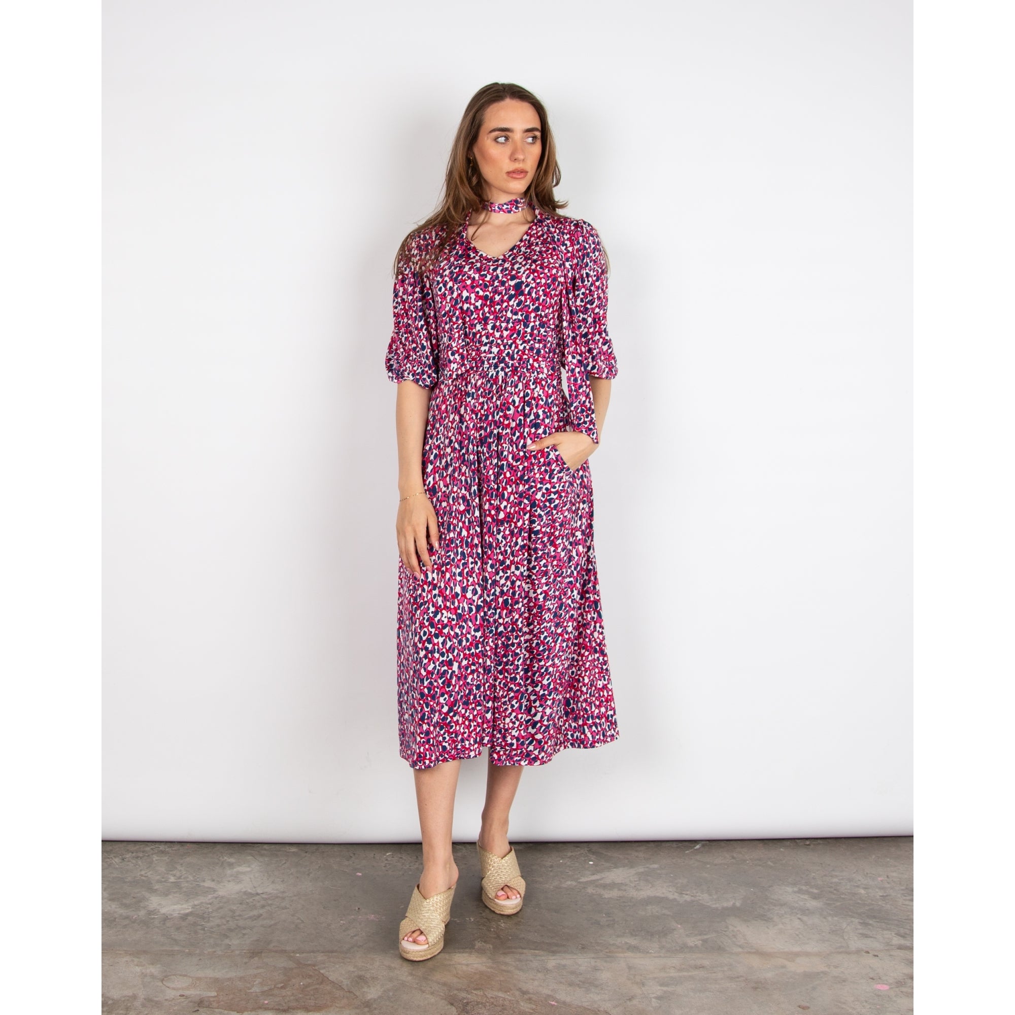 Onjenu Crawford Abstract Print V Neck Midi Dress Pink/navy