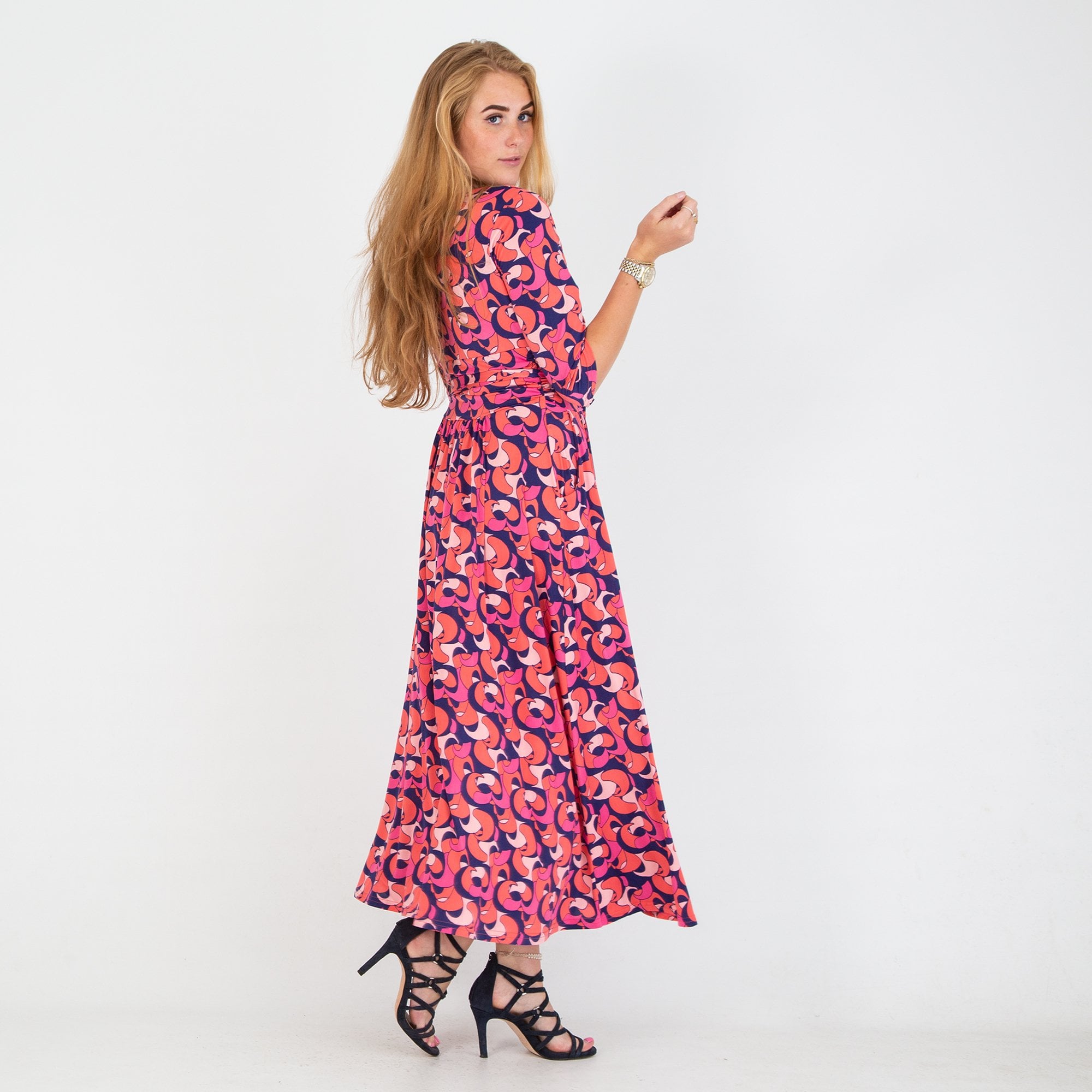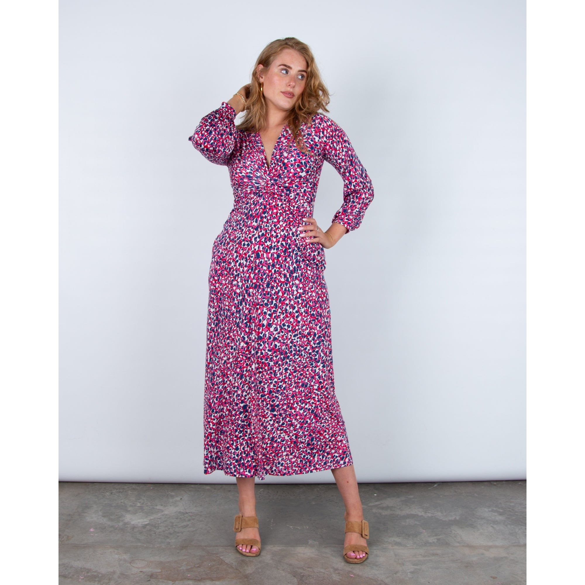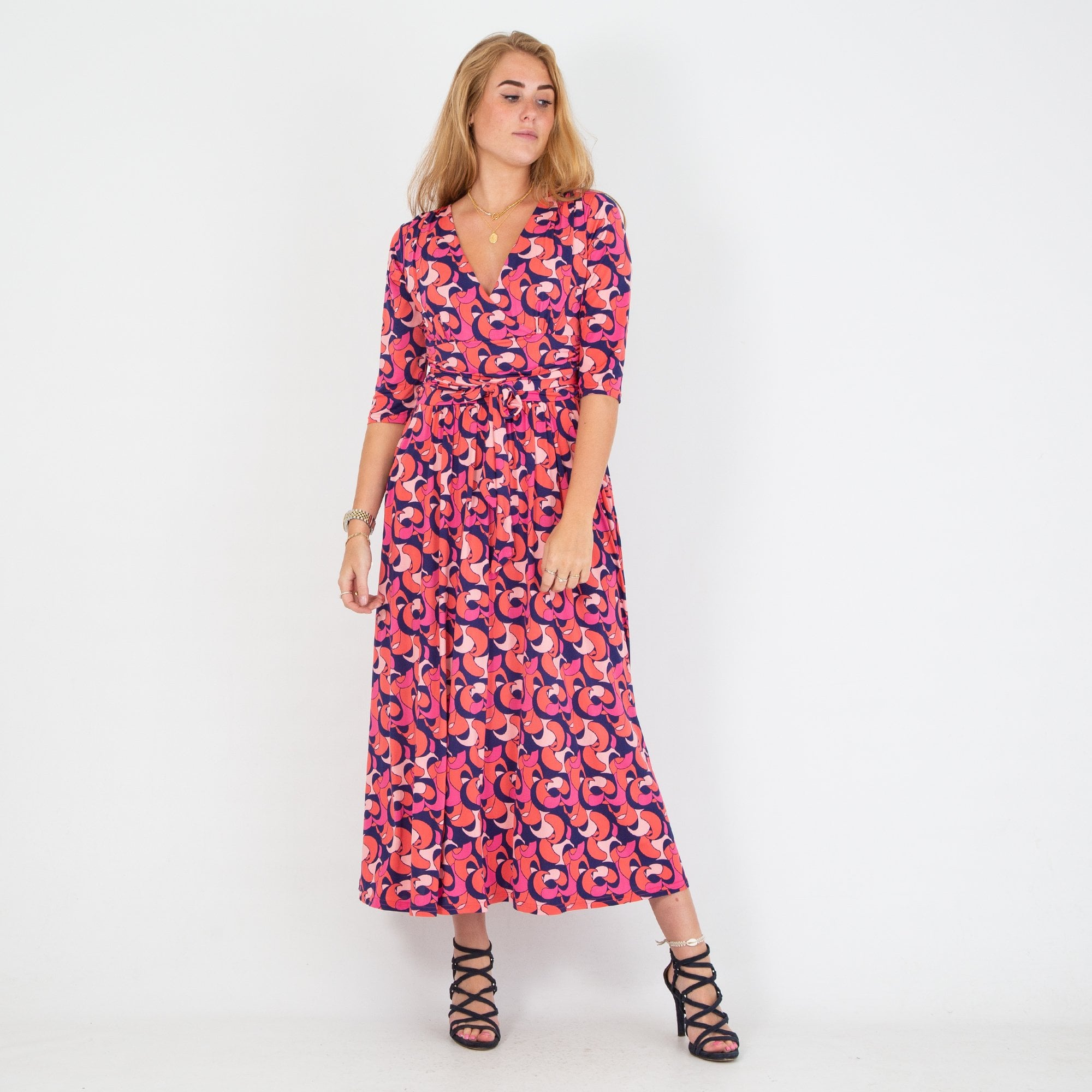 Onjenu Crawford Abstract Print V Neck Midi Dress Pink/navy