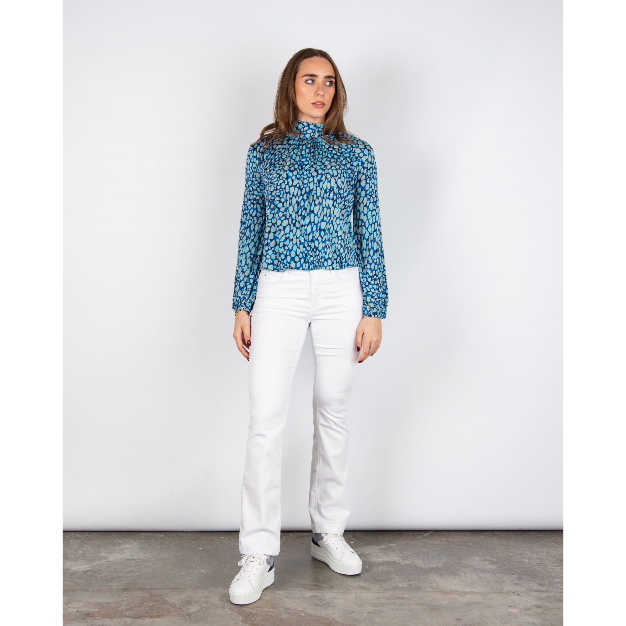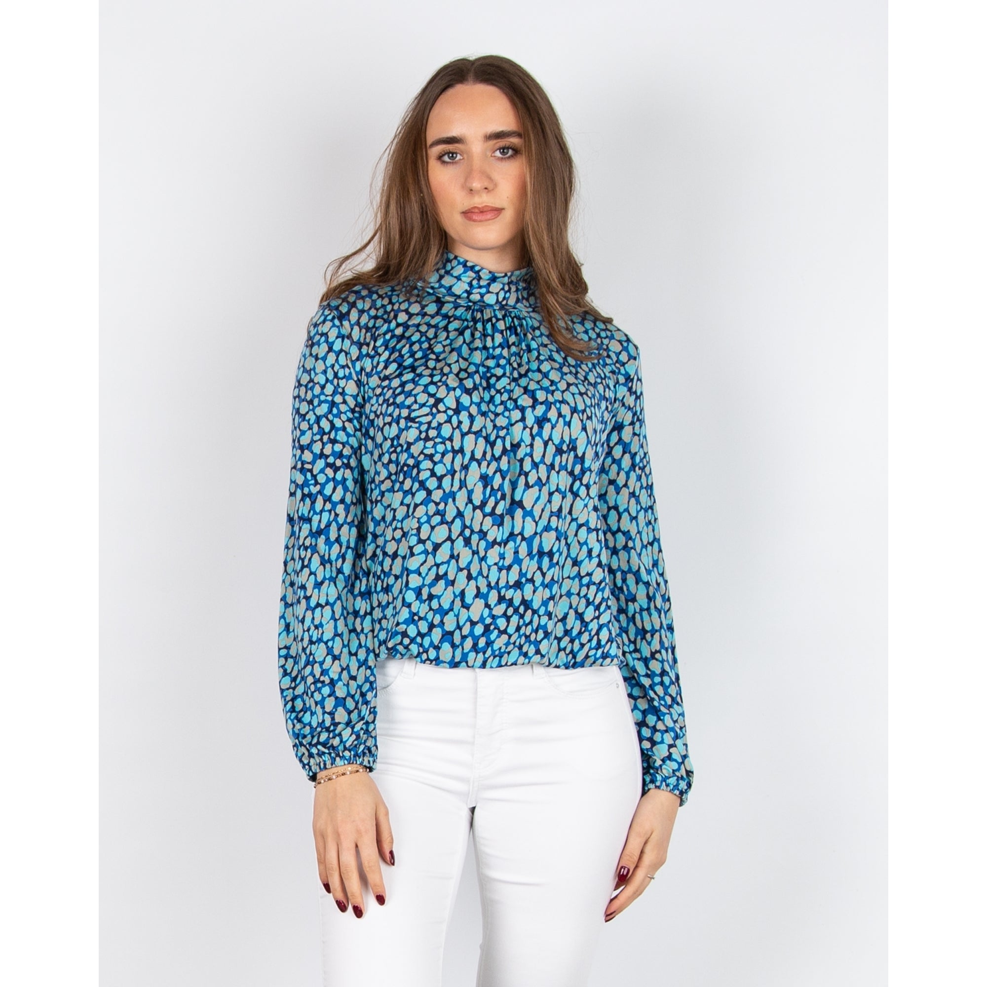 Onjenu Amber Polo Ruched Neck Pebble Print Jersey Top Medsea Blue